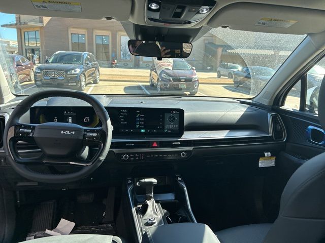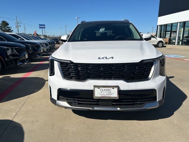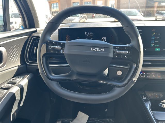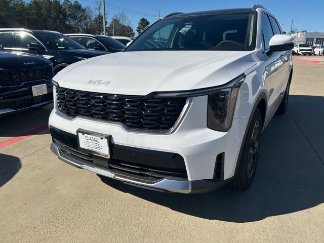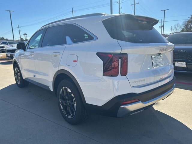 The 2026 Kia Sorento comes with the following features; S Panoramic Sunroof Package (Full-Length One-Touch Panoroof with Sliding Sunshade and LED Interior Lighting), 3rd row seats: split-bench, 4-Wheel Disc Brakes, 6 Speakers, ABS brakes, Air Conditioning, All Weather Floor Mats, Alloy wheels, AM/FM radio: SiriusXM, Apple CarPlay & Android Auto, Auto High-beam Headlights, Automatic temperature control, Brake assist, Bumpers: body-color, Carpet Cargo Mat with Seatback Protection, Delay-off headlights, Driver door bin, Driver vanity mirror, Dual front impact airbags, Dual front side impact airbags, Electronic Stability Control, Emergency communication system: 911 Connect, Exterior Parking Camera Rear, Four wheel independent suspension, Front anti-roll bar, Front Bucket Seats, Front Center Armrest, Front dual zone A/C, Front reading lights, Fully automatic headlights, Heated door mirrors, Heated Front Bucket Seats, Heated front seats, Illuminated entry, Knee airbag, Leather Shift Knob, Leather steering wheel, Low tire pressure warning, Occupant sensing airbag, Outside temperature display, Overhead airbag, Overhead console, Panic alarm, Passenger door bin, Passenger vanity mirror, Power door mirrors, Power driver seat, Power steering, Power windows, Radio data system, Radio: AM/FM Standard Sound System, Rear anti-roll bar, Rear reading lights, Rear seat center armrest, Rear side impact airbag, Rear window defroster, Rear window wiper, Remote keyless entry, Security system, Speed control, Speed-sensing steering, Split folding rear seat, Spoiler, Steering wheel mounted audio controls, SynTex Artificial Leather Seat Trim, Tachometer, Telescoping steering wheel, Tilt steering wheel, Traction control, Trip computer, Turn signal indicator mirrors, Variably intermittent wipers, and Wheels: 18" Gloss Black Alloy.