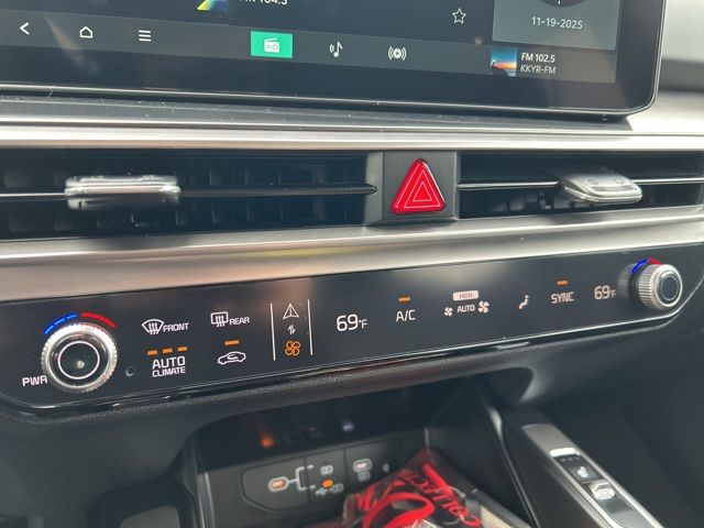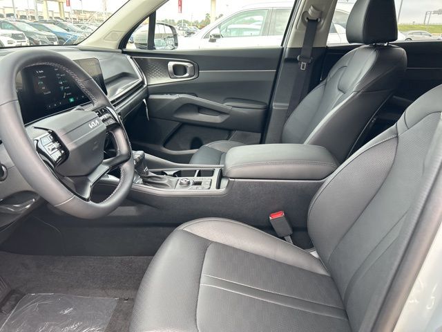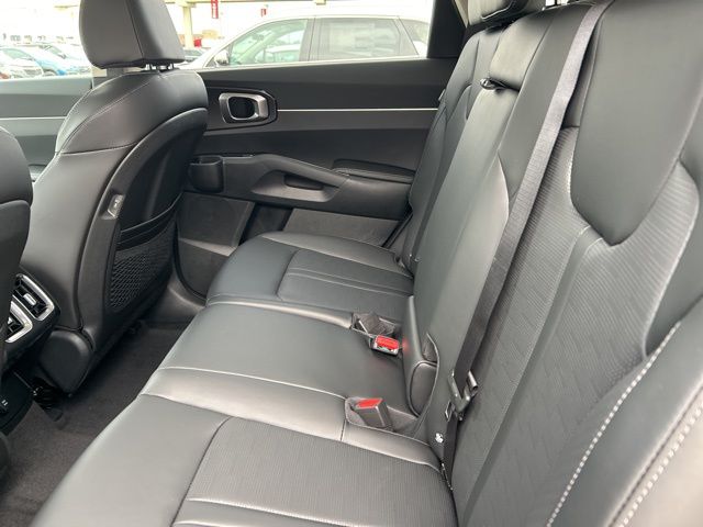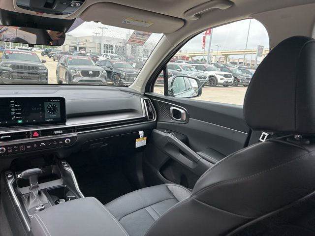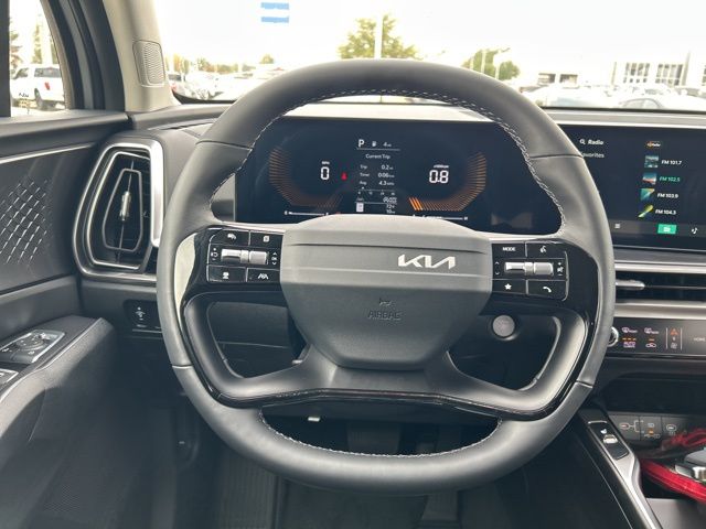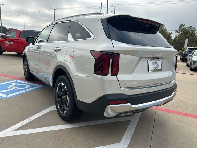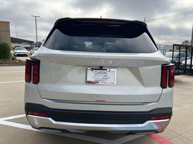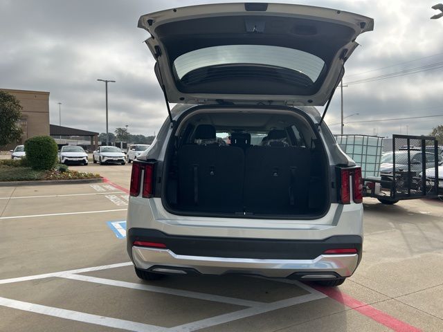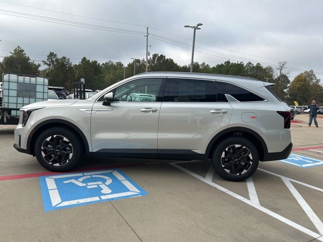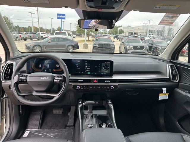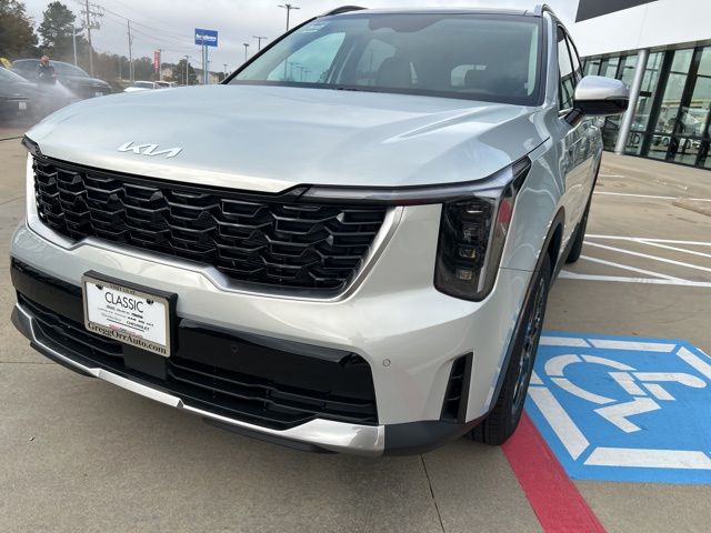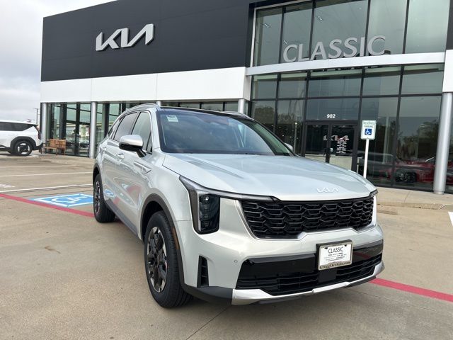 The 2026 Kia Sorento comes with the following features; S Panoramic Sunroof Package (Full-Length One-Touch Panoroof with Sliding Sunshade and LED Interior Lighting), 3rd row seats: split-bench, 4-Wheel Disc Brakes, 6 Speakers, ABS brakes, Air Conditioning, Alloy wheels, AM/FM radio: SiriusXM, Apple CarPlay & Android Auto, Auto High-beam Headlights, Automatic temperature control, Brake assist, Bumpers: body-color, Carpeted Floor Mats, Delay-off headlights, Driver door bin, Driver vanity mirror, Dual front impact airbags, Dual front side impact airbags, Electronic Stability Control, Emergency communication system: 911 Connect, Exterior Parking Camera Rear, Four wheel independent suspension, Front anti-roll bar, Front Bucket Seats, Front Center Armrest, Front dual zone A/C, Front reading lights, Fully automatic headlights, Heated door mirrors, Heated Front Bucket Seats, Heated front seats, Illuminated entry, Knee airbag, Leather Shift Knob, Leather steering wheel, Low tire pressure warning, Occupant sensing airbag, Outside temperature display, Overhead airbag, Overhead console, Panic alarm, Passenger door bin, Passenger vanity mirror, Power door mirrors, Power driver seat, Power steering, Power windows, Radio data system, Radio: AM/FM Standard Sound System, Rear anti-roll bar, Rear reading lights, Rear seat center armrest, Rear side impact airbag, Rear window defroster, Rear window wiper, Remote keyless entry, Security system, Speed control, Speed-sensing steering, Split folding rear seat, Spoiler, Steering wheel mounted audio controls, SynTex Artificial Leather Seat Trim, Tachometer, Telescoping steering wheel, Tilt steering wheel, Traction control, Trip computer, Turn signal indicator mirrors, Variably intermittent wipers, and Wheels: 18" Gloss Black Alloy.