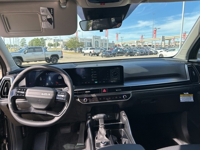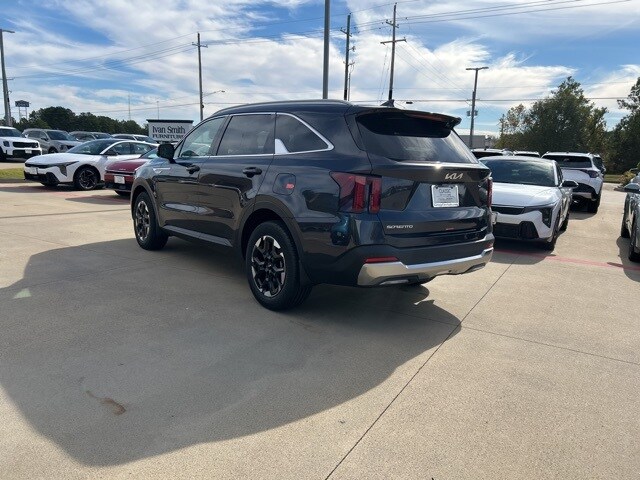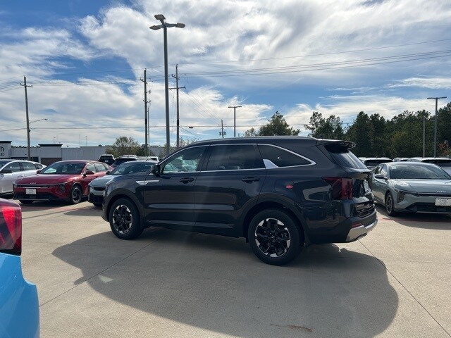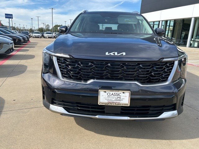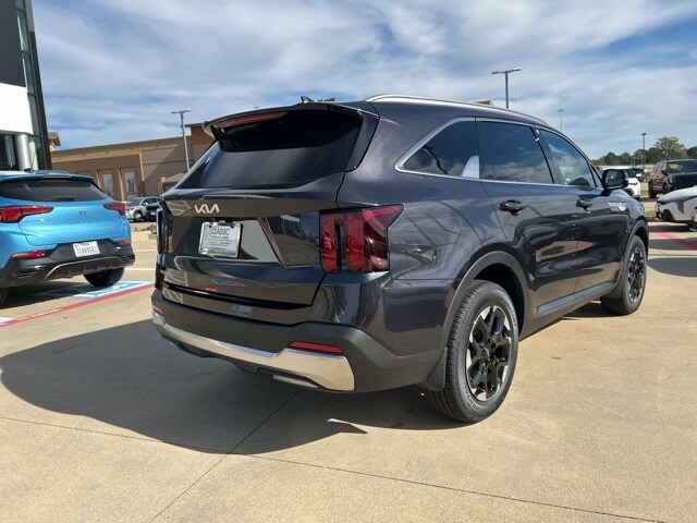 The 2026 Kia Sorento comes with the following features; S Panoramic Sunroof Package (Full-Length One-Touch Panoroof w/Sliding Sunshade and LED Interior Lighting), 3rd row seats: split-bench, 4-Wheel Disc Brakes, 6 Speakers, ABS brakes, Air Conditioning, Alloy wheels, AM/FM radio: SiriusXM, Apple CarPlay & Android Auto, Auto High-beam Headlights, Automatic temperature control, Brake assist, Bumpers: body-color, Cargo Cover, Cargo Net, Carpeted Floor Mats, Delay-off headlights, Driver door bin, Driver vanity mirror, Dual front impact airbags, Dual front side impact airbags, Electronic Stability Control, Emergency communication system: 911 Connect, Exterior Parking Camera Rear, Four wheel independent suspension, Front anti-roll bar, Front Bucket Seats, Front Center Armrest, Front dual zone A/C, Front reading lights, Fully automatic headlights, Heated door mirrors, Heated Front Bucket Seats, Heated front seats, Illuminated entry, Knee airbag, Leather Shift Knob, Leather steering wheel, Low tire pressure warning, Mudguards, Occupant sensing airbag, Outside temperature display, Overhead airbag, Overhead console, Panic alarm, Passenger door bin, Passenger vanity mirror, Power door mirrors, Power driver seat, Power steering, Power windows, Radio data system, Radio: AM/FM Standard Sound System, Rear anti-roll bar, Rear reading lights, Rear seat center armrest, Rear side impact airbag, Rear window defroster, Rear window wiper, Remote keyless entry, Security system, Speed control, Speed-sensing steering, Split folding rear seat, Spoiler, Steering wheel mounted audio controls, SynTex Artificial Leather Seat Trim, Tachometer, Telescoping steering wheel, Tilt steering wheel, Traction control, Trip computer, Turn signal indicator mirrors, Variably intermittent wipers, and Wheels: 18" Gloss Black Alloy.