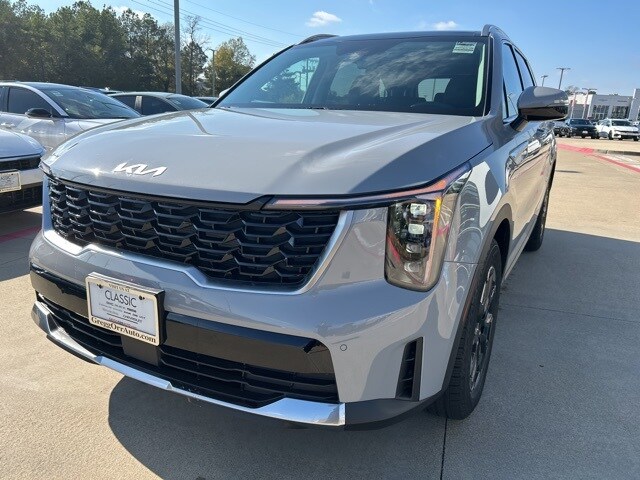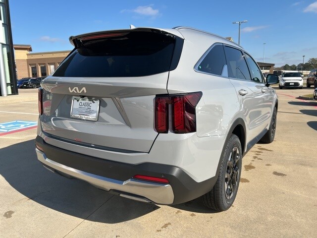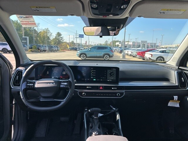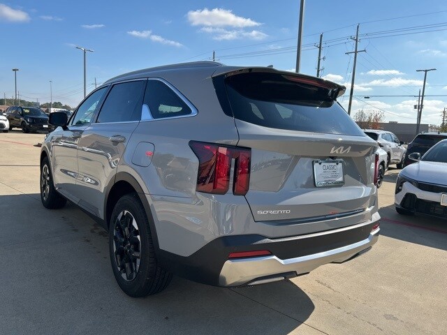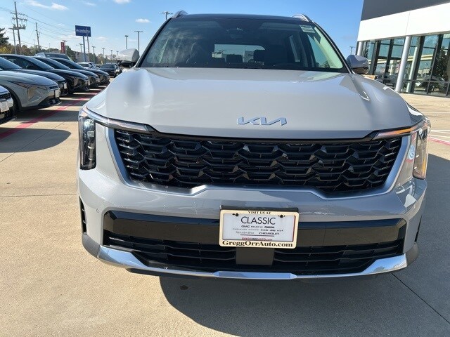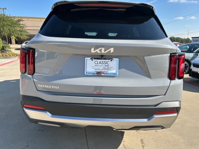 The 2026 Kia Sorento comes with the following features; S Panoramic Sunroof Package (Full-Length One-Touch Panoroof w/Sliding Sunshade and LED Interior Lighting), 3rd row seats: split-bench, 4-Wheel Disc Brakes, 6 Speakers, ABS brakes, Air Conditioning, Alloy wheels, AM/FM radio: SiriusXM, Apple CarPlay & Android Auto, Auto High-beam Headlights, Automatic temperature control, Brake assist, Bumpers: body-color, Carpeted Floor Mats, Delay-off headlights, Driver door bin, Driver vanity mirror, Dual front impact airbags, Dual front side impact airbags, Electronic Stability Control, Emergency communication system: 911 Connect, Exterior Parking Camera Rear, Four wheel independent suspension, Front anti-roll bar, Front Bucket Seats, Front Center Armrest, Front dual zone A/C, Front reading lights, Fully automatic headlights, Heated door mirrors, Heated Front Bucket Seats, Heated front seats, Illuminated entry, Knee airbag, Leather Shift Knob, Leather steering wheel, Low tire pressure warning, Occupant sensing airbag, Outside temperature display, Overhead airbag, Overhead console, Panic alarm, Passenger door bin, Passenger vanity mirror, Power door mirrors, Power driver seat, Power steering, Power windows, Radio data system, Radio: AM/FM Standard Sound System, Rear anti-roll bar, Rear reading lights, Rear seat center armrest, Rear side impact airbag, Rear window defroster, Rear window wiper, Remote keyless entry, Security system, Speed control, Speed-sensing steering, Split folding rear seat, Spoiler, Steering wheel mounted audio controls, SynTex Artificial Leather Seat Trim, Tachometer, Telescoping steering wheel, Tilt steering wheel, Traction control, Trip computer, Turn signal indicator mirrors, Variably intermittent wipers, and Wheels: 18" Gloss Black Alloy.