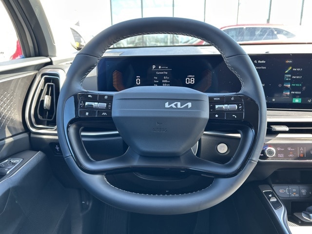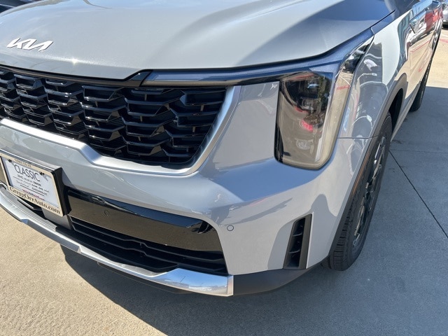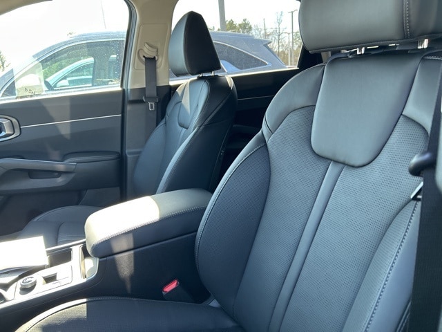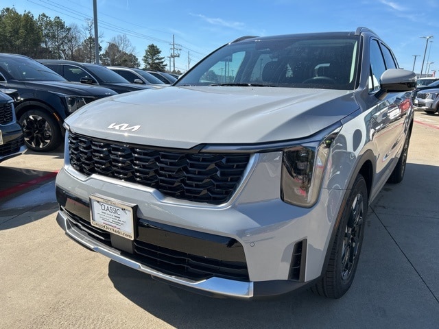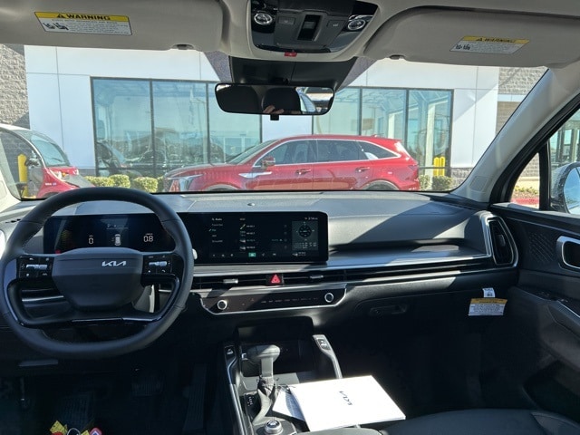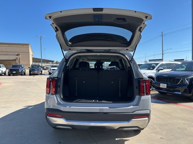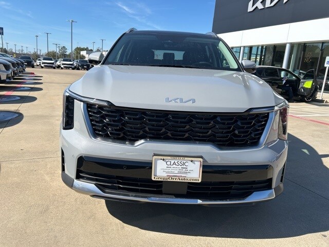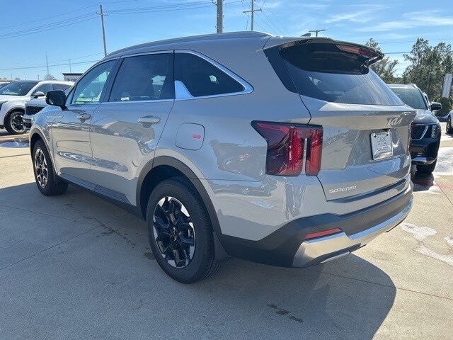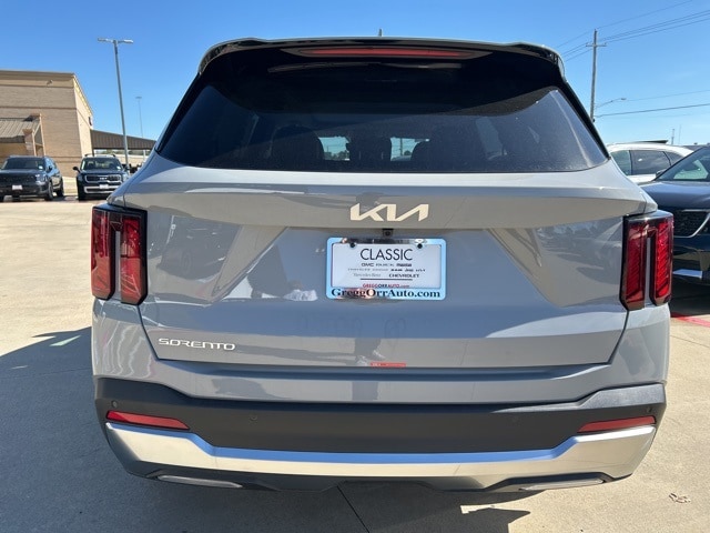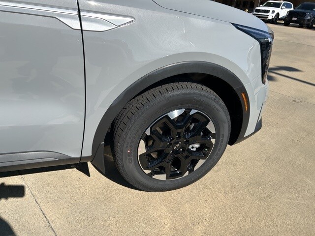 The 2026 Kia Sorento comes with the following features; S Panoramic Sunroof Package (Full-Length One-Touch Panoroof with Sliding Sunshade and LED Interior Lighting), 3rd row seats: split-bench, 4-Wheel Disc Brakes, 6 Speakers, ABS brakes, Air Conditioning, Alloy wheels, AM/FM radio: SiriusXM, Apple CarPlay & Android Auto, Auto High-beam Headlights, Automatic temperature control, Brake assist, Bumpers: body-color, Carpet Cargo Mat with Seatback Protection, Carpeted Floor Mats, Delay-off headlights, Driver door bin, Driver vanity mirror, Dual front impact airbags, Dual front side impact airbags, Electronic Stability Control, Emergency communication system: 911 Connect, Exterior Parking Camera Rear, Four wheel independent suspension, Front anti-roll bar, Front Bucket Seats, Front Center Armrest, Front dual zone A/C, Front reading lights, Fully automatic headlights, Heated door mirrors, Heated Front Bucket Seats, Heated front seats, Illuminated entry, Knee airbag, Leather Shift Knob, Leather steering wheel, Low tire pressure warning, Mudguards, Occupant sensing airbag, Outside temperature display, Overhead airbag, Overhead console, Panic alarm, Passenger door bin, Passenger vanity mirror, Power door mirrors, Power driver seat, Power steering, Power windows, Radio data system, Radio: AM/FM Standard Sound System, Rear anti-roll bar, Rear reading lights, Rear seat center armrest, Rear side impact airbag, Rear window defroster, Rear window wiper, Remote keyless entry, Security system, Speed control, Speed-sensing steering, Split folding rear seat, Spoiler, Steering wheel mounted audio controls, SynTex Artificial Leather Seat Trim, Tachometer, Telescoping steering wheel, Tilt steering wheel, Traction control, Trip computer, Turn signal indicator mirrors, Variably intermittent wipers, and Wheels: 18" Gloss Black Alloy.