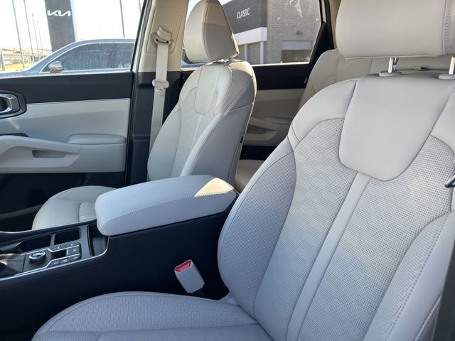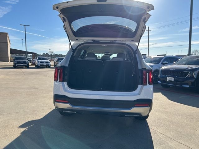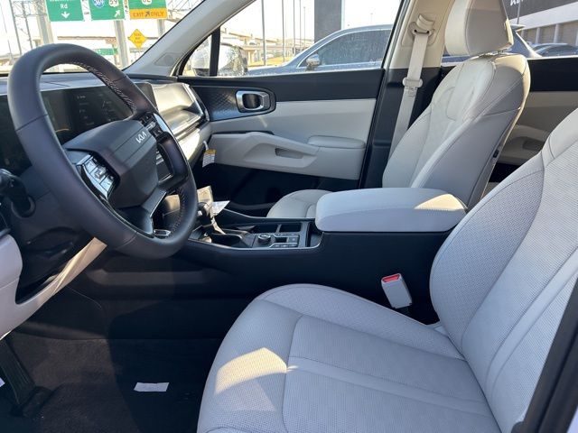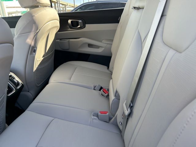 The 2026 Kia Sorento comes with the following features; 3rd row seats: split-bench, 4-Wheel Disc Brakes, 6 Speakers, ABS brakes, Air Conditioning, Alloy wheels, AM/FM radio: SiriusXM, Apple CarPlay & Android Auto, Auto High-beam Headlights, Automatic temperature control, Brake assist, Bumpers: body-color, Carpeted Floor Mats, Delay-off headlights, Driver door bin, Driver vanity mirror, Dual front impact airbags, Dual front side impact airbags, Electronic Stability Control, Emergency communication system: 911 Connect, Exterior Parking Camera Rear, Four wheel independent suspension, Front anti-roll bar, Front Bucket Seats, Front Center Armrest, Front dual zone A/C, Front reading lights, Fully automatic headlights, Heated door mirrors, Heated Front Bucket Seats, Heated front seats, Illuminated entry, Knee airbag, Leather Shift Knob, Leather steering wheel, Low tire pressure warning, Occupant sensing airbag, Outside temperature display, Overhead airbag, Overhead console, Panic alarm, Passenger door bin, Passenger vanity mirror, Power door mirrors, Power driver seat, Power steering, Power windows, Radio data system, Radio: AM/FM Standard Sound System, Rear anti-roll bar, Rear reading lights, Rear seat center armrest, Rear side impact airbag, Rear window defroster, Rear window wiper, Remote keyless entry, Security system, Speed control, Speed-sensing steering, Split folding rear seat, Spoiler, Steering wheel mounted audio controls, SynTex Artificial Leather Seat Trim, Tachometer, Telescoping steering wheel, Tilt steering wheel, Traction control, Trip computer, Turn signal indicator mirrors, Variably intermittent wipers, and Wheels: 18" Gloss Black Alloy.