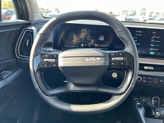 The 2026 Kia Sorento comes with the following features; EX Premium Package (2nd Row Captain's Chairs, Full-Length One-Touch Panoroof w/Sliding Sunshade, LED Interior Lighting, and Radio: AM/FM Bose Premium Audio System), 3rd row seats: split-bench, 4-Wheel Disc Brakes, 6 Speakers, ABS brakes, Air Conditioning, Alloy wheels, AM/FM radio: SiriusXM, Apple CarPlay & Android Auto, Auto High-beam Headlights, Auto-dimming Rear-View mirror, Automatic temperature control, Brake assist, Bumpers: body-color, Carpeted Floor Mats, Delay-off headlights, Driver door bin, Driver vanity mirror, Dual front impact airbags, Dual front side impact airbags, Electronic Stability Control, Emergency communication system: 911 Connect, Exterior Parking Camera Rear, Four wheel independent suspension, Front anti-roll bar, Front Bucket Seats, Front Center Armrest, Front dual zone A/C, Front fog lights, Front reading lights, Fully automatic headlights, Heated door mirrors, Heated Front Bucket Seats, Heated front seats, Illuminated entry, Knee airbag, Leather Shift Knob, Leather steering wheel, Low tire pressure warning, Navigation System, Occupant sensing airbag, Outside temperature display, Overhead airbag, Overhead console, Panic alarm, Passenger door bin, Passenger vanity mirror, Power door mirrors, Power driver seat, Power Liftgate, Power passenger seat, Power steering, Power windows, Radio data system, Radio: AM/FM Standard Sound System, Rear anti-roll bar, Rear reading lights, Rear seat center armrest, Rear side impact airbag, Rear window defroster, Rear window wiper, Remote keyless entry, Security system, Speed control, Speed-sensing steering, Split folding rear seat, Spoiler, Steering wheel mounted audio controls, SynTex Artificial Leather Seat Trim, Tachometer, Telescoping steering wheel, Tilt steering wheel, Traction control, Trip computer, Turn signal indicator mirrors, Variably intermittent wipers, and Wheels: 20" Machine-Finished Gloss Black Alloy.