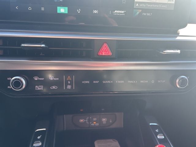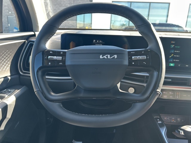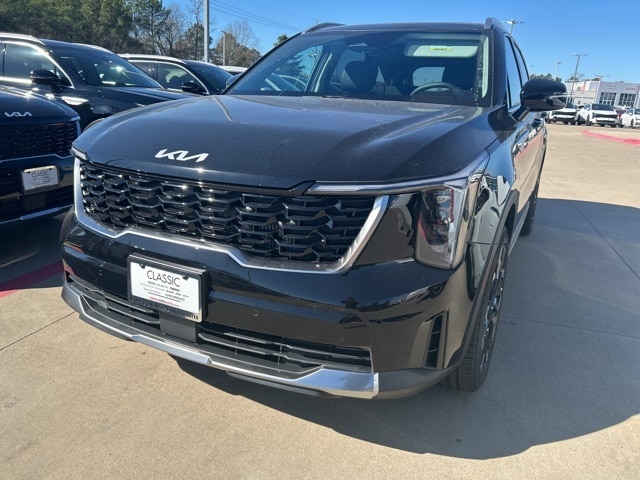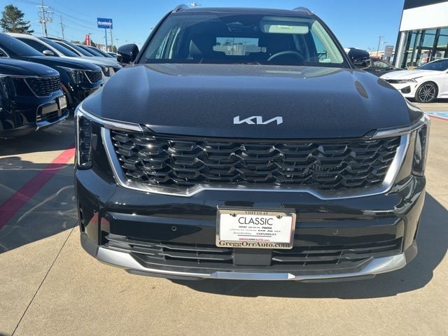 The 2026 Kia Sorento comes with the following features; EX Premium Package (2nd Row Captain's Chairs, Full-Length One-Touch Panoroof with Sliding Sunshade, LED Interior Lighting, and Radio: AM/FM Bose Premium Audio System), 3rd row seats: split-bench, 4-Wheel Disc Brakes, 6 Speakers, ABS brakes, Air Conditioning, Alloy wheels, AM/FM radio: SiriusXM, Apple CarPlay & Android Auto, Auto High-beam Headlights, Auto-dimming Rear-View mirror, Automatic temperature control, Brake assist, Bumpers: body-color, Carpeted Floor Mats, Delay-off headlights, Driver door bin, Driver vanity mirror, Dual front impact airbags, Dual front side impact airbags, Electronic Stability Control, Emergency communication system: 911 Connect, Exterior Parking Camera Rear, Four wheel independent suspension, Front anti-roll bar, Front Bucket Seats, Front Center Armrest, Front dual zone A/C, Front fog lights, Front reading lights, Fully automatic headlights, Heated door mirrors, Heated Front Bucket Seats, Heated front seats, Illuminated entry, Knee airbag, Leather Shift Knob, Leather steering wheel, Low tire pressure warning, Navigation System, Occupant sensing airbag, Outside temperature display, Overhead airbag, Overhead console, Panic alarm, Passenger door bin, Passenger vanity mirror, Power door mirrors, Power driver seat, Power Liftgate, Power passenger seat, Power steering, Power windows, Radio data system, Radio: AM/FM Standard Sound System, Rear anti-roll bar, Rear reading lights, Rear seat center armrest, Rear side impact airbag, Rear window defroster, Rear window wiper, Remote keyless entry, Security system, Speed control, Speed-sensing steering, Split folding rear seat, Spoiler, Steering wheel mounted audio controls, SynTex Artificial Leather Seat Trim, Tachometer, Telescoping steering wheel, Tilt steering wheel, Traction control, Trip computer, Turn signal indicator mirrors, Variably intermittent wipers, and Wheels: 20" Machine-Finished Gloss Black Alloy.