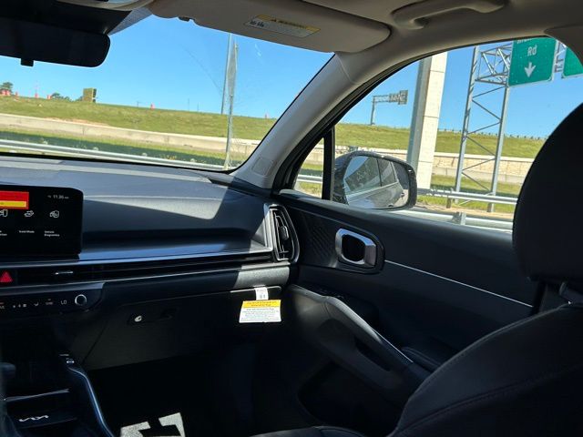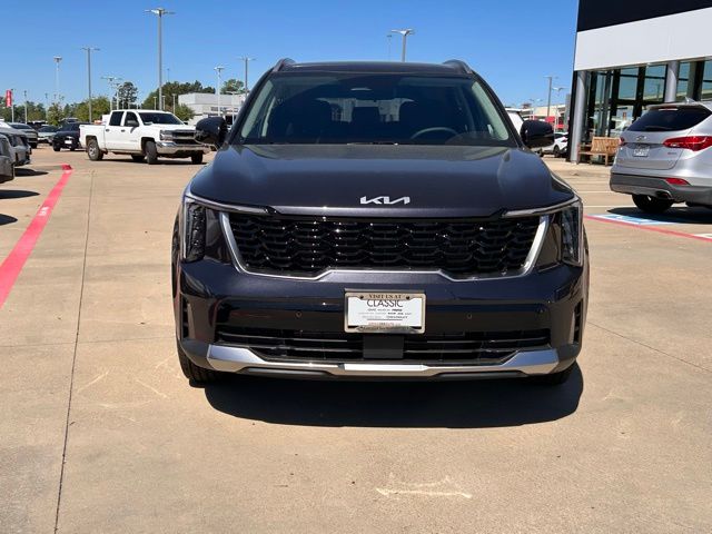 The 2026 Kia Sorento comes with the following features; S Panoramic Sunroof Package (Full-Length One-Touch Panoroof with Sliding Sunshade and LED Interior Lighting), 3rd row seats: split-bench, 4-Wheel Disc Brakes, 6 Speakers, ABS brakes, Air Conditioning, Alloy wheels, AM/FM radio: SiriusXM, Apple CarPlay & Android Auto, Auto High-beam Headlights, Automatic temperature control, Brake assist, Bumpers: body-color, Carpeted Floor Mats, Delay-off headlights, Driver door bin, Driver vanity mirror, Dual front impact airbags, Dual front side impact airbags, Electronic Stability Control, Emergency communication system: 911 Connect, Exterior Parking Camera Rear, Four wheel independent suspension, Front anti-roll bar, Front Bucket Seats, Front Center Armrest, Front dual zone A/C, Front reading lights, Fully automatic headlights, Heated door mirrors, Heated Front Bucket Seats, Heated front seats, Illuminated entry, Knee airbag, Leather Shift Knob, Leather steering wheel, Low tire pressure warning, Occupant sensing airbag, Outside temperature display, Overhead airbag, Overhead console, Panic alarm, Passenger door bin, Passenger vanity mirror, Power door mirrors, Power driver seat, Power steering, Power windows, Radio data system, Radio: AM/FM Standard Sound System, Rear anti-roll bar, Rear reading lights, Rear seat center armrest, Rear side impact airbag, Rear window defroster, Rear window wiper, Remote keyless entry, Security system, Speed control, Speed-sensing steering, Split folding rear seat, Spoiler, Steering wheel mounted audio controls, SynTex Artificial Leather Seat Trim, Tachometer, Telescoping steering wheel, Tilt steering wheel, Traction control, Trip computer, Turn signal indicator mirrors, Variably intermittent wipers, and Wheels: 18" Gloss Black Alloy.
