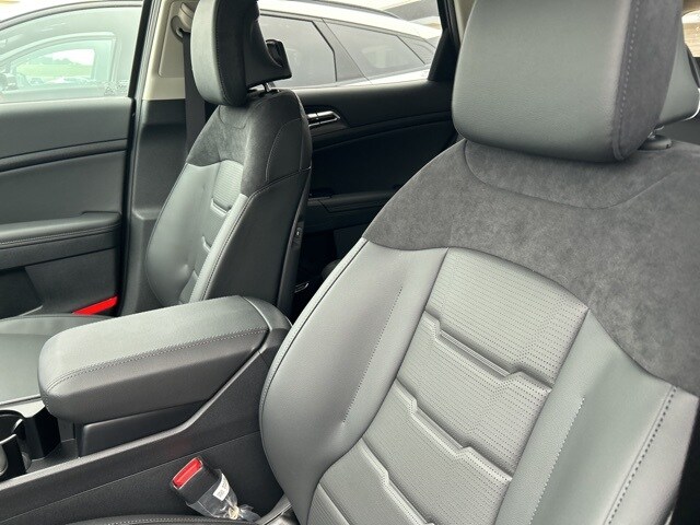 The 2026 Kia Sportage comes with the following features; AWD, 4-Wheel Disc Brakes, 8 Speakers, ABS brakes, Air Conditioning, Alloy wheels, AM/FM radio: SiriusXM, Auto High-beam Headlights, Automatic temperature control, Brake assist, Bumpers: body-color, Cargo Tray, Carpeted Floor Mats, Compass, Delay-off headlights, Driver door bin, Driver vanity mirror, Dual front impact airbags, Dual front side impact airbags, Electronic Stability Control, Emergency communication system: Kia Connect (includes 1 year free trial), Four wheel independent suspension, Front anti-roll bar, Front Bucket Seats, Front Center Armrest, Front dual zone A/C, Front fog lights, Front reading lights, Fully automatic headlights, harman/kardon® Speakers, Heated & Ventilated Front Bucket Seats, Heated door mirrors, Heated front seats, Heated steering wheel, Illuminated entry, Leather Shift Knob, Leather steering wheel, Low tire pressure warning, Memory seat, Navigation System, Occupant sensing airbag, Outside temperature display, Overhead airbag, Overhead console, Panic alarm, Passenger door bin, Passenger vanity mirror, Power door mirrors, Power driver seat, Power Liftgate, Power moonroof, Power passenger seat, Power steering, Power windows, Radio: AM/FM/HD Premium Audio System, Rain sensing wipers, Rear anti-roll bar, Rear reading lights, Rear seat center armrest, Rear side impact airbag, Rear window defroster, Rear window wiper, Remote keyless entry, Security system, Speed control, Speed-sensing steering, Split folding rear seat, Spoiler, Steering wheel mounted audio controls, SynTex Premium Leatherette Seat Trim, Tachometer, Telescoping steering wheel, Tilt steering wheel, Traction control, Trip computer, Turn signal indicator mirrors, Variably intermittent wipers, Ventilated front seats, and Wheels: 19" x 7.5J Alloy. AWD.