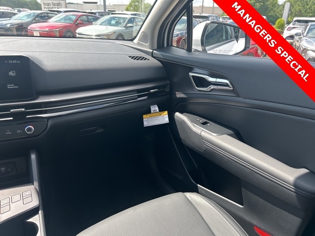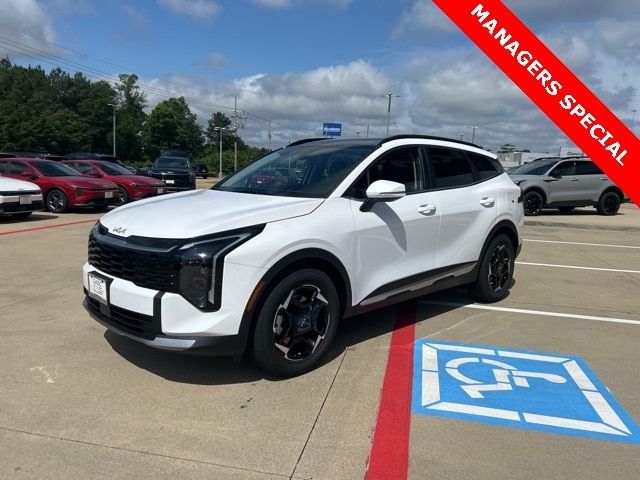 The 2026 Kia Sportage comes with the following features; EX Panorama Roof Package (LED Interior Lighting, Panoramic Sunroof, and Roof Rails), 18" x 7.5J Alloy Wheels, 4-Wheel Disc Brakes, 6 Speakers, ABS brakes, Air Conditioning, Alloy wheels, Auto High-beam Headlights, Automatic temperature control, Brake assist, Bumpers: body-color, Cargo Mat, Cargo Net w/o Audio, Carpeted Floor Mats, Delay-off headlights, Driver door bin, Driver vanity mirror, Dual front impact airbags, Dual front side impact airbags, Electronic Stability Control, Emergency communication system: Kia Connect (includes 1 year free trial), Four wheel independent suspension, Front anti-roll bar, Front Bucket Seats, Front Center Armrest, Front dual zone A/C, Fully automatic headlights, Heated door mirrors, Heated Front Bucket Seats, Heated front seats, Illuminated entry, Leather Shift Knob, Leather steering wheel, Low tire pressure warning, Occupant sensing airbag, Outside temperature display, Overhead airbag, Overhead console, Panic alarm, Passenger door bin, Passenger vanity mirror, Power door mirrors, Power driver seat, Power Liftgate, Power steering, Power windows, Radio: AM/FM/HD Audio System, Rain sensing wipers, Rear anti-roll bar, Rear seat center armrest, Rear side impact airbag, Rear window defroster, Rear window wiper, Remote keyless entry, Security system, Speed control, Speed-sensing steering, Split folding rear seat, Spoiler, Steering wheel mounted audio controls, SynTex Leatherette Seat Trim, Tachometer, Telescoping steering wheel, Tilt steering wheel, Traction control, Trip computer, Turn signal indicator mirrors, and Variably intermittent wipers.