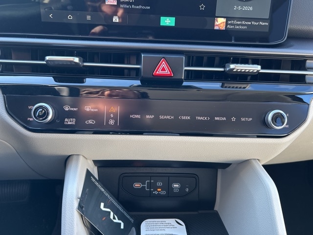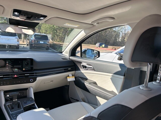 The 2026 Kia Sportage comes with the following features; EX Panorama Roof Package (LED Interior Lighting, Panoramic Sunroof, and Roof Rails), 18" x 7.5J Alloy Wheels, 4-Wheel Disc Brakes, 6 Speakers, ABS brakes, Air Conditioning, Alloy wheels, Auto High-beam Headlights, Automatic temperature control, Brake assist, Bumpers: body-color, Carpeted Floor Mats, Delay-off headlights, Driver door bin, Driver vanity mirror, Dual front impact airbags, Dual front side impact airbags, Electronic Stability Control, Emergency communication system: Kia Connect (includes 1 year free trial), Four wheel independent suspension, Front anti-roll bar, Front Bucket Seats, Front Center Armrest, Front dual zone A/C, Fully automatic headlights, Heated door mirrors, Heated Front Bucket Seats, Heated front seats, Illuminated entry, Leather Shift Knob, Leather steering wheel, Low tire pressure warning, Occupant sensing airbag, Outside temperature display, Overhead airbag, Overhead console, Panic alarm, Passenger door bin, Passenger vanity mirror, Power door mirrors, Power driver seat, Power Liftgate, Power steering, Power windows, Radio: AM/FM/HD Audio System, Rain sensing wipers, Rear anti-roll bar, Rear seat center armrest, Rear side impact airbag, Rear window defroster, Rear window wiper, Remote keyless entry, Security system, Speed control, Speed-sensing steering, Split folding rear seat, Spoiler, Steering wheel mounted audio controls, Syntex Leatherette Seat Trim, Tachometer, Telescoping steering wheel, Tilt steering wheel, Traction control, Trip computer, Turn signal indicator mirrors, and Variably intermittent wipers.