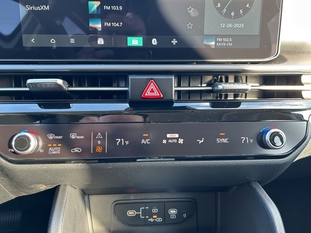 The 2026 Kia Sportage comes with the following features; EX Panorama Roof Package (LED Interior Lighting and Panoramic Sunroof), AWD, 18" x 7.5J Alloy Wheels, 4-Wheel Disc Brakes, 6 Speakers, ABS brakes, Air Conditioning, Alloy wheels, Auto High-beam Headlights, Automatic temperature control, Brake assist, Bumpers: body-color, Carpeted Floor Mats, Delay-off headlights, Driver door bin, Driver vanity mirror, Dual front impact airbags, Dual front side impact airbags, Electronic Stability Control, Emergency communication system: Kia Connect (includes 1 year free trial), Four wheel independent suspension, Front anti-roll bar, Front Bucket Seats, Front Center Armrest, Front dual zone A/C, Fully automatic headlights, Heated door mirrors, Heated Front Bucket Seats, Heated front seats, Illuminated entry, Leather Shift Knob, Leather steering wheel, Low tire pressure warning, Occupant sensing airbag, Outside temperature display, Overhead airbag, Overhead console, Panic alarm, Passenger door bin, Passenger vanity mirror, Power door mirrors, Power driver seat, Power Liftgate, Power steering, Power windows, Radio: AM/FM/HD Audio System, Rain sensing wipers, Rear anti-roll bar, Rear seat center armrest, Rear side impact airbag, Rear window defroster, Rear window wiper, Remote keyless entry, Security system, Speed control, Speed-sensing steering, Split folding rear seat, Spoiler, Steering wheel mounted audio controls, Syntex Leatherette Seat Trim, Tachometer, Telescoping steering wheel, Tilt steering wheel, Traction control, Trip computer, Turn signal indicator mirrors, and Variably intermittent wipers. AWD.