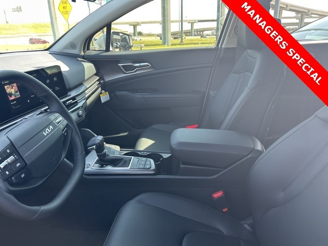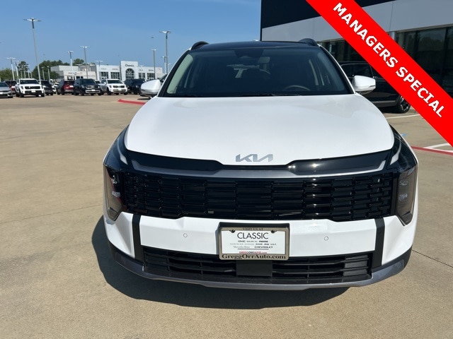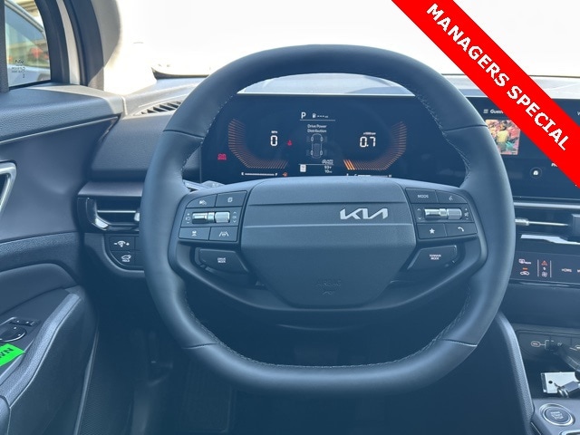 The 2026 Kia Sportage comes with the following features; EX Panorama Roof Package (LED Interior Lighting and Panoramic Sunroof), AWD, 18" x 7.5J Alloy Wheels, 4-Wheel Disc Brakes, 6 Speakers, ABS brakes, Air Conditioning, Alloy wheels, Auto High-beam Headlights, Automatic temperature control, Brake assist, Bumpers: body-color, Delay-off headlights, Driver door bin, Driver vanity mirror, Dual front impact airbags, Dual front side impact airbags, Electronic Stability Control, Emergency communication system: Kia Connect (includes 1 year free trial), Four wheel independent suspension, Front anti-roll bar, Front Bucket Seats, Front Center Armrest, Front dual zone A/C, Fully automatic headlights, Heated door mirrors, Heated Front Bucket Seats, Heated front seats, Illuminated entry, Leather Shift Knob, Leather steering wheel, Low tire pressure warning, Occupant sensing airbag, Outside temperature display, Overhead airbag, Overhead console, Panic alarm, Passenger door bin, Passenger vanity mirror, Power door mirrors, Power driver seat, Power Liftgate, Power steering, Power windows, Radio: AM/FM/HD Audio System, Rain sensing wipers, Rear anti-roll bar, Rear seat center armrest, Rear side impact airbag, Rear window defroster, Rear window wiper, Remote keyless entry, Security system, Speed control, Speed-sensing steering, Split folding rear seat, Spoiler, Steering wheel mounted audio controls, SynTex Leatherette Seat Trim, Tachometer, Telescoping steering wheel, Tilt steering wheel, Traction control, Trip computer, Turn signal indicator mirrors, and Variably intermittent wipers. AWD.