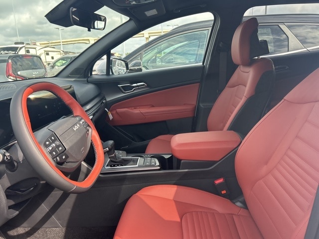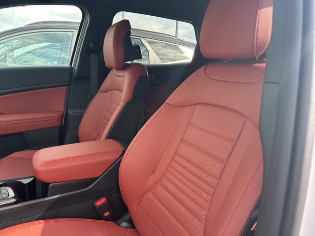 The 2026 Kia Sportage comes with the following features; Carmine Red Interior Color Package, AWD, 4-Wheel Disc Brakes, 8 Speakers, ABS brakes, Air Conditioning, Alloy wheels, AM/FM radio: SiriusXM, Auto High-beam Headlights, Automatic temperature control, Brake assist, Bumpers: body-color, Compass, Delay-off headlights, Driver door bin, Driver vanity mirror, Dual front impact airbags, Dual front side impact airbags, Electronic Stability Control, Emergency communication system: Kia Connect (includes 1 year free trial), Four wheel independent suspension, Front anti-roll bar, Front Bucket Seats, Front Center Armrest, Front dual zone A/C, Front fog lights, Front reading lights, Fully automatic headlights, harman/kardon® Speakers, Heated & Ventilated Front Bucket Seats, Heated door mirrors, Heated front seats, Heated steering wheel, Illuminated entry, Leather Shift Knob, Leather steering wheel, Low tire pressure warning, Memory seat, Navigation System, Occupant sensing airbag, Outside temperature display, Overhead airbag, Overhead console, Panic alarm, Passenger door bin, Passenger vanity mirror, Power door mirrors, Power driver seat, Power Liftgate, Power moonroof, Power passenger seat, Power steering, Power windows, Radio: AM/FM/HD Premium Audio System, Rain sensing wipers, Rear anti-roll bar, Rear reading lights, Rear seat center armrest, Rear side impact airbag, Rear window defroster, Rear window wiper, Remote keyless entry, Security system, Speed control, Speed-sensing steering, Split folding rear seat, Spoiler, Steering wheel mounted audio controls, SynTex Premium Leatherette Seat Trim, Tachometer, Telescoping steering wheel, Tilt steering wheel, Traction control, Trip computer, Turn signal indicator mirrors, Variably intermittent wipers, Ventilated front seats, and Wheels: 19" x 7.5J Alloy. AWD.