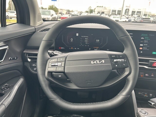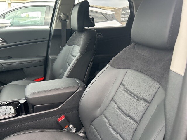 The 2026 Kia Sportage comes with the following features; 4-Wheel Disc Brakes, 8 Speakers, ABS brakes, Air Conditioning, Alloy wheels, AM/FM radio: SiriusXM, Auto High-beam Headlights, Automatic temperature control, Brake assist, Bumpers: body-color, Cargo Net w/Audio, Carpeted Floor Mats, Compass, Delay-off headlights, Driver door bin, Driver vanity mirror, Dual front impact airbags, Dual front side impact airbags, Electronic Stability Control, Emergency communication system: Kia Connect (includes 1 year free trial), Four wheel independent suspension, Front anti-roll bar, Front Bucket Seats, Front Center Armrest, Front dual zone A/C, Front fog lights, Front reading lights, Fully automatic headlights, harman/kardon® Speakers, Heated & Ventilated Front Bucket Seats, Heated door mirrors, Heated front seats, Heated steering wheel, Illuminated entry, Leather Shift Knob, Leather steering wheel, Low tire pressure warning, Memory seat, Navigation System, Occupant sensing airbag, Outside temperature display, Overhead airbag, Overhead console, Panic alarm, Passenger door bin, Passenger vanity mirror, Power door mirrors, Power driver seat, Power Liftgate, Power moonroof, Power passenger seat, Power steering, Power windows, Radio: AM/FM/HD Premium Audio System, Rain sensing wipers, Rear anti-roll bar, Rear reading lights, Rear seat center armrest, Rear side impact airbag, Rear window defroster, Rear window wiper, Remote keyless entry, Security system, Speed control, Speed-sensing steering, Split folding rear seat, Spoiler, Steering wheel mounted audio controls, SynTex Premium Leatherette Seat Trim, Tachometer, Telescoping steering wheel, Tilt steering wheel, Traction control, Trip computer, Turn signal indicator mirrors, Variably intermittent wipers, Ventilated front seats, Wheel Locks, and Wheels: 19" x 7.5J Alloy.
