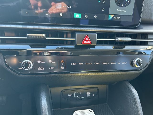 The 2026 Kia Sportage comes with the following features; 4-Wheel Disc Brakes, 6 Speakers, ABS brakes, Air Conditioning, Alloy wheels, AM/FM radio, Auto High-beam Headlights, Automatic temperature control, Brake assist, Bumpers: body-color, Carpeted Floor Mats, Delay-off headlights, Driver door bin, Driver vanity mirror, Dual front impact airbags, Dual front side impact airbags, Electronic Stability Control, Emergency communication system: Kia Connect (includes 1 year free trial), Four wheel independent suspension, Front anti-roll bar, Front Bucket Seats, Front Center Armrest, Front dual zone A/C, Fully automatic headlights, Heated door mirrors, Heated Front Bucket Seats, Heated front seats, Illuminated entry, Leather Shift Knob, Leather steering wheel, Low tire pressure warning, Occupant sensing airbag, Outside temperature display, Overhead airbag, Overhead console, Panic alarm, Passenger door bin, Passenger vanity mirror, Power door mirrors, Power driver seat, Power Liftgate, Power steering, Power windows, Radio: AM/FM/HD Audio System, Rain sensing wipers, Rear anti-roll bar, Rear seat center armrest, Rear side impact airbag, Rear window defroster, Rear window wiper, Remote keyless entry, Security system, Speed control, Speed-sensing steering, Split folding rear seat, Spoiler, Steering wheel mounted audio controls, Syntex Leatherette Seat Trim, Tachometer, Telescoping steering wheel, Tilt steering wheel, Traction control, Trip computer, Turn signal indicator mirrors, Variably intermittent wipers, and Wheels: 18" x 7.5J Machined Alloy.