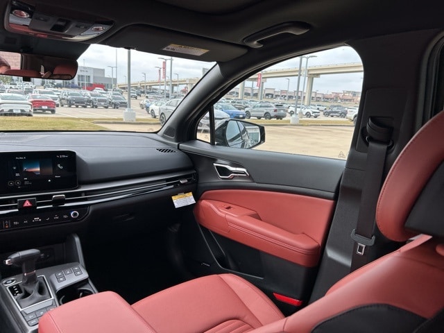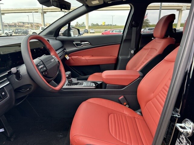 The 2026 Kia Sportage comes with the following features; AWD, 4-Wheel Disc Brakes, 8 Speakers, ABS brakes, Air Conditioning, Alloy wheels, AM/FM radio: SiriusXM, Auto High-beam Headlights, Automatic temperature control, Brake assist, Bumpers: body-color, Compass, Delay-off headlights, Driver door bin, Driver vanity mirror, Dual front impact airbags, Dual front side impact airbags, Electronic Stability Control, Emergency communication system: Kia Connect (includes 1 year free trial), Four wheel independent suspension, Front anti-roll bar, Front Bucket Seats, Front Center Armrest, Front dual zone A/C, Front fog lights, Front reading lights, Fully automatic headlights, harman/kardon® Speakers, Heated & Ventilated Front Bucket Seats, Heated door mirrors, Heated front seats, Heated steering wheel, Illuminated entry, Leather Shift Knob, Leather steering wheel, Low tire pressure warning, Memory seat, Navigation System, Occupant sensing airbag, Outside temperature display, Overhead airbag, Overhead console, Panic alarm, Passenger door bin, Passenger vanity mirror, Power door mirrors, Power driver seat, Power Liftgate, Power moonroof, Power passenger seat, Power steering, Power windows, Radio: AM/FM/HD Premium Audio System, Rain sensing wipers, Rear anti-roll bar, Rear reading lights, Rear seat center armrest, Rear side impact airbag, Rear window defroster, Rear window wiper, Remote keyless entry, Security system, Speed control, Speed-sensing steering, Split folding rear seat, Spoiler, Steering wheel mounted audio controls, SynTex Premium Leatherette Seat Trim, Tachometer, Telescoping steering wheel, Tilt steering wheel, Traction control, Trip computer, Turn signal indicator mirrors, Variably intermittent wipers, Ventilated front seats, and Wheels: 19" x 7.5J Alloy. AWD.