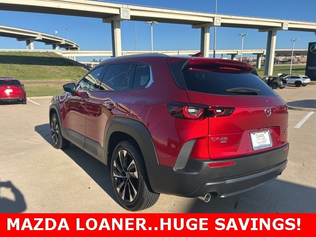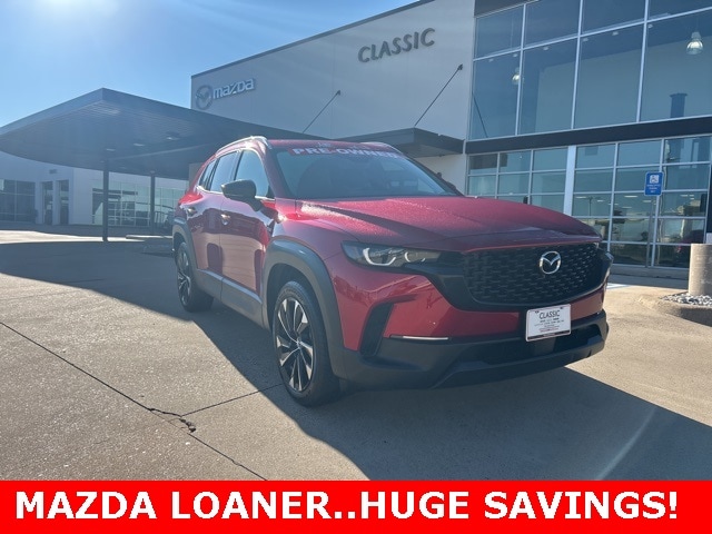 This 2025 Mazda CX-50 Hybrid comes equipped with the following features Weather Package (Cargo Liner w/Seatback Protection), 2.5L 4-Cylinder, 12 Speakers, 4-Wheel Disc Brakes, ABS brakes, Air Conditioning, Alloy wheels, AM/FM radio: SiriusXM, AppLink/Apple CarPlay and Android Auto, Auto High-beam Headlights, Auto-dimming door mirrors, Auto-dimming Rear-View mirror, Automatic temperature control, Black Lug Nuts & Black Wheel Locks, Brake assist, Bumpers: body-color, Delay-off headlights, Driver door bin, Driver vanity mirror, Dual front impact airbags, Dual front side impact airbags, Electronic Stability Control, Emergency communication system: MAZDA CONNECT, Exterior Parking Camera Rear, Front anti-roll bar, Front Bucket Seats, Front Center Armrest, Front dual zone A/C, Front reading lights, Front wheel independent suspension, Fully automatic headlights, Garage door transmitter: HomeLink, Heads-Up Display, Heated door mirrors, Heated front seats, Heated/Ventilated Front Seats w/3 Level Adjustment, Illuminated entry, Knee airbag, Leather Seat Trim, Leather Shift Knob, Leather steering wheel, Low tire pressure warning, Memory seat, Occupant sensing airbag, Outside temperature display, Overhead airbag, Overhead console, Panic alarm, Passenger door bin, Passenger vanity mirror, Power door mirrors, Power driver seat, Power Liftgate, Power moonroof, Power passenger seat, Power steering, Power windows, Radio data system, Radio: AM/FM/HD Bose 12-Speaker Audio Sound System, Rain sensing wipers, Rear seat center armrest, Rear window defroster, Rear window wiper, Remote keyless entry, Retractable Cargo Cover, Soul Red Crystal Metallic Paint Charge, Speed control, Speed-sensing steering, Split folding rear seat, Spoiler, Steering wheel mounted audio controls, Tachometer, Telescoping steering wheel, Tilt steering wheel, Traction control, Trip computer, Turn signal indicator mirrors, Variably intermittent wipers, Ventilated front seats, and Wheels: 19 x 7.5J Black Metallic Aluminum Alloy. 2.5L 4-Cylinder. Clean CARFAX. 2025 Mazda CX-50 Hybrid Premium Plus AWD 2.5L 4-Cylinder