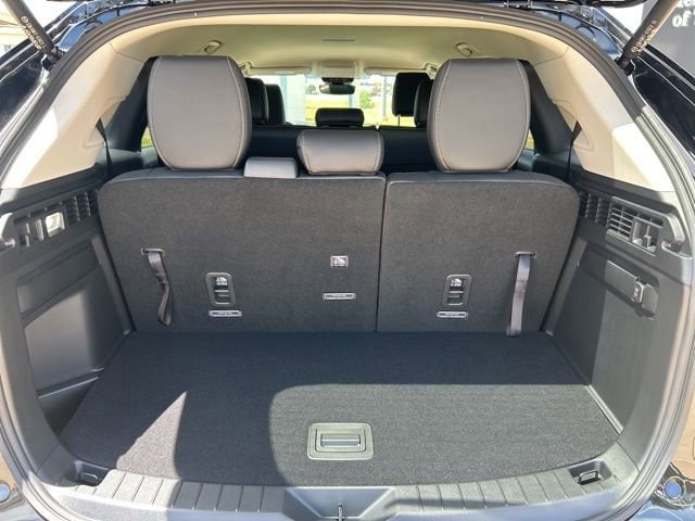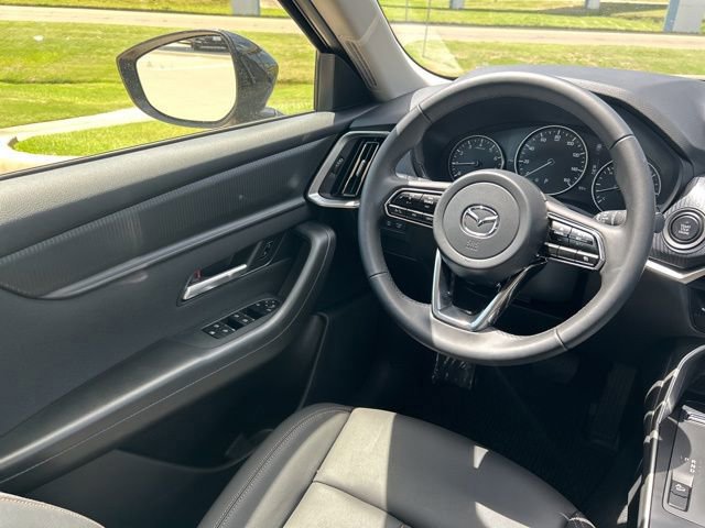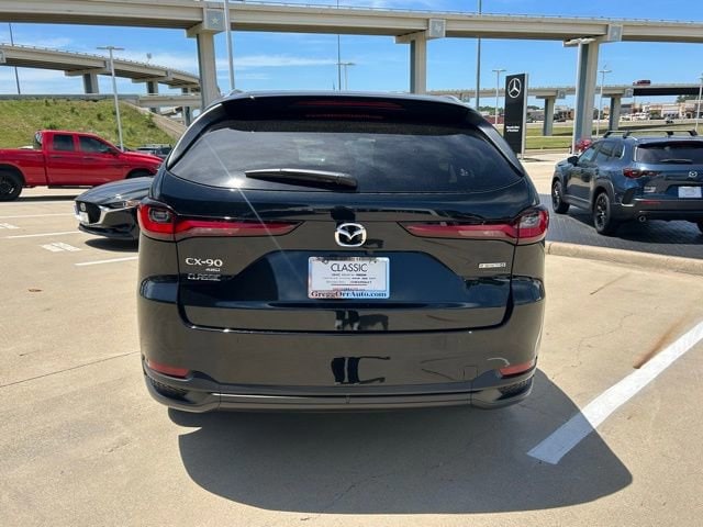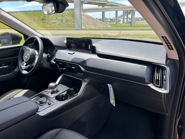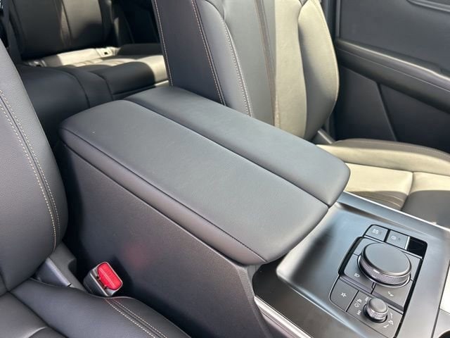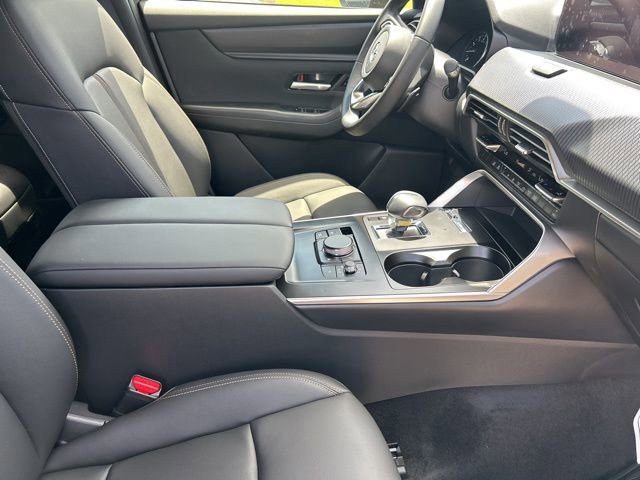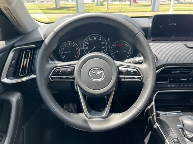 This 2025 Mazda CX-90 comes equipped with the following features 3rd row seats: bench, 4-Wheel Disc Brakes, 8 Speakers, ABS brakes, Air Conditioning, Alloy wheels, AM/FM radio, AppLink/Apple CarPlay and Android Auto, Auto High-beam Headlights, Automatic temperature control, Brake assist, Bumpers: body-color, Cargo Blocks, Compass, Delay-off headlights, Driver door bin, Driver vanity mirror, Dual front impact airbags, Dual front side impact airbags, E911 Automatic Emergency Notification, Electronic Stability Control, Emergency communication system: MAZDA CONNECT, Exterior Parking Camera Rear, Four wheel independent suspension, Front anti-roll bar, Front Bucket Seats, Front Center Armrest w/Storage, Front dual zone A/C, Front reading lights, Fully automatic headlights, Heated door mirrors, Illuminated entry, Infotainment System Voice Command, Knee airbag, Leather Shift Knob, Leather steering wheel, Leatherette Seat Trim, Low tire pressure warning, Mazda Connected Services, Occupant sensing airbag, Outside temperature display, Overhead airbag, Overhead console, Pandora Internet Radio Integration, Panic alarm, Passenger door bin, Passenger vanity mirror, Power door mirrors, Power driver seat, Power Liftgate, Power steering, Power windows, Radio Broadcast Data System Program Information, Radio data system, Radio: AM/FM w/HD/8-Speaker Sound System, Rain sensing wipers, Rear air conditioning, Rear anti-roll bar, Rear reading lights, Rear seat center armrest, Rear window defroster, Rear window wiper, Remote keyless entry, Roadside Assistance Kit, SMS Text Msg Audio Delivery & Reply, Speed control, Speed-sensing steering, Split folding rear seat, Spoiler, Steering wheel mounted audio controls, Tachometer, Telescoping steering wheel, Tilt steering wheel, Traction control, Trip computer, Turn signal indicator mirrors, Variably intermittent wipers, and Wheels: 19 x 8.5J Aluminum Alloy. Clean CARFAX. 2025 Mazda CX-90 3.3 Turbo Select AWD I6 Turbo