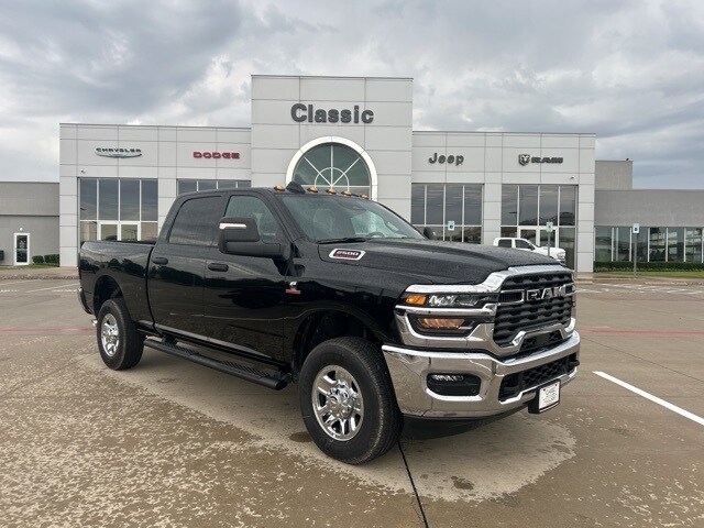 Classic CDJR in Texarkana is proud to offer this gorgeous-looking 2025 Ram 2500 in Diamond Black Crystal Pearlcoat. This 2025 Ram 2500 comes with the following features; Quick Order Package 24A Tradesman, Tradesman Level 2 Equipment Group (115V Auxiliary Front Power Outlet, 12" Touchscreen Display, 2 Way Rear Headrest Seat, 4 Way Front Headrests, 40/20/40 Split Bench Seat, 400W Inverter, 4G LTE Wi-Fi Hot Spot, Air Conditioning ATC w/Dual Zone Control, Alexa Built-In, Anti-Spin Differential Rear Axle, Apple CarPlay, Auto-Dimming Rear-View Mirror, Black Exterior Mirrors, Bright Front Bumper, Bright Rear Bumper, Carpet Floor Covering, Center Hub, Chrome Grille Surround, Cloth 40/20/40 Bench Seat, Connected Travel & Traffic Services, Connectivity - US/Canada, Disassociated Touchscreen Display, Emergency Vehicle Alert System (EVAS), Exterior 115V AC Outlet, Exterior Mirrors Courtesy Lamps, Exterior Mirrors w/Heating Element, Exterior Mirrors w/Supplemental Signals, Front & Rear Floor Mats, Front Armrest w/Cupholders, Global Telematics Box Module (TBM), Google Android Auto, GPS Antenna Input, GPS Navigation, HD Radio, Integrated Voice Command w/Bluetooth, Manual Adjust 4-Way Driver Seat, Manual Adjust 4-Way Front Passenger Seat, Manual Folding Exterior Mirrors, Manual Telescoping Mirrors, Matte Black Mesh Grille w/Chrome, Mirror Running Lights, Mopar Black Tubular Side Steps, Off-Road Info Pages, ParkSense Front/Rear Park Assist System, Power Adjust Mirrors, Power Adjustable Convex Aux Mirrors, Power Heated Folding Telescope Mirrors, Radio: Uconnect 5 Nav w/12.0" Display, Rear Folding Seat, Rear Power Sliding Window, Remote USB Port - Charge Only, Selectable Tire Fill Alert, SiriusXM Radio Service, SiriusXM w/360L, Storage Tray, Tinted Acoustic Windshield Glass, Trailer Tow Pages, and Wheels: 18" x 8.0" Steel Chrome Clad), 4-Wheel Disc Brakes, 5th Wheel/Gooseneck Towing Prep Group, 6 Speakers, ABS brakes, Air Conditioning, AM/FM radio: SiriusXM, Apple CarPlay/Android Auto, Black Wheel Center Hub, Brake assist, Clearance Lamps, Compass, Delay-off headlights, Driver door bin, Dual front impact airbags, Dual front side impact airbags, Electronic Stability Control, Front anti-roll bar, Front Center Armrest w/Storage, Front fog lights, Front License Plate Bracket, Front reading lights, Fully automatic headlights, Heavy Duty Vinyl 40/20/40 Split Bench Seat, Illuminated entry, Low tire pressure warning, Occupant sensing airbag, Outside temperature display, Overhead airbag, Overhead console, Panic alarm, ParkView Rear Back-Up Camera, Passenger door bin, Passenger vanity mirror, Power steering, Power windows, Radio data system, Radio: Uconnect 5 w/8.4" Display, Rear anti-roll bar, Rear step bumper, Rear window defroster, Remote keyless entry, Speed control, Tachometer, Tilt steering wheel, Traction control, Variably intermittent wipers, Voltmeter, and Wheels: 17" x 7.5" Black Steel Styled.