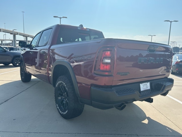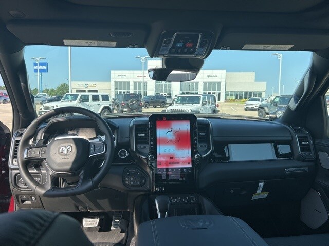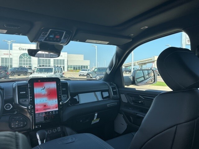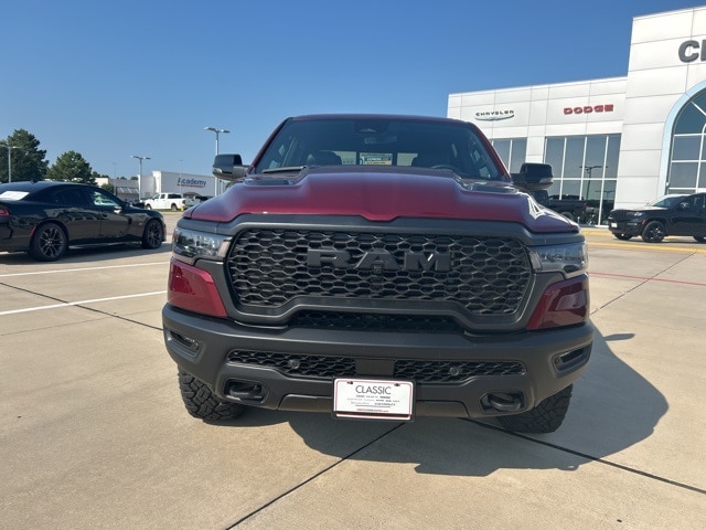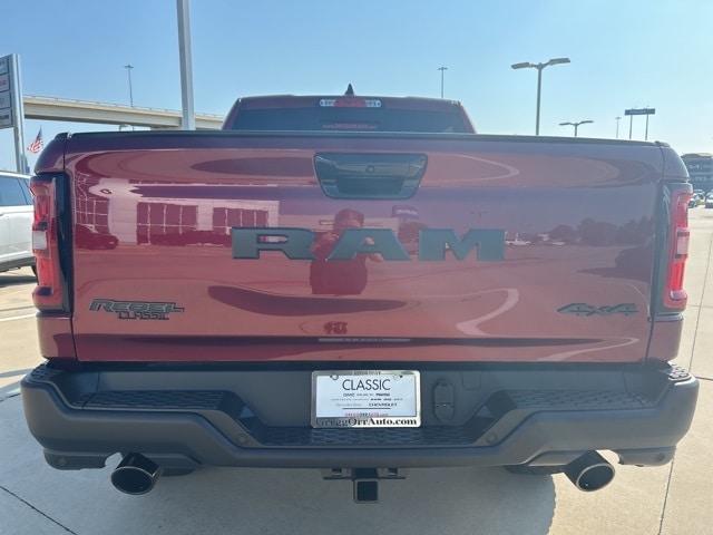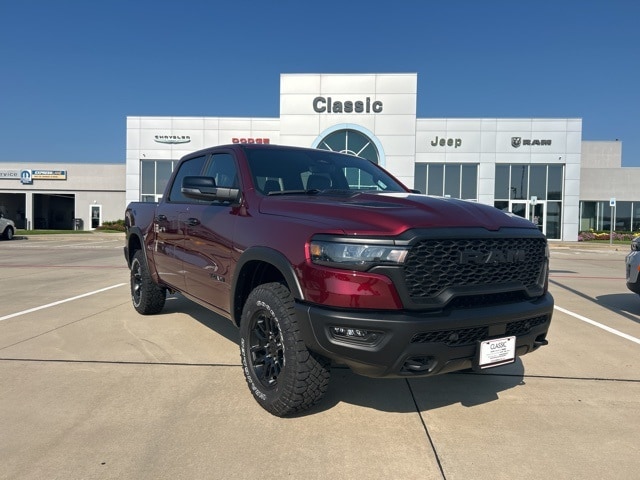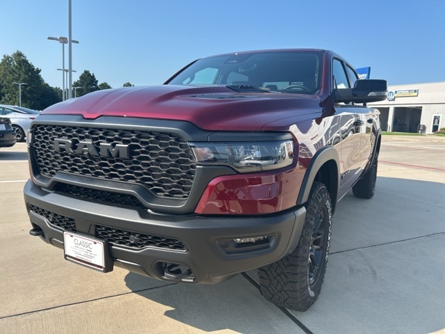 Classic CDJR in Texarkana is proud to offer this outstanding 2026 Ram 1500 in Delmonico Red Pearlcoat. This 2026 Ram 1500 comes with the following features; G/T Package (4 Way Front Headrests, Bucket Seats, Driver Seat Memory, Floor Console, Front Seat Back Map Pockets, G/T Decal, G/T Exhaust, GT Interior Theme, Heated Front Seats, Heated Second Row Seats, Heated Steering Wheel, Leather Wrapped Shift Knob, Leather-Wrapped Steering Wheel, Leather/Vinyl Bucket Seats, MOPAR Bright Pedal Kit, Performance Pages, Power 4-Way Driver Lumbar Adjust, Power 4-Way Passenger Lumbar Adjust, Power Adjust 8-Way Driver Seat, Power Adjust 8-Way Front Passenger Seat, Rear 60/40 Folding Split Recline Seat, Steering Wheel Mounted Shift Control, Under Seat Lighting, and Ventilated Front Seats), Quick Order Package 21W Rebel, Rebel Level 2 Equipment Group (115V Auxiliary Rear Power Outlet, 14.4" Touchscreen Display, 2-Door Passive Entry, Front Door Locks, 4G LTE Wi-Fi Hot Spot, Accent Color Door Handles, Accent Color Premium Power Mirrors, Accent Color Tailgate Handle, Apple CarPlay, Auto Power-Folding Mirrors, Auto-Dimming Exterior Driver Mirror, Black Painted Exterior Mirrors Caps, Connected Travel & Traffic Services, Connectivity - US/Canada, Convex Wide-Angle Exterior Mirror Insert, Disassociated Touchscreen Display, Dual Wireless Charging Pad, Exterior Mirrors Approach Lamps, Exterior Mirrors Courtesy Lamps, Exterior Mirrors w/Heating Element, Exterior Mirrors w/Memory, Exterior Mirrors w/Supplemental Signals, Front Passenger Interactive Display, Global Telematics Box Module (TBM), Google Android Auto, GPS Antenna Input, GPS Navigation, harman/kardon 19 Speaker Premium Sound, HD Radio, Integrated Center Stack Radio, Integrated Voice Command w/Bluetooth, Media Hub w/2 Charge Only USBs, Off-Road Information Pages, Power 2-Way Passenger Lumbar Adjust, Power Adjustable Pedals w/Memory, Power Tailgate, Proximity Approach/Departure Lamps, Radio: Uconnect 5 Nav w/14.4" Display, Radio/Driver Seat/Mirrors/Pedals Memory, Rain Sensitive Windshield Wipers, Rear Window Defroster, Security Alarm, SiriusXM Radio Service, SiriusXM w/360L, Smartphone As A Key Capable, and USB Host Flip), 10 Speakers, 3.92 Rear Axle Ratio, 33 Gallon Fuel Tank, 4-Wheel Disc Brakes, ABS brakes, Active Noise Control System, Air Conditioning, Alloy wheels, AM/FM radio: SiriusXM with 360L, Apple CarPlay/Android Auto, Auto High-beam Headlights, Auto-dimming Rear-View mirror, Automatic temperature control, Black Exterior Mirrors, Brake assist, Cloth/Vinyl Bucket Seats, Compass, Delay-off headlights, Dome Dual LED Reading Lamp, Driver door bin, Driver vanity mirror, Dual front impact airbags, Dual front side impact airbags, Dual-Pane Panoramic Sunroof, Electronic Stability Control, Front anti-roll bar, Front Bucket Seats, Front Center Armrest w/Storage, Front dual zone A/C, Front fog lights, Front License Plate Bracket, Front reading lights, Front wheel independent suspension, Full Length Upgraded Floor Console, Fully automatic headlights, Garage door transmitter, Heated door mirrors, Heated front seats, Heated steering wheel, Illuminated entry, Leather steering wheel, Low tire pressure warning, Manual Folding Exterior Mirrors, Navigation System, Occupant sensing airbag, Outside temperature display, Overhead airbag, Overhead console, Panic alarm, ParkView Rear Back-Up Camera, Passenger door bin, Passenger vanity mirror, Power 2-Way Driver Lumbar Adjust, Power door mirrors, Power driver seat, Power steering, Power windows, Radio data system, Radio: Uconnect 5 Nav w/12.0" Display, Rear 60/40 Folding Seat, Rear anti-roll bar, Rear seat center armrest, Rear step bumper, Remote keyless entry, Speed control, Split folding rear seat, Steering wheel mounted audio controls, Tachometer, Telescoping steering wheel, Tilt steering wheel, Traction control, Trailer Brake Control, Trip computer, Variably intermittent wipers, Voltmeter, and Wheels: 18" x 8.0" Painted Mid-Gloss Black.