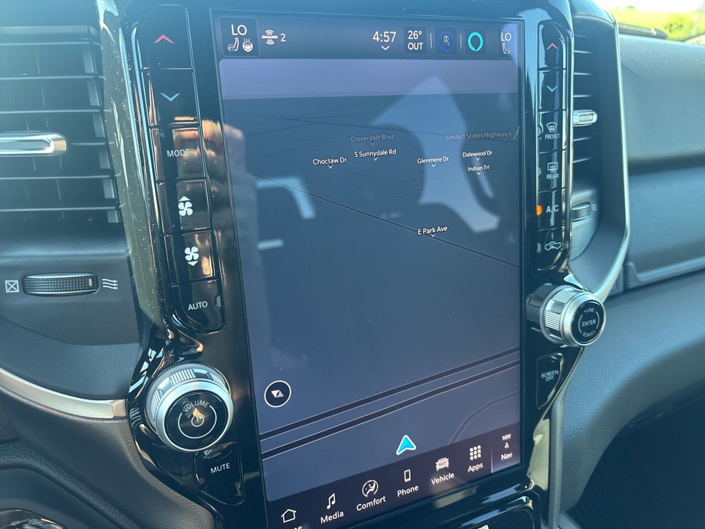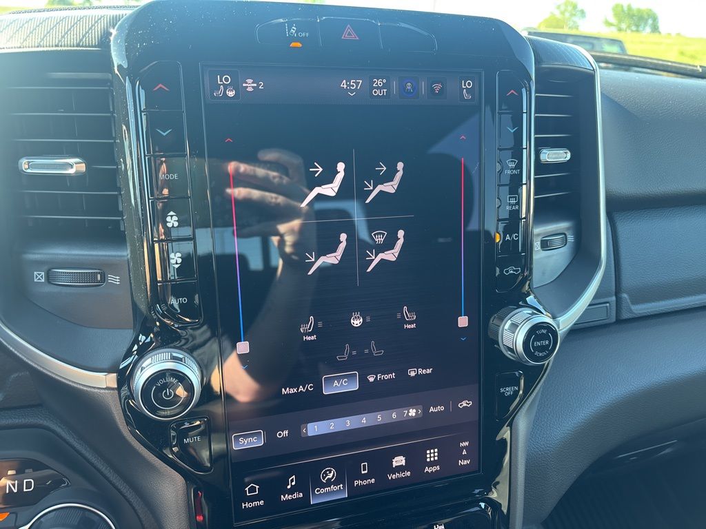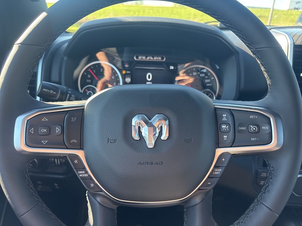 Pricing excludes tax, tag, license fees, dealers $129 doc fee, $1,995 in dealer addendum. See dealer for exact pricing. Some discounts require dealership to arrange financing, price not available with 0% or incentivized rates. See dealer for details. This 2026 Ram 1500 comes equipped with these features Big Horn Level 2 Equipment Group (115V Auxiliary Power Outlet, 115V Auxiliary Rear Power Outlet, 12" Touchscreen Display, 2nd Row in Floor Storage Bins, 3 Rear Seat Head Restraints, 4 Way Front Headrests, 400W Inverter, 4G LTE Wi-Fi Hot Spot, 9 Amplified Speakers with Subwoofer, Air Conditioning ATC with Dual Zone Control, Apple CarPlay, Auto Power-Folding Mirrors, Auto-Dimming Exterior Driver Mirror, Auto-Dimming Rear-View Mirror, Black Exterior Mirrors, Black Premium Power Mirrors, Body Color Fender Flares, Bucket Seats, Center Console Parts Module, Cluster 7.0" TFT Color Display, Configurable Drive Mode, Connected Travel and Traffic Services, Connectivity - US/Canada, Convex Wide-Angle Exterior Mirror Insert, Deluxe Cloth Bucket Seats, Disassociated Touchscreen Display, Exterior Mirrors Courtesy Lamps, Exterior Mirrors with Heating Element, Exterior Mirrors with Supplemental Signals, Front Seat Back Map Pockets, Full Length Floor Console, Global Telematics Box Module, Glove Box Lamp, Google Android Auto, GPS Antenna Input, GPS Navigation, HD Radio, Heated Front Seats, Heated Steering Wheel, Integrated Center Stack Radio, Integrated Voice Command with Bluetooth, Leather Wrapped Steering Wheel, LED Dome Lamp with on/Off Switch, LED Footwell Lighting, Manual Adjust 4-Way Front Passenger Seat, Media Hub with 2 Charge Only USBs, Overhead LED Lamps, Power 2-Way Driver Lumbar Adjust, Power Adjust 8-Way Driver Seat, Power Adjustable Pedals, Premium Overhead Console, Radio: Uconnect 5 Navigation with 12.0" Display, Rear 60/40 Folding Seat, Rear Center Armrest, Rear Power Sliding Window, Rear Window Defroster, Remote Tailgate Release, Security Alarm, SiriusXM Radio Service, SiriusXM with 360L, Steering Wheel Mounted Audio Controls, Sun Visors with Illuminated Vanity Mirrors, Universal Garage Door Opener, and USB Host Flip), Night Edition (Accent Color Door Handles, Accent Color Premium Power Mirrors, Accent Color Tailgate Handle, Anti-Spin Differential Rear Axle, Black Exterior Truck Badging, Black Headlamp Bezels, Black Interior Accents, Black Painted Exterior Mirrors Caps, Black Tail Lamp Bezels, Body Color Front Bumper, Body Color Rear Bumper with Step Pads, Dual Exhaust with Black Tips, Grille Black Surround Black Mesh, RAM Grille Badge - Black, and Wheels: 20" x 9.0" Aluminum Painted Clad), Quick Order Package 23Z Big Horn, Quick Order Package 27Z Big Horn, 33 Gallon Fuel Tank, 4-Wheel Disc Brakes, 48V Belt Starter Generator, 6 Speakers, ABS brakes, Air Conditioning, Alloy wheels, AM/FM radio, Apple CarPlay/Android Auto, Auto High-beam Headlights, Brake assist, Bumpers: chrome, Cloth Bucket Seats, Compass, Delay-off headlights, Dome Dual LED Reading Lamp, Driver door bin, Dual front impact airbags, Dual front side impact airbags, Dual-Pane Panoramic Sunroof, Electronic Stability Control, Front anti-roll bar, Front Bucket Seats, Front Center Armrest w/Storage, Front fog lights, Front License Plate Bracket, Front reading lights, Front wheel independent suspension, Fully automatic headlights, Heated door mirrors, Illuminated entry, Low tire pressure warning, Manual Adjust 4-Way Driver Seat, Manual Folding Exterior Mirrors, Manufacturer's Statement of Origin, MOPAR Front and Rear Rubber Floor Mats, MyFlexCare Service Plan, Occupant sensing airbag, Outside temperature display, Overhead airbag, Overhead console, Panic alarm, ParkView Rear Back-Up Camera, Passenger door bin, Passenger vanity mirror, Power door mirrors, Power steering, Power windows, Radio data system, Radio: Uconnect 5 W with 8.4" Display, RAM Grille Badge - Chrome, Rear anti-roll bar, Rear step bumper, Remote keyless entry, Speed control, Supplier Part Tracking (J-