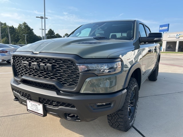 Classic CDJR in Texarkana is proud to offer this beautiful 2026 Ram 1500 in Canyon Lake. This 2026 Ram 1500 comes with the following features; Bed Utility Group (Exterior 115V AC Outlet, MOPAR 4 Adjustable Cargo Tie-Down Hooks, and MOPAR Spray In Bedliner), G/T Package (4 Way Front Headrests, Bucket Seats, Driver Seat Memory, Floor Console, Front Seat Back Map Pockets, G/T Decal, G/T Exhaust, GT Interior Theme, Heated Front Seats, Heated Second Row Seats, Heated Steering Wheel, Leather Wrapped Shift Knob, Leather-Wrapped Steering Wheel, Leather/Vinyl Bucket Seats, MOPAR Bright Pedal Kit, Performance Pages, Power 4-Way Driver Lumbar Adjust, Power 4-Way Passenger Lumbar Adjust, Power Adjust 8-Way Driver Seat, Power Adjust 8-Way Front Passenger Seat, Rear 60/40 Folding Split Recline Seat, Steering Wheel Mounted Shift Control, Under Seat Lighting, and Ventilated Front Seats), Quick Order Package 21W Rebel, Rebel Level 2 Equipment Group (115V Auxiliary Rear Power Outlet, 14.4" Touchscreen Display, 2-Door Passive Entry, Front Door Locks, 4G LTE Wi-Fi Hot Spot, Accent Color Door Handles, Accent Color Premium Power Mirrors, Accent Color Tailgate Handle, Apple CarPlay, Auto Power-Folding Mirrors, Auto-Dimming Exterior Driver Mirror, Black Painted Exterior Mirrors Caps, Connected Travel & Traffic Services, Connectivity - US/Canada, Convex Wide-Angle Exterior Mirror Insert, Disassociated Touchscreen Display, Dual Wireless Charging Pad, Exterior Mirrors Approach Lamps, Exterior Mirrors Courtesy Lamps, Exterior Mirrors w/Heating Element, Exterior Mirrors w/Memory, Exterior Mirrors w/Supplemental Signals, Front Passenger Interactive Display, Global Telematics Box Module (TBM), Google Android Auto, GPS Antenna Input, GPS Navigation, harman/kardon 19 Speaker Premium Sound, HD Radio, Integrated Center Stack Radio, Integrated Voice Command w/Bluetooth, Media Hub w/2 Charge Only USBs, Off-Road Information Pages, Power 2-Way Passenger Lumbar Adjust, Power Adjustable Pedals w/Memory, Power Tailgate, Proximity Approach/Departure Lamps, Radio: Uconnect 5 Nav w/14.4" Display, Radio/Driver Seat/Mirrors/Pedals Memory, Rain Sensitive Windshield Wipers, Rear Window Defroster, Security Alarm, SiriusXM Radio Service, SiriusXM w/360L, Smartphone As A Key Capable, and USB Host Flip), 10 Speakers, 3.92 Rear Axle Ratio, 33 Gallon Fuel Tank, 4-Wheel Disc Brakes, ABS brakes, Air Conditioning, Alloy wheels, AM/FM radio: SiriusXM with 360L, Apple CarPlay/Android Auto, Auto High-beam Headlights, Auto-dimming Rear-View mirror, Automatic temperature control, Black Exterior Mirrors, Brake assist, Cloth/Vinyl Bucket Seats, Compass, Delay-off headlights, Dome Dual LED Reading Lamp, Driver door bin, Driver vanity mirror, Dual front impact airbags, Dual front side impact airbags, Dual-Pane Panoramic Sunroof, Electronic Stability Control, Front anti-roll bar, Front Bucket Seats, Front Center Armrest w/Storage, Front dual zone A/C, Front fog lights, Front License Plate Bracket, Front reading lights, Front wheel independent suspension, Full Length Upgraded Floor Console, Fully automatic headlights, Garage door transmitter, Heated door mirrors, Heated front seats, Heated steering wheel, Illuminated entry, Leather steering wheel, Low tire pressure warning, Manual Folding Exterior Mirrors, Navigation System, Occupant sensing airbag, Outside temperature display, Overhead airbag, Overhead console, Panic alarm, ParkView Rear Back-Up Camera, Passenger door bin, Passenger vanity mirror, Power 2-Way Driver Lumbar Adjust, Power door mirrors, Power driver seat, Power steering, Power windows, Radio data system, Radio: Uconnect 5 Nav w/12.0" Display, Rear 60/40 Folding Seat, Rear anti-roll bar, Rear seat center armrest, Rear step bumper, Remote keyless entry, Speed control, Split folding rear seat, Steering wheel mounted audio controls, Tachometer, Telescoping steering wheel, Tilt steering wheel, Traction control, Trailer Brake Control, Trip computer, Variably intermittent wipers, Vo