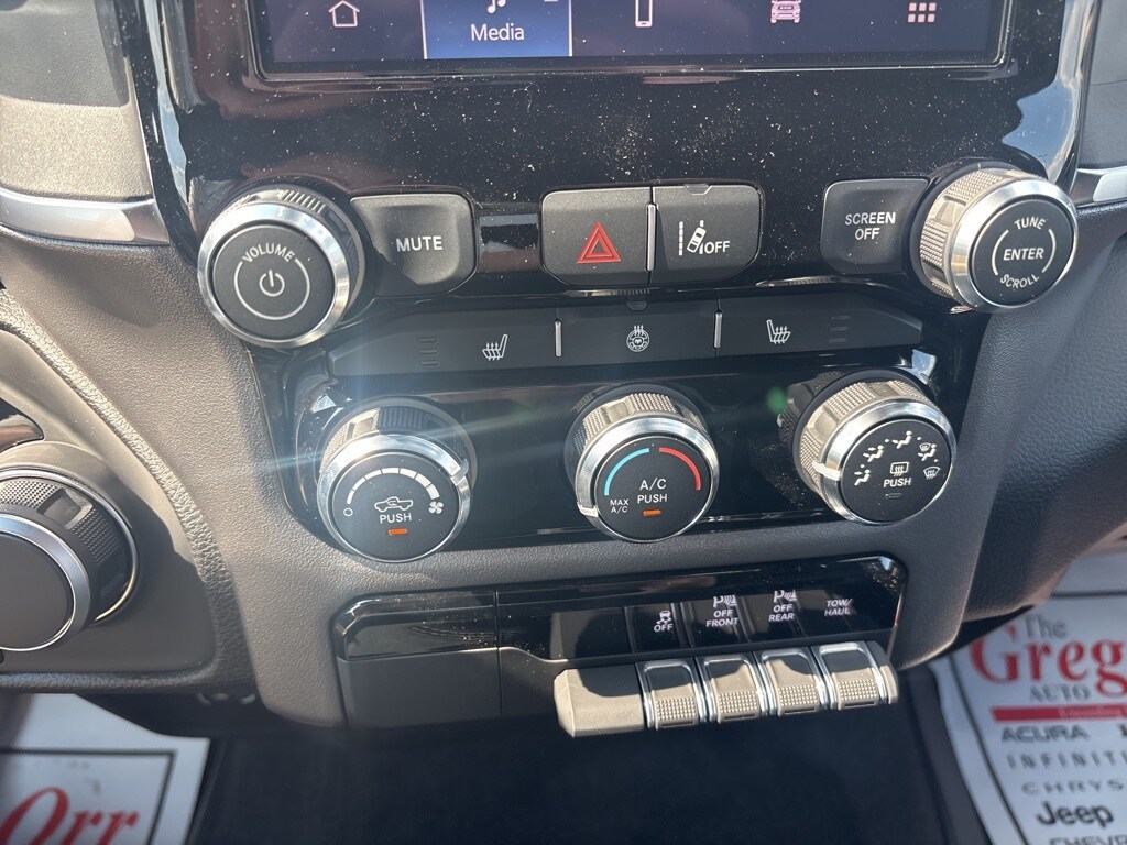 Pricing excludes tax, tag, license fees, dealers $129 doc fee, $1,995 in dealer addendum. See dealer for exact pricing. Some discounts require dealership to arrange financing, price not available with 0% or incentivized rates. See dealer for details. This 2026 Ram 1500 comes equipped with these features Big Horn Level 1 Equipment Group (115V Auxiliary Power Outlet, 2nd Row In Floor Storage Bins, 3 Rear Seat Head Restraints, 4 Way Front Headrests, 400W Inverter, Auto Power-Folding Mirrors, Auto-Dimming Exterior Driver Mirror, Auto-Dimming Rear-View Mirror, Black Exterior Mirrors, Black Premium Power Mirrors, Body Color Fender Flares, Bucket Seats, Center Console Parts Module, Convex Wide-Angle Exterior Mirror Insert, Deluxe Cloth Bucket Seats, Exterior Mirrors Courtesy Lamps, Exterior Mirrors w/Heating Element, Exterior Mirrors w/Supplemental Signals, Front Seat Back Map Pockets, Full Length Floor Console, Glove Box Lamp, Heated Front Seats, Heated Steering Wheel, Leather Wrapped Steering Wheel, Manual Adjust 4-Way Front Passenger Seat, Power 2-Way Driver Lumbar Adjust, Power Adjust 8-Way Driver Seat, Power Adjustable Pedals, Rear 60/40 Folding Seat, Rear Center Armrest, Rear Dome w/On/Off Switch Lamp, Rear Power Sliding Window, Rear Window Defroster, Secondary Active Grille Shutters, SiriusXM Radio Service, SiriusXM Satellite Radio, Steering Wheel Mounted Audio Controls, Sun Visors w/Illuminated Vanity Mirrors, and Universal Garage Door Opener), Quick Order Package 21Z Big Horn, 4-Wheel Disc Brakes, 48V Belt Starter Generator, 4G LTE Wi-Fi Hot Spot, 6 Speakers, ABS brakes, Air Conditioning, Alloy wheels, AM/FM radio, Apple CarPlay, Apple CarPlay/Android Auto, Auto High-beam Headlights, Brake assist, Bumpers: chrome, Cloth Bucket Seats, Compass, Connectivity - US/Canada, Delay-off headlights, Driver door bin, Dual front impact airbags, Dual front side impact airbags, Electronic Stability Control, Front anti-roll bar, Front Bucket Seats, Front Center Armrest w/Storage, Front fog lights, Front reading lights, Front wheel independent suspension, Fully automatic headlights, Global Telematics Box Module (TBM), Google Android Auto, GPS Antenna Input, Heated door mirrors, Illuminated entry, Integrated Center Stack Radio, Integrated Voice Command w/Bluetooth, Low tire pressure warning, Manual Adjust 4-Way Driver Seat, Manual Folding Exterior Mirrors, Manufacturer's Statement of Origin, MOPAR Front & Rear Rubber Floor Mats, Occupant sensing airbag, Outside temperature display, Overhead airbag, Overhead console, Panic alarm, ParkView Rear Back-Up Camera, Passenger door bin, Passenger vanity mirror, Power door mirrors, Power steering, Power windows, Radio data system, Radio: Uconnect 5 W w/8.4" Display, RAM Grille Badge - Chrome, Rear anti-roll bar, Rear step bumper, Rear Wheelhouse Liners, Remote keyless entry, Speed control, Supplier Part Tracking (J-1), Tachometer, Telescoping steering wheel, Tilt steering wheel, Traction control, Trip computer, USB Host Flip, Variably intermittent wipers, Voltmeter, Wheels: 18" x 8" Cast-Aluminum Painted, and Wheels: 20" x 9" Aluminum Chrome Clad.