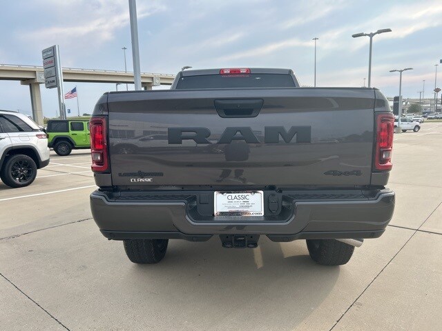 Classic CDJR in Texarkana is proud to offer this good-looking 2026 Ram 2500 in Granite Crystal Metallic Clearcoat. This 2026 Ram 2500 comes with the following features; Big Horn Level 1 Plus Equipment Group (12" Touchscreen Display, 2 Way Rear Headrest Seat, 2nd Row In Floor Storage Bins, 4 Way Front Headrests, 40/20/40 Split Bench Seat, 4G LTE Wi-Fi Hot Spot, 9 Alpine Speakers w/Subwoofer, Air Conditioning ATC w/Dual Zone Control, Alexa Built-In, Anti-Spin Differential Rear Axle, Apple CarPlay, Auto Power-Folding Mirrors, Auto-Dimming Rear-View Mirror, Black Exterior Mirrors, Connected Travel & Traffic Services, Connectivity - US/Canada, Disassociated Touchscreen Display, Dual Glove Boxes, Emergency Vehicle Alert System (EVAS), Exterior Mirrors Courtesy Lamps, Exterior Mirrors w/Heating Element, Exterior Mirrors w/Supplemental Signals, Foam Bottle Insert (Door Trim Panel), Folding Flat Load Floor Storage, Footwell Courtesy Lamp, For Details, Visit DriveUconnect.com, For More Info, Call 800-643-2112, Forward & Reverse Utility Lights, Front Armrest w/Cupholders, Front Center Seat Cushion Storage, Front Seat Back Map Pockets, Global Telematics Box Module (TBM), Glove Box Lamp, Google Android Auto, GPS Antenna Input, GPS Navigation, HD Radio, Integrated Voice Command w/Bluetooth, LED Bed Lighting, Locking Lower Glove Box, Luxury Steering Wheel, Manual Adjust 4-Way Front Passenger Seat, Mirror Running Lights, MOPAR Deployable Bed Step, MOPAR Spray In Bedliner, Off-Road Info Pages, Power 2-Way Driver Lumbar Adjust, Power Adjust 8-Way Driver Seat, Power Adjust Mirrors, Power Heated Folding Telescopic Mirrors, Power Telescoping Mirrors, Power-Adjustable Convex Aux Mirrors, Premium Cloth 40/20/40 Bench Seat, Radio: Uconnect 5 Nav w/12.0" Display, Rear 60/40 Folding Seat, Rear Dome w/On/Off Switch Lamp, Remote Start System, Remote USB Port - Charge Only, Selectable Tire Fill Alert, SiriusXM Radio Service, SiriusXM w/360L, Steering Wheel Mounted Audio Controls, Storage Tray, and Trailer Tow Pages), Heated Seats & Wheel Group (Heated Front Seats and Heated Steering Wheel), Night Edition (Black Exterior Truck Badging, Black Interior Accents, Black Wheel Center Hub, Body Color Grille-Surround, Gloss Black Nostrils/Mic Black Grille, Painted Front Bumper, Painted Rear Bumper, and Wheels: 20" x 8.0" Black Painted Aluminum), Quick Order Package 2UY Lone Star (Regional) (Lone Star Badge), 3.73 Axle Ratio, 4-Wheel Disc Brakes, 5th Wheel/Gooseneck Towing Prep Group, 6 Speakers, ABS brakes, Air Conditioning, Alloy wheels, AM/FM radio: SiriusXM, Apple CarPlay/Android Auto, Brake assist, Bumpers: chrome, Center Hub, Clearance Lamps, Cloth 40/20/40 Bench Seat, Compass, Delay-off headlights, Driver door bin, Dual front impact airbags, Dual front side impact airbags, Electronic Stability Control, Front anti-roll bar, Front Center Armrest w/Storage, Front fog lights, Front License Plate Bracket, Front reading lights, Fully automatic headlights, Heated door mirrors, Illuminated entry, Low tire pressure warning, Manual Adjust 4-Way Driver Seat, MOPAR Front & Rear Rubber Floor Mats, MyFlexCare Service Plan, Occupant sensing airbag, Outside temperature display, Overhead airbag, Overhead console, Painted Flat Wheel-to-Wheel Side Steps, Panic alarm, ParkView Rear Back-Up Camera, Passenger door bin, Passenger vanity mirror, Power door mirrors, Power steering, Power windows, Radio data system, Radio: Uconnect 5 w/8.4" Display, Rear anti-roll bar, Rear Folding Seat, Rear seat center armrest, Rear step bumper, Rear window defroster, Remote keyless entry, Security system, Speed control, Tachometer, Tilt steering wheel, Traction control, Trip computer, Turn signal indicator mirrors, Variably intermittent wipers, Voltmeter, and Wheels: 18" x 8.0" Polished AluminuM.