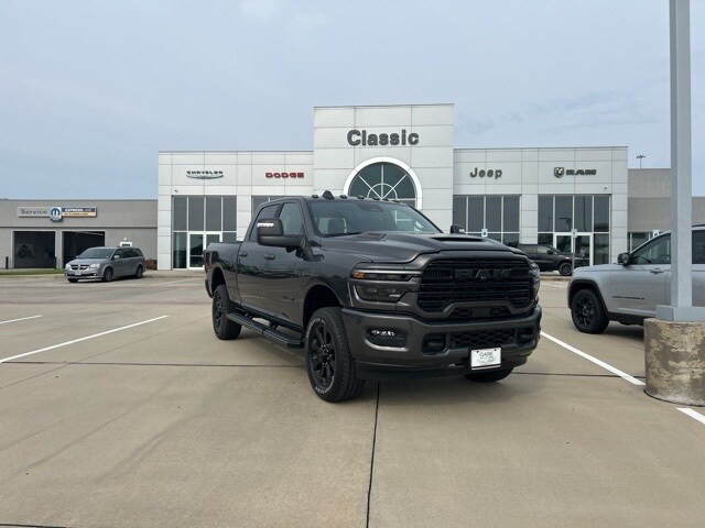 Classic CDJR in Texarkana is proud to offer this good-looking 2026 Ram 2500 in Granite. This 2026 Ram 2500 comes with the following features; Laramie Level 1 Plus Equipment Group (#1 Seat Foam Cushion, 115V Auxiliary Rear Power Outlet, 2 Way Rear Headrest Seat, 2nd Row In Floor Storage Bins, 4 Way Front Headrests, Active Lane Management System, Adaptive Steering System, Anti-Spin Differential Rear Axle, Auto Adjust In Reverse Exterior Mirrors, Auto Dim Exterior Mirror, Auto High Beam Headlamp Control, Auto Power-Folding Mirrors, Auto-Dimming Exterior Passenger Mirror, Bucket Seats, Chrome Exterior Mirrors, CTR Stop Lamp w/Cargo View Camera, Drowsy Driver Detection, Dual Wireless Charging Pad, Exterior Mirrors Courtesy Lamps, Exterior Mirrors w/Heating Element, Exterior Mirrors w/Memory, Exterior Mirrors w/Supplemental Signals, Foam Bottle Insert (Door Trim Panel), Folding Flat Load Floor Storage, Forward & Reverse Utility Lights, Front Seat Back Map Pockets, Full Length Upgraded Floor Console, Heated Front Seats, Heated Second Row Seats, Heated Steering Wheel, High Back Seats, Leather Trimmed Bucket Seats, LED Bed Lighting, Mirror Running Lights, MOPAR Deployable Bed Step, MOPAR Spray In Bedliner, Power 2-Way Driver Lumbar Adjust, Power 2-Way Passenger Lumbar Adjust, Power Adjust 8-Way Driver Seat, Power Adjust 8-Way Front Passenger Seat, Power Adjust Mirrors, Power Adjustable Pedals w/Memory, Power Heated Fold Telescopic Mirrors w/Memory, Power Telescoping Mirrors, Power-Adjustable Convex Aux Mirrors, Radio/Driver Seat/Mirrors/Pedals Memory, Rain Sensitive Windshield Wipers, Rear 60/40 Folding Seat, Remote Tailgate Release, Traffic Sign Recognition, and Ventilated Front Seats), Night Edition (Black Exterior Mirrors, Black Exterior Truck Badging, Black Wheel Center Hub, Body Color Grille-Surround, Gloss Black Grille Billets/Accents, Sport Performance Hood, and Wheels: 20" x 8.0" Black Painted Aluminum), Quick Order Package 2UH Laramie, Towing Technology Group (Surround View Camera System, Trailer Reverse Guidance, and Trailer Tire Pressure Monitoring System), 10 Speakers, 3.73 Axle Ratio, 4-Wheel Disc Brakes, 4G LTE Wi-Fi Hot Spot, 5th Wheel/Gooseneck Towing Prep Group, ABS brakes, Air Conditioning, Alexa Built-In, Alloy wheels, AM/FM radio: SiriusXM with 360L, Apple CarPlay, Apple CarPlay/Android Auto, Auto-dimming Rear-View mirror, Automatic temperature control, Brake assist, Bumpers: body-color, Clearance Lamps, Compass, Connected Travel & Traffic Services, Connectivity - US/Canada, Delay-off headlights, Disassociated Touchscreen Display, Driver door bin, Driver vanity mirror, Dual front impact airbags, Dual front side impact airbags, Electronic Stability Control, Emergency Vehicle Alert System (EVAS), For Details, Visit DriveUconnect.com, For More Info, Call 800-643-2112, Front anti-roll bar, Front Center Armrest w/Storage, Front dual zone A/C, Front fog lights, Front License Plate Bracket, Front reading lights, Fully automatic headlights, Garage door transmitter, Global Telematics Box Module (TBM), Google Android Auto, GPS Antenna Input, GPS Navigation, HD Radio, Heated door mirrors, Heated front seats, Heated steering wheel, Illuminated entry, Integrated Voice Command w/Bluetooth, Leather Trim 40/20/40 Bench Seat, Low tire pressure warning, Navigation System, Occupant sensing airbag, Off-Road Info Pages, Outside temperature display, Overhead airbag, Overhead console, Painted Flat Wheel-to-Wheel Side Steps, Panic alarm, ParkView Rear Back-Up Camera, Passenger door bin, Passenger vanity mirror, Power door mirrors, Power driver seat, Power passenger seat, Power steering, Power windows, Radio data system, Radio: Uconnect 5 Nav w/12.0" Display, Rear anti-roll bar, Rear reading lights, Rear seat center armrest, Rear step bumper, Rear window defroster, Remote keyless entry, Security system, Selectable Tire Fill Alert, SiriusXM Radio Service, SiriusXM w/360L, Speed control, Split folding rear seat, Steering wheel mounted aud