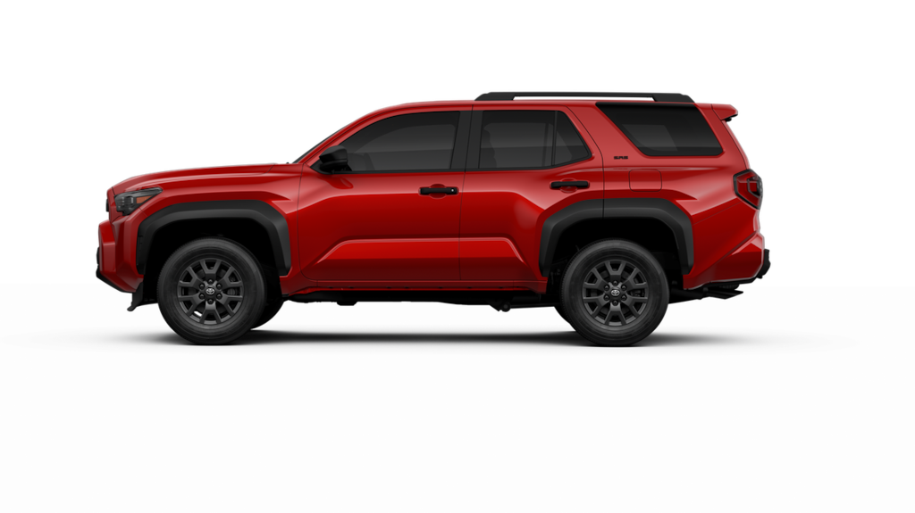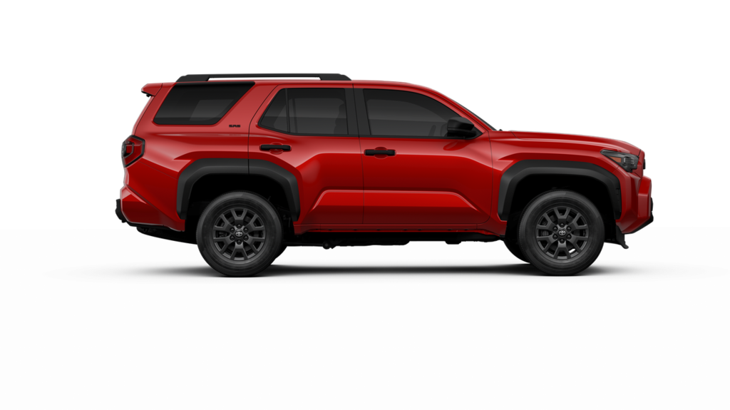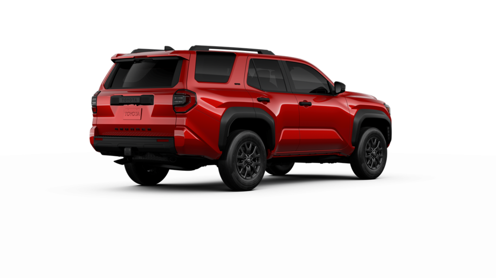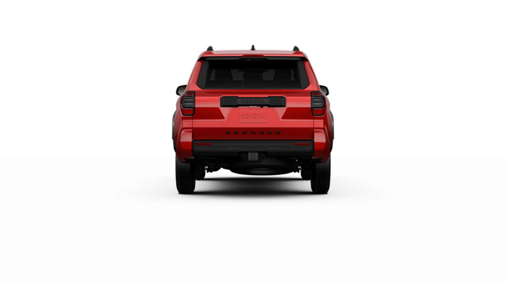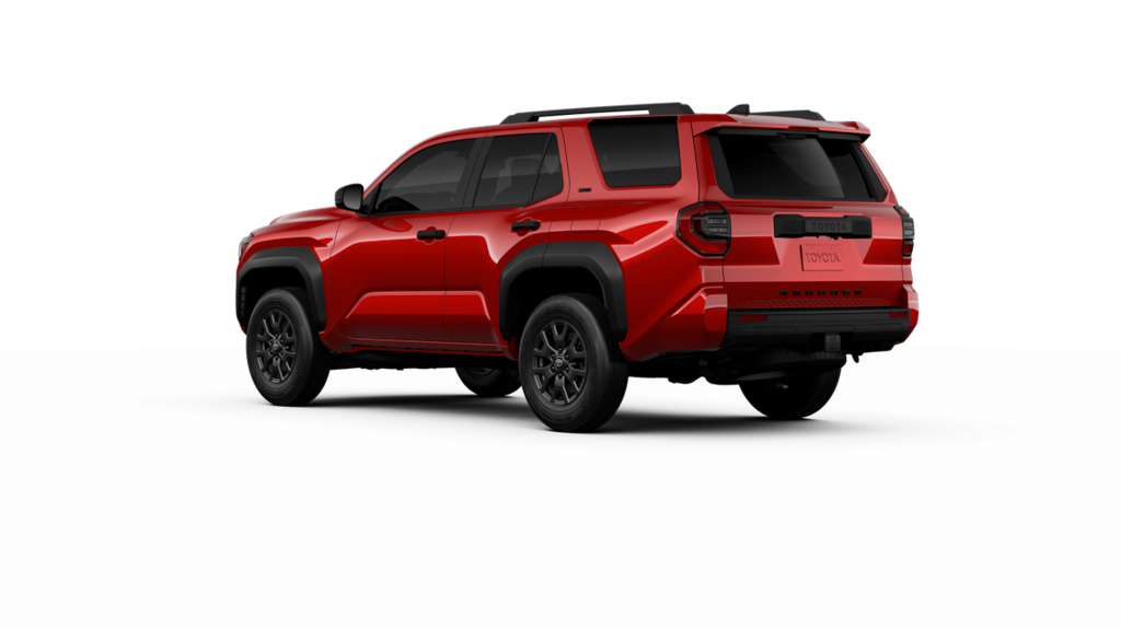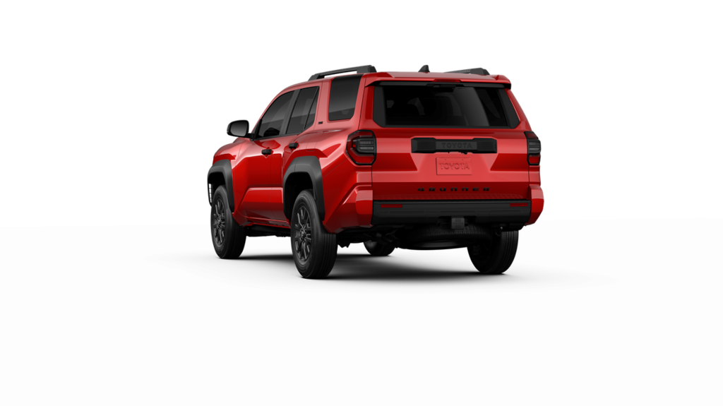 - Black horizontal-bar grille, mirror caps, door handles, and overfenders color-keyed rear spoiler black 'SR5' and '4RUNNER' badges