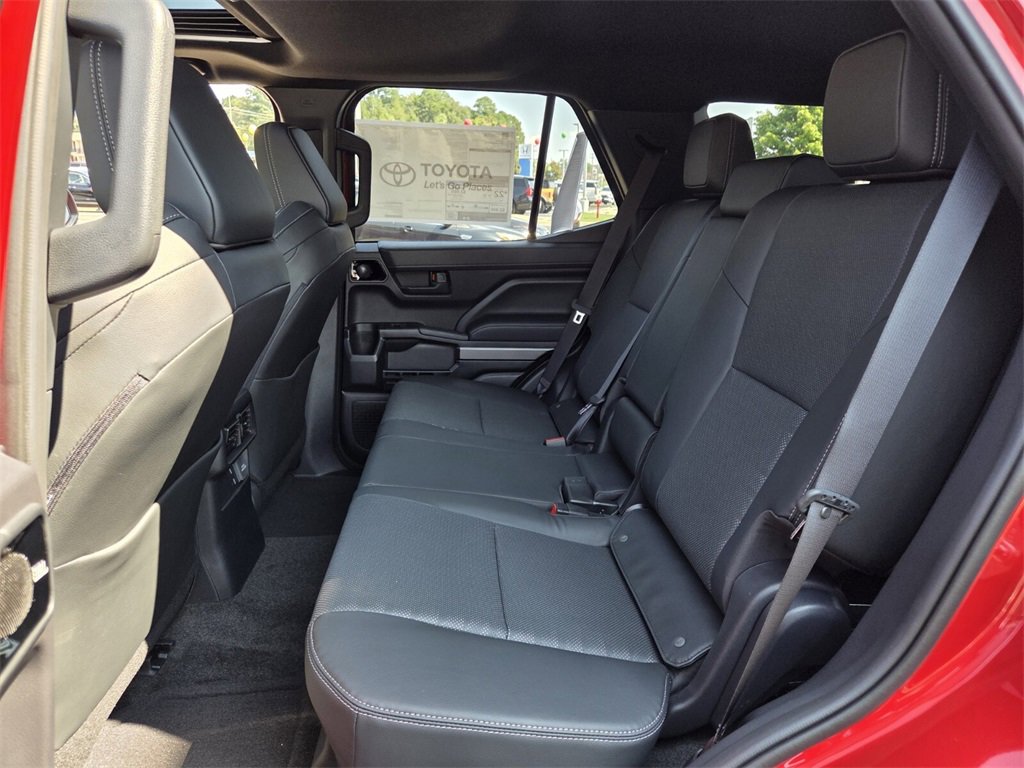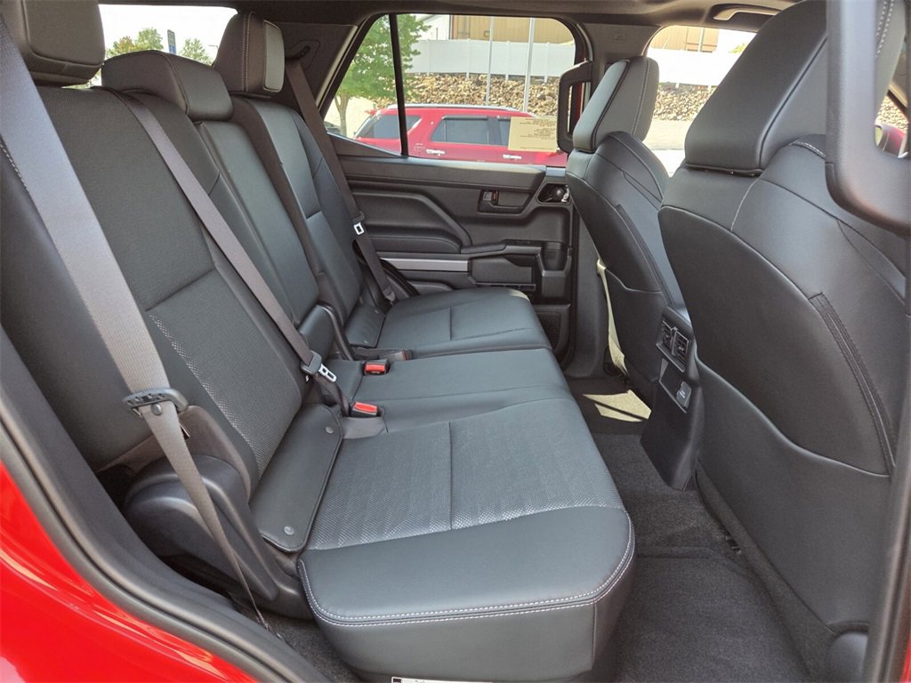 Red This 2025 Toyota 4Runner comes equipped with, 20 Artificial Leather, 15 Speakers, 4-Wheel Disc Brakes, ABS brakes, Air Conditioning, Alloy wheels, AM/FM radio: SiriusXM, Anti-whiplash front head restraints, Apple CarPlay/Android Auto, Auto High-beam Headlights, Automatic temperature control, Brake assist, Bumpers: body-color, Driver door bin, Driver vanity mirror, Dual front impact airbags, Dual front side impact airbags, Electronic Stability Control, Emergency communication system: Safety Connect (1-year trial), Exterior Parking Camera Rear, Front anti-roll bar, Front Bucket Seats, Front Center Armrest, Front dual zone A/C, Front fog lights, Front reading lights, Front wheel independent suspension, Heated & Ventilated Front Bucket Seats, Heated door mirrors, Heated front seats, Illuminated entry, Intelligent Inside Rear View Mirror, Interior D-Pillar Cargo Lights (TMS), Knee airbag, Leather Shift Knob, Leather steering wheel, Low tire pressure warning, Memory seat, Moonroof, Navigation System, Occupant sensing airbag, Outside temperature display, Overhead airbag, Overhead console, Panic alarm, Passenger door bin, Passenger vanity mirror, Power door mirrors, Power driver seat, Power passenger seat, Power steering, Power windows, Radio: 14" Audio, Rear anti-roll bar, Rear seat center armrest, Rear side impact airbag, Rear window defroster, Rear window wiper, Remote keyless entry, Security system, SofTex Seat Trim, Speed control, Speed-sensing steering, Split folding rear seat, Spoiler, Steering wheel mounted audio controls, Tachometer, Telescoping steering wheel, Tilt steering wheel, Traction control, TRD Cast Aluminum Black Side Steps (TMS), TRD Sport Premium, Trip computer, Variably intermittent wipers, Ventilated front seats, Wheels: 20" Dark-Gray Painted Alloy, 20 Artificial Leather. 20/26 City/Highway MPG