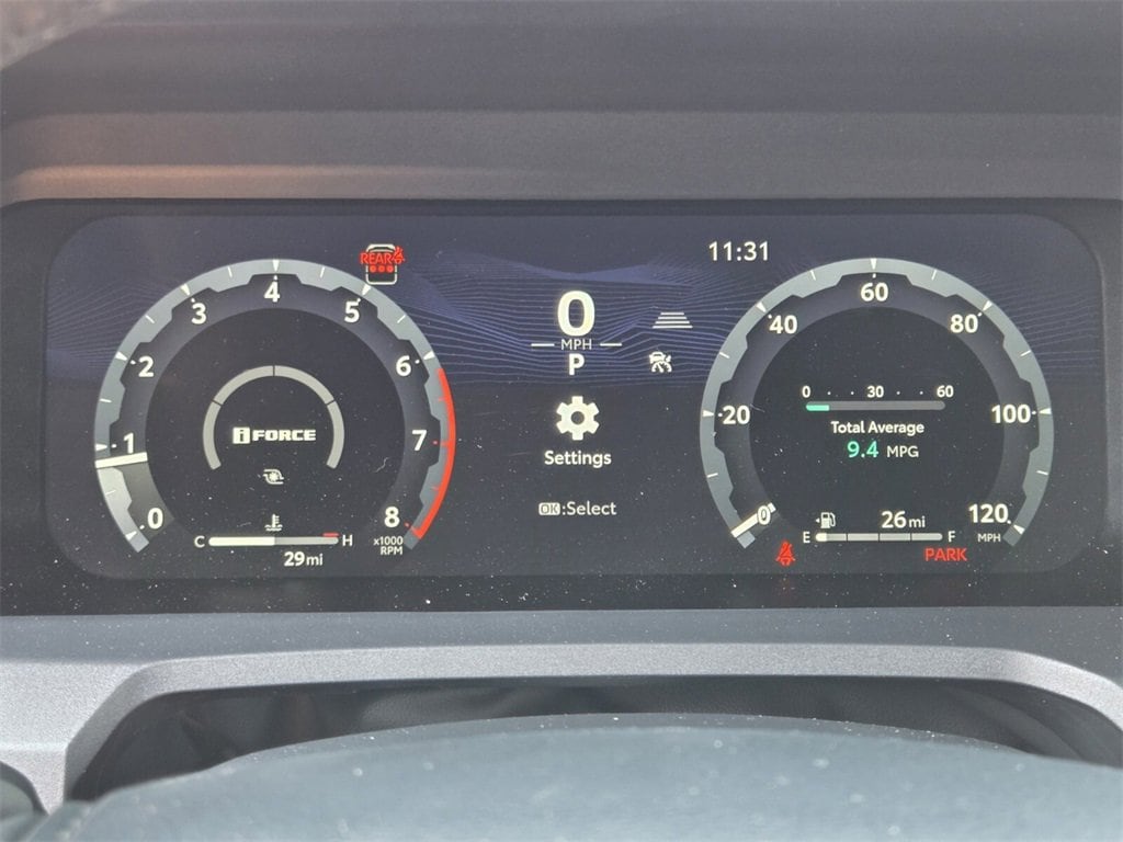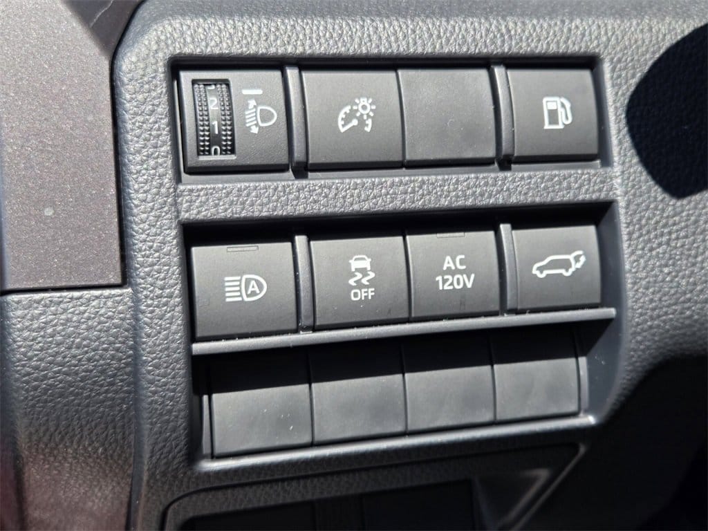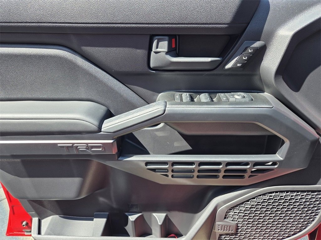 Included Features: TRD Sport Premium, 20 Artificial Leather, 15 Speakers, 4-Wheel Disc Brakes, ABS brakes, Air Conditioning, Alloy wheels, AM/FM radio: SiriusXM, Anti-whiplash front head restraints, Apple CarPlay/Android Auto, Auto High-beam Headlights, Automatic temperature control, Brake assist, Bumpers: body-color, Driver door bin, Driver vanity mirror, Dual front impact airbags, Dual front side impact airbags, Electronic Stability Control, Emergency communication system: Safety Connect (1-year trial), Exterior Parking Camera Rear, Front anti-roll bar, Front Bucket Seats, Front Center Armrest, Front dual zone A/C, Front fog lights, Front reading lights, Front wheel independent suspension, Heated & Ventilated Front Bucket Seats, Heated door mirrors, Heated front seats, Illuminated entry, Intelligent Inside Rear View Mirror, Interior D-Pillar Cargo Lights (TMS), Knee airbag, Leather Shift Knob, Leather steering wheel, Low tire pressure warning, Memory seat, Moonroof, Navigation System, Occupant sensing airbag, Outside temperature display, Overhead airbag, Overhead console, Panic alarm, Passenger door bin, Passenger vanity mirror, Power door mirrors, Power driver seat, Power passenger seat, Power steering, Power windows, Radio: 14" Audio, Rear anti-roll bar, Rear seat center armrest, Rear side impact airbag, Rear window defroster, Rear window wiper, Remote keyless entry, Security system, SofTex Seat Trim, Speed control, Speed-sensing steering, Split folding rear seat, Spoiler, Steering wheel mounted audio controls, Tachometer, Telescoping steering wheel, Tilt steering wheel, Traction control, TRD Cast Aluminum Black Side Steps (TMS), Trip computer, Variably intermittent wipers, Ventilated front seats, and Wheels: 20" Dark-Gray Painted Alloy.
