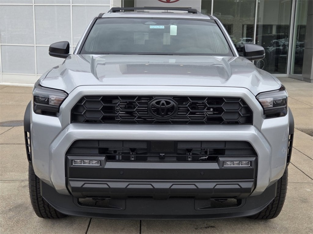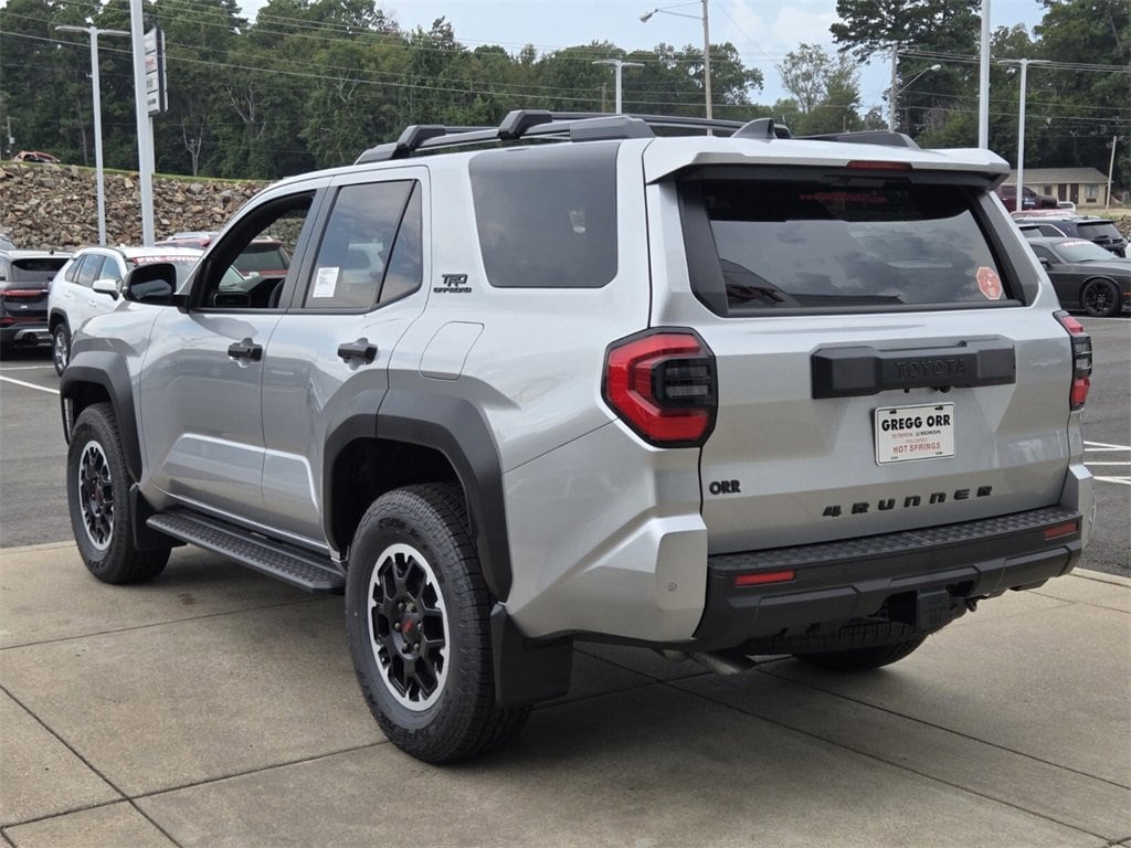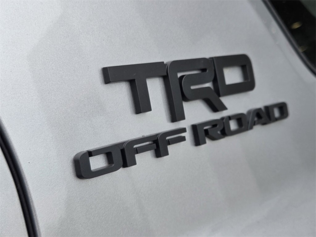 - Black honeycomb-style grille, mirror caps, door handles, and overfenders color-keyed rear spoiler black 'TRD OFF ROAD' and '4RUNNER' badges