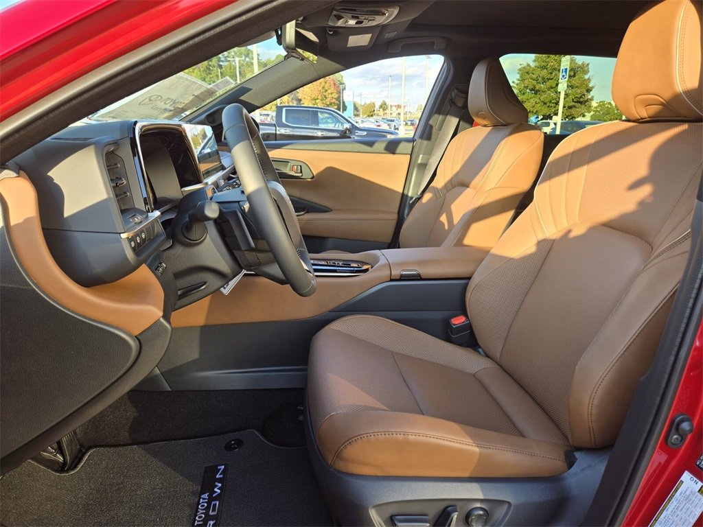 Red This 2025 Toyota Crown Signia comes equipped with, 11 Speakers, 4-Wheel Disc Brakes, ABS brakes, Advanced Technology Package, Air Conditioning, Alloy wheels, AM/FM radio: SiriusXM, Apple CarPlay/Android Auto, Auto High-beam Headlights, Auto-dimming Rear-View mirror, Automatic temperature control, Brake assist, Bumpers: body-color, Compass, Delay-off headlights, Driver door bin, Driver Support Package, Driver vanity mirror, Dual front impact airbags, Dual front side impact airbags, Electronic Stability Control, Emergency communication system: Safety Connect (up to 10-year trial subscription), Exterior Parking Camera Rear, Four wheel independent suspension, Front anti-roll bar, Front Bucket Seats, Front Center Armrest, Front dual zone A/C, Front reading lights, Fully automatic headlights, Garage door transmitter: HomeLink, Headlight cleaning, Heated & Ventilated Front Bucket Seats, Heated door mirrors, Heated front seats, Heated rear seats, Heated steering wheel, Illuminated entry, Knee airbag, Leather Shift Knob, Leather steering wheel, Leather-Trimmed Seat Trim, Low tire pressure warning, Memory seat, Navigation system: Dynamic Navigation (3-year trial), Occupant sensing airbag, Outside temperature display, Overhead airbag, Overhead console, Panic alarm, Passenger door bin, Passenger vanity mirror, Peripheral Monitor Camera, Power door mirrors, Power driver seat, Power Liftgate, Power passenger seat, Power steering, Power windows, Pre Collision System, Radio data system, Radio: Toyota Audio Multimedia, Rain sensing wipers, Rear anti-roll bar, Rear reading lights, Rear seat center armrest, Rear Side Monitor, Rear window defroster, Rear window wiper, Remote keyless entry, Security system, Speed control, Speed-sensing steering, Split folding rear seat, Spoiler, Steering wheel mounted audio controls, Tachometer, Telescoping steering wheel, Tilt steering wheel, Traction control, Trip computer, Turn signal indicator mirrors, Variably intermittent wipers, Ventilated front seats, Wheels: 8.5 x 21" 7-Spoke Dark Gray Metallic Alloy. 39/37 City/Highway MPG