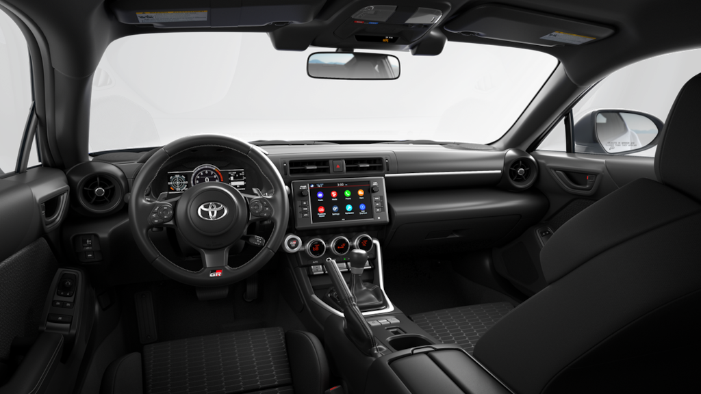 - GR86 Audio includes 8-in. touchscreen, six speakers, Apple CarPlay(R) Android Auto compatibility, SiriusXM(R) 3-month trial subscription. See toyota.com/audio-multimedia for details.