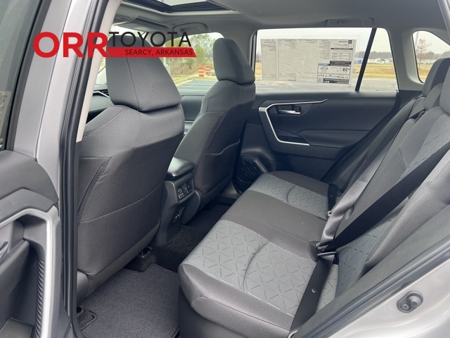 Silver Sky Metallic 2025 Toyota RAV4 Hybrid XLE AWD eCVT 2.5L 4-Cylinder This RAV4 Hybrid XLE is nicely equipped with Convenience Package (Front Door Smart Key System w/Push Button Start and Tilt & Slide Moon Roof), 2.5L 4-Cylinder, 4-Wheel Disc Brakes, 6 Speakers, ABS brakes, Air Conditioning, Alloy wheels, AM/FM radio: SiriusXM, Auto High-beam Headlights, Automatic temperature control, Brake assist, Bumpers: body-color, Delay-off headlights, Driver door bin, Driver vanity mirror, Dual front impact airbags, Dual front side impact airbags, Electronic Stability Control, Emergency communication system: Safety Connect (1-year trial), Exterior Parking Camera Rear, Fabric Seat Trim, Four wheel independent suspension, Front anti-roll bar, Front Bucket Seats, Front Center Armrest, Front dual zone A/C, Front reading lights, Fully automatic headlights, Heated door mirrors, Illuminated entry, Knee airbag, Low tire pressure warning, Occupant sensing airbag, Outside temperature display, Overhead airbag, Overhead console, Panic alarm, Passenger door bin, Passenger vanity mirror, Power door mirrors, Power driver seat, Power steering, Power windows, Radio data system, Radio: AM/FM/XM Audio System, Rear anti-roll bar, Rear seat center armrest, Rear window defroster, Rear window wiper, Remote keyless entry, Speed control, Speed-sensing steering, Split folding rear seat, Spoiler, Steering wheel mounted audio controls, Telescoping steering wheel, Tilt steering wheel, Traction control, Trip computer, Turn signal indicator mirrors, Variably intermittent wipers, and Wheels: 17" x 7.0J Silver Aluminum Alloy. 2.5L 4-Cylinder.
