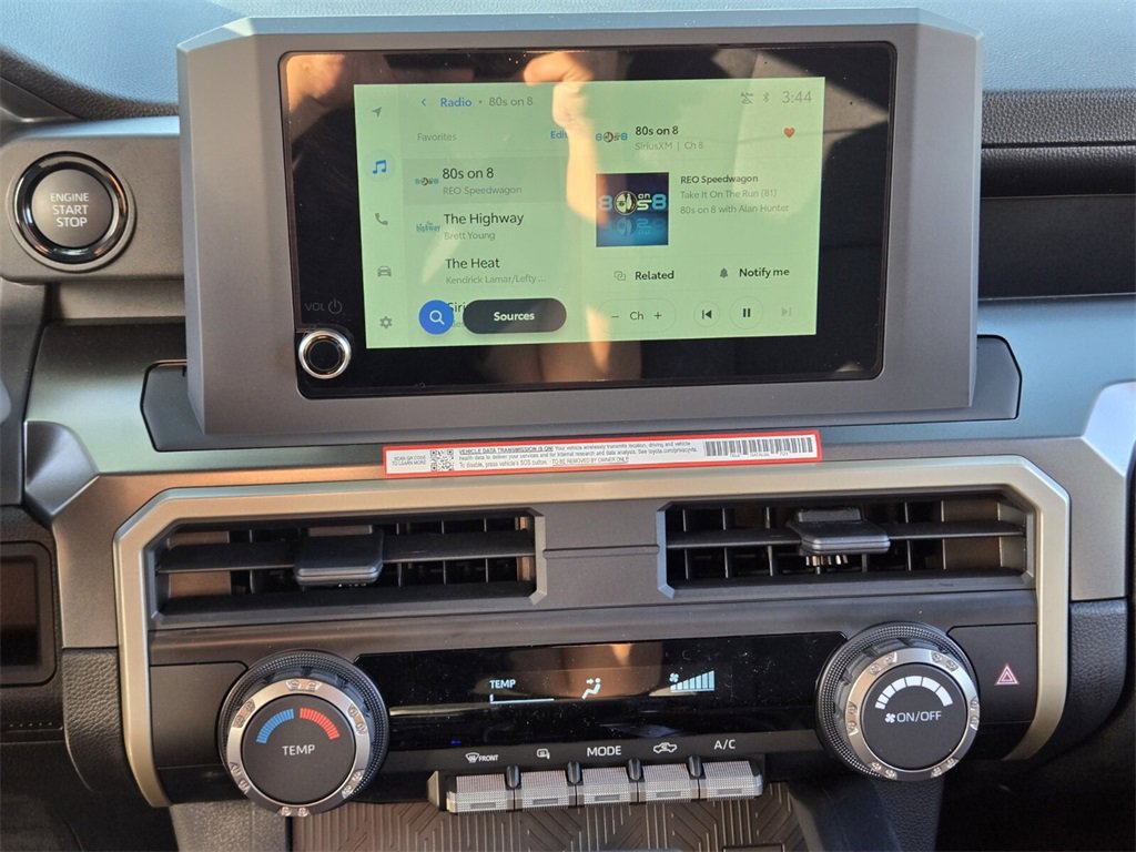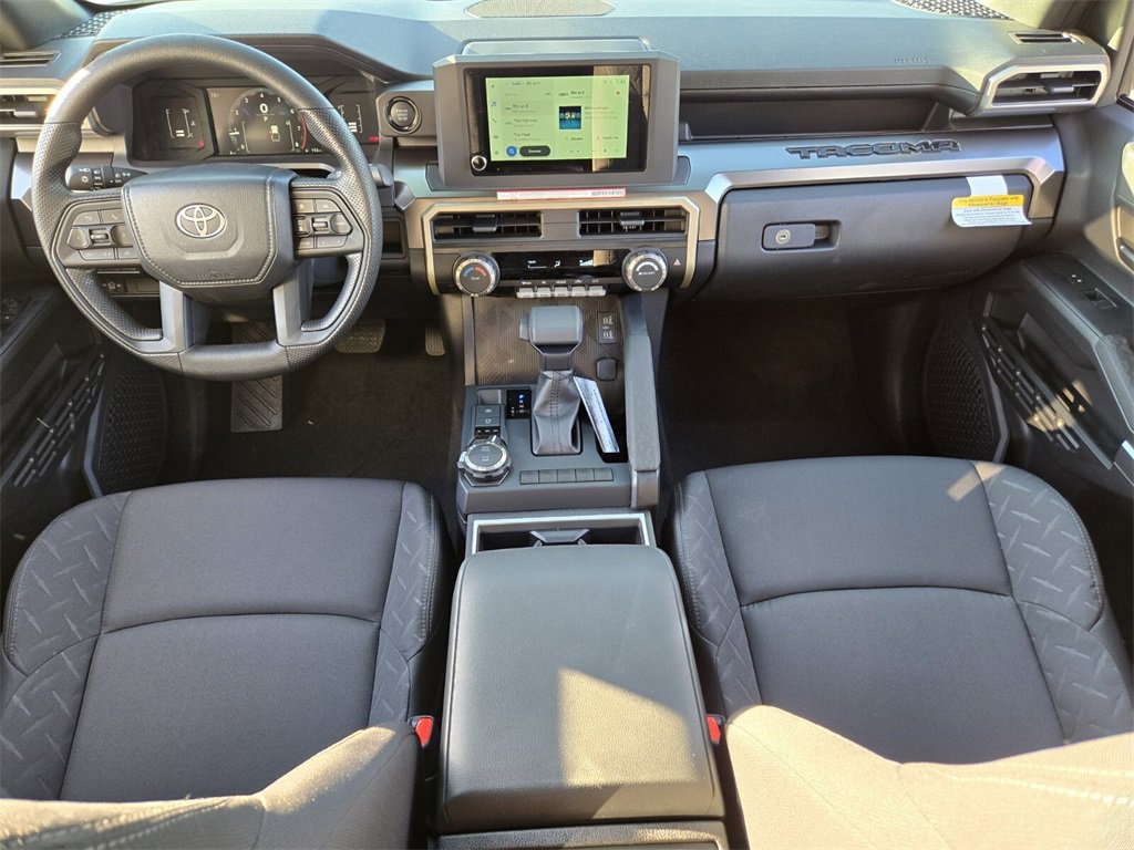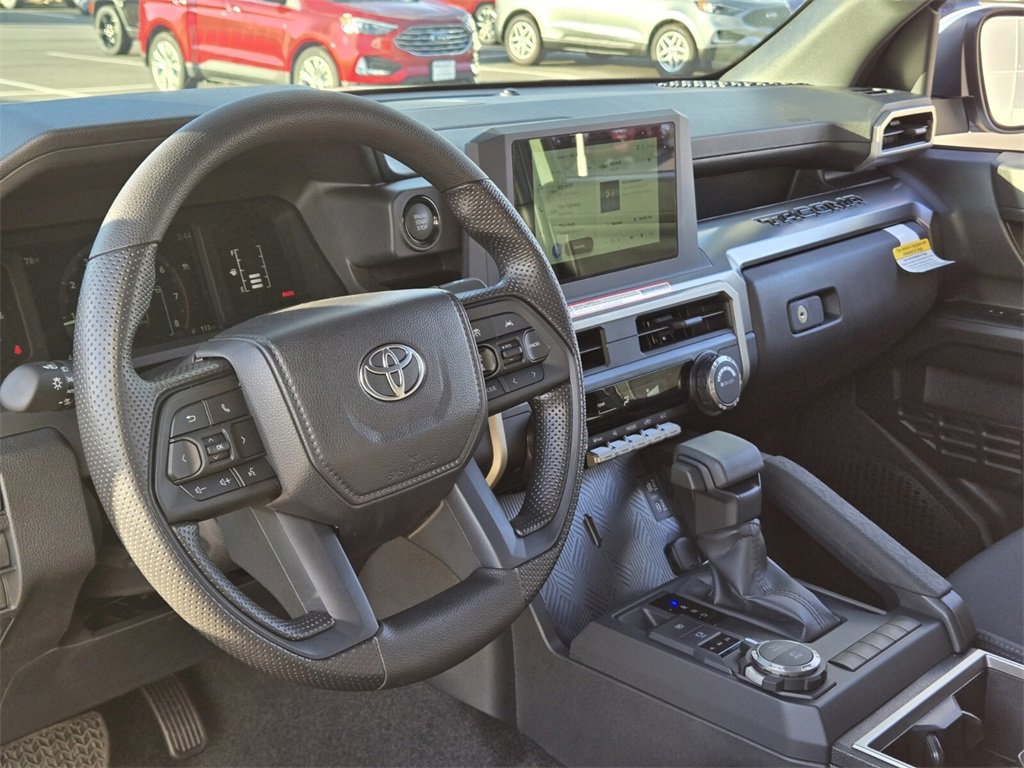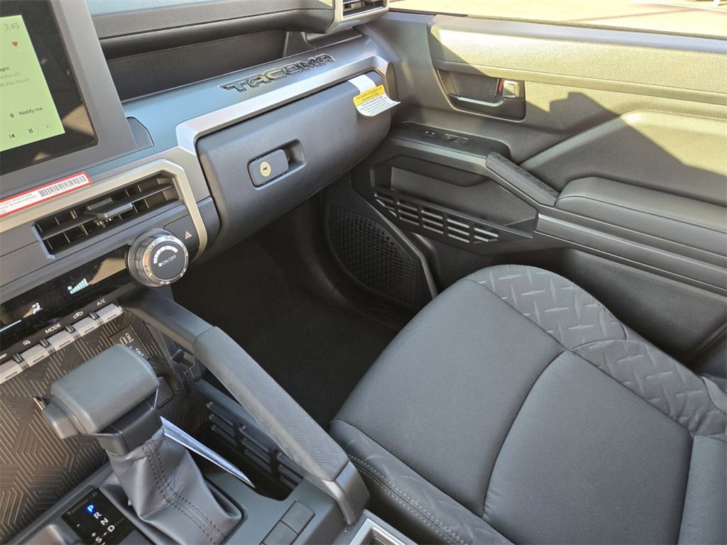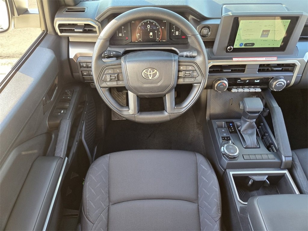 Ice This 2025 Toyota Tacoma comes equipped with, 4WD, 3.583 Axle Ratio, 4-Wheel Disc Brakes, 6 Speakers, ABS brakes, Air Conditioning, Alloy wheels, AM/FM radio: SiriusXM, Anti-whiplash front head restraints, Apple CarPlay/Android Auto, Auto High-beam Headlights, Auto-dimming Rear-View mirror, Brake assist, Bumpers: body-color, Driver door bin, Dual front impact airbags, Dual front side impact airbags, Electronic Stability Control, Emergency communication system: Safety Connect (1-year trial), Exterior Parking Camera Rear, Fabric Seat Trim, Four wheel independent suspension, Front anti-roll bar, Front Bucket Seats, Front Center Armrest, Front fog lights, Front reading lights, Fully automatic headlights, Heated door mirrors, Illuminated entry, JBL Premium Audio, Knee airbag, Low tire pressure warning, Occupant sensing airbag, Outside temperature display, Overhead airbag, Overhead console, Panic alarm, Passenger door bin, Power door mirrors, Power steering, Power windows, Radio: 8" Toyota Audio Multimedia, Rear step bumper, Rear window defroster, Remote keyless entry, Speed control, Speed-sensing steering, Split folding rear seat, Spray-On Bed Liner (TMS), Steering wheel mounted audio controls, Tachometer, Telescoping steering wheel, Tilt steering wheel, Traction control, Trip computer, Variably intermittent wipers, Wheels: 17" Styled Alloy, 4WD.