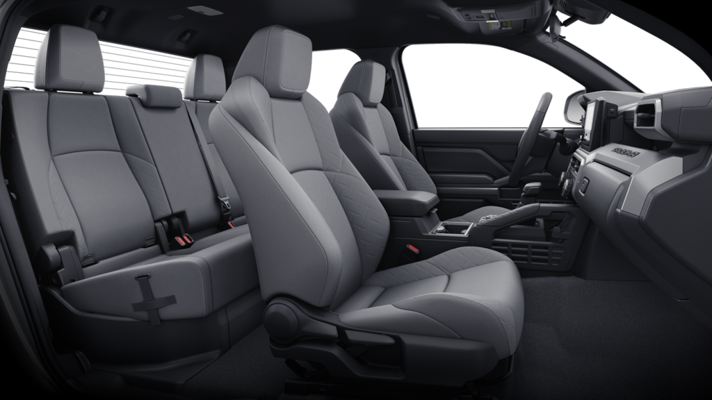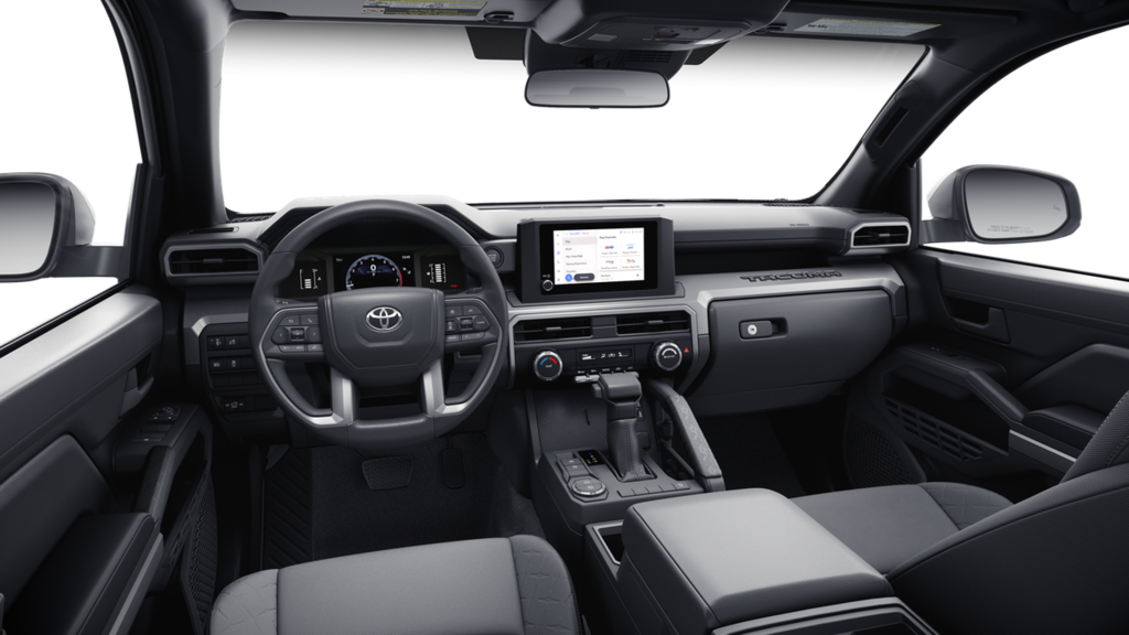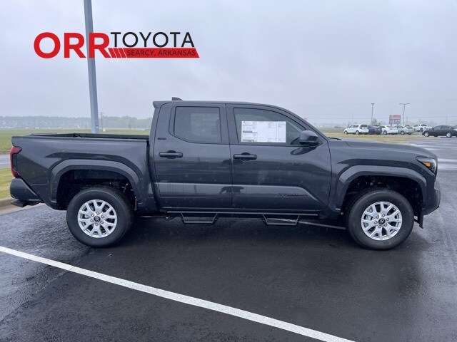 Underground 2025 Toyota Tacoma SR5 RWD 8-Speed Automatic 2.4L 4-Cylinder This Tacoma SR5 is nicely equipped with 3.583 Axle Ratio, 4-Wheel Disc Brakes, 6 Speakers, ABS brakes, Air Conditioning, Alloy wheels, AM/FM radio: SiriusXM, Anti-whiplash front head restraints, Apple CarPlay/Android Auto, Auto High-beam Headlights, Auto-dimming Rear-View mirror, Bed Step (TMS), Brake assist, Bumpers: body-color, Driver door bin, Dual front impact airbags, Dual front side impact airbags, Electronic Stability Control, Emergency communication system: Safety Connect (1-year trial), Exterior Parking Camera Rear, Fabric Seat Trim, Four wheel independent suspension, Front anti-roll bar, Front Bucket Seats, Front Center Armrest, Front fog lights, Front reading lights, Fully automatic headlights, Heated door mirrors, Illuminated entry, Knee airbag, Low tire pressure warning, Occupant sensing airbag, Outside temperature display, Overhead airbag, Overhead console, Panic alarm, Passenger door bin, Power door mirrors, Power steering, Power windows, Predator Step (TMS), Radio: 8" Toyota Audio Multimedia, Rear step bumper, Rear window defroster, Remote keyless entry, Speed control, Speed-sensing steering, Split folding rear seat, Spray-On Bed Liner (TMS), Steering wheel mounted audio controls, Tachometer, Telescoping steering wheel, Tilt steering wheel, Traction control, Trip computer, Variably intermittent wipers, and Wheels: 17" Styled Alloy.