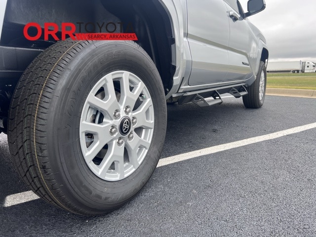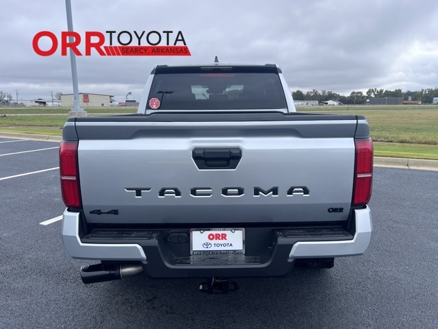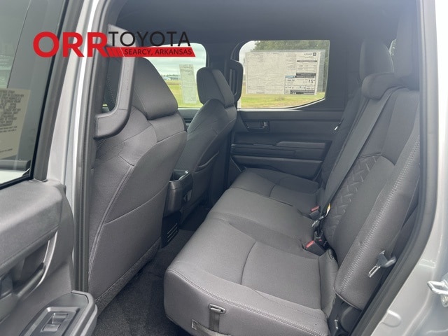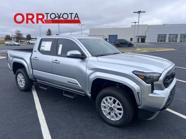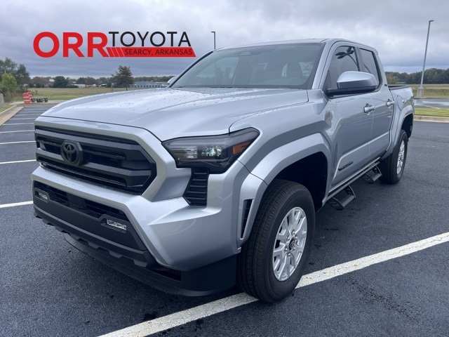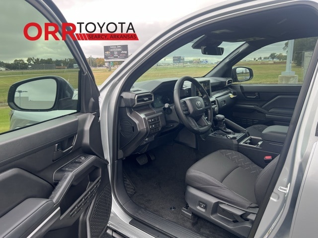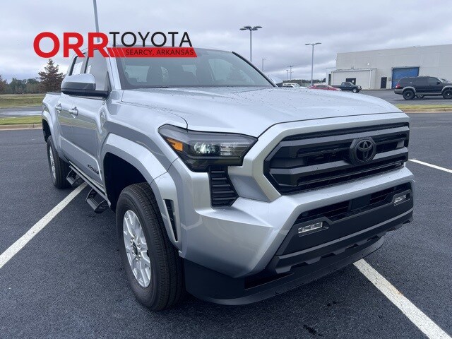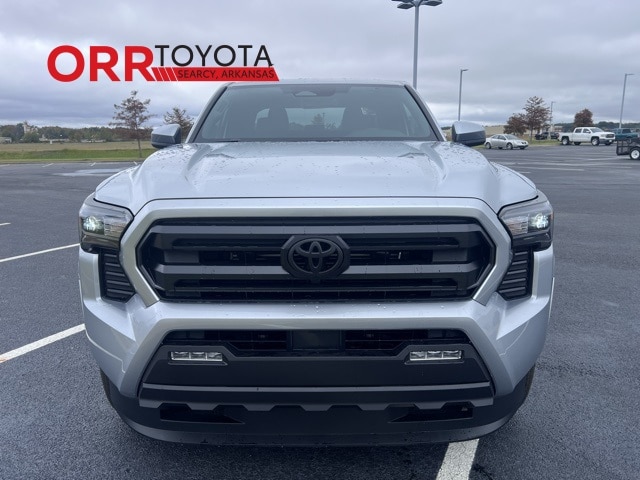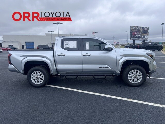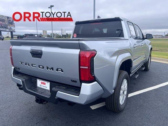 Silver 2025 Toyota Tacoma SR5 4WD 8-Speed Automatic 2.4L 4-Cylinder This Tacoma SR5 is nicely equipped with 4WD, 3.583 Axle Ratio, 4-Wheel Disc Brakes, 6 Speakers, ABS brakes, Air Conditioning, Alloy wheels, AM/FM radio: SiriusXM, Anti-whiplash front head restraints, Apple CarPlay/Android Auto, Auto High-beam Headlights, Auto-dimming Rear-View mirror, Brake assist, Bumpers: body-color, Driver door bin, Dual front impact airbags, Dual front side impact airbags, Electronic Stability Control, Emergency communication system: Safety Connect (1-year trial), Exterior Parking Camera Rear, Fabric Seat Trim, Four wheel independent suspension, Front anti-roll bar, Front Bucket Seats, Front Center Armrest, Front fog lights, Front reading lights, Fully automatic headlights, Heated door mirrors, Illuminated entry, JBL Premium Audio, Knee airbag, Low tire pressure warning, Occupant sensing airbag, Outside temperature display, Overhead airbag, Overhead console, Panic alarm, Passenger door bin, Power door mirrors, Power steering, Power windows, Radio: 8" Toyota Audio Multimedia, Rear step bumper, Rear window defroster, Remote keyless entry, Speed control, Speed-sensing steering, Split folding rear seat, Spray-On Bed Liner (TMS), Steering wheel mounted audio controls, Tachometer, Telescoping steering wheel, Tilt steering wheel, Traction control, Trip computer, Variably intermittent wipers, and Wheels: 17" Styled Alloy. 4WD.