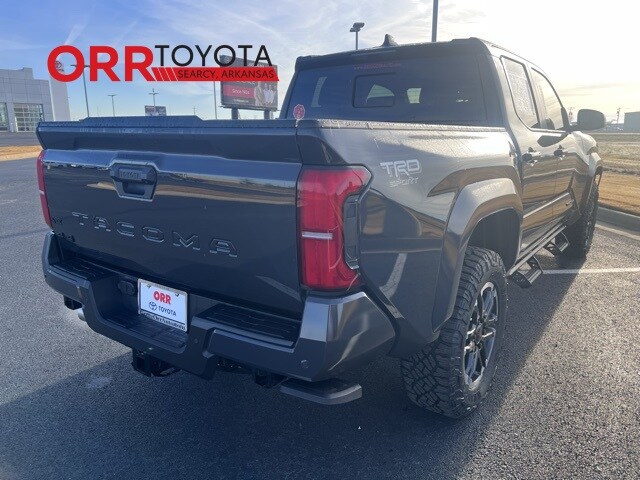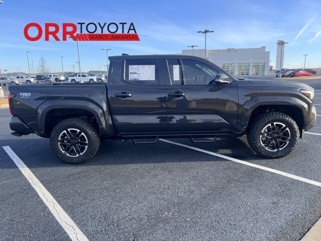 Underground 2025 Toyota Tacoma TRD Sport 4WD 8-Speed Automatic 2.4L 4-Cylinder This Tacoma TRD Sport is nicely equipped with TRD Sport Upgrade Package (JBL Premium Audio), 4WD, 3.583 Axle Ratio, 4-Wheel Disc Brakes, 6 Speakers, ABS brakes, Air Conditioning, Alloy wheels, AM/FM radio: SiriusXM, Anti-whiplash front head restraints, Apple CarPlay/Android Auto, Auto High-beam Headlights, Auto-dimming Rear-View mirror, Automatic temperature control, Bed Step (TMS), Brake assist, Bumpers: body-color, Driver door bin, Driver vanity mirror, Dual front impact airbags, Dual front side impact airbags, Electronic Stability Control, Emergency communication system: Safety Connect (1-year trial), Exterior Parking Camera Rear, Fabric Seat Trim, Four wheel independent suspension, Front anti-roll bar, Front Bucket Seats, Front Center Armrest, Front fog lights, Front reading lights, Fully automatic headlights, Heated door mirrors, Illuminated entry, Knee airbag, Leather Shift Knob, Leather steering wheel, Low tire pressure warning, Occupant sensing airbag, Outside temperature display, Overhead airbag, Overhead console, Panic alarm, Passenger door bin, Passenger vanity mirror, Power door mirrors, Power steering, Power windows, Predator Step (TMS), Radio: 8" Toyota Audio Multimedia, Radio: Premium Audio w/14" Display (EF), Rear step bumper, Rear window defroster, Remote keyless entry, Security system, SofTex Seat Trim, Speed control, Speed-sensing steering, Split folding rear seat, Spray-On Bed Liner (TMS), Steering wheel mounted audio controls, Tachometer, Telescoping steering wheel, Tilt steering wheel, Traction control, Trip computer, Turn signal indicator mirrors, Variably intermittent wipers, and Wheels: 18" TRD Sport Alloy. 4WD.