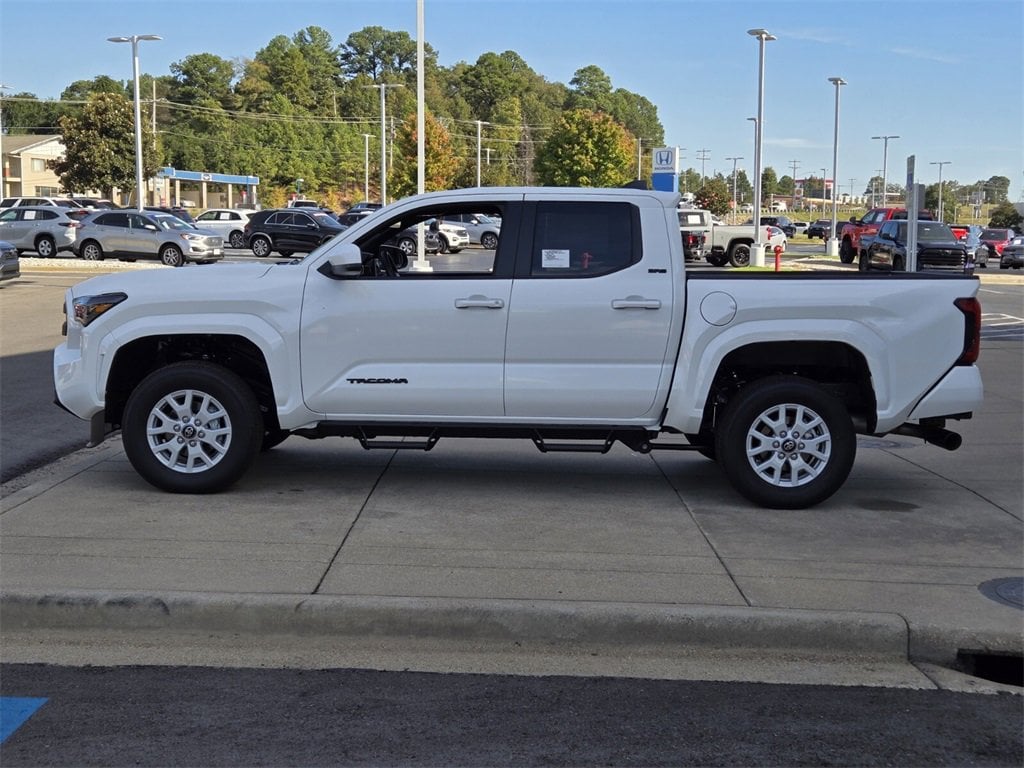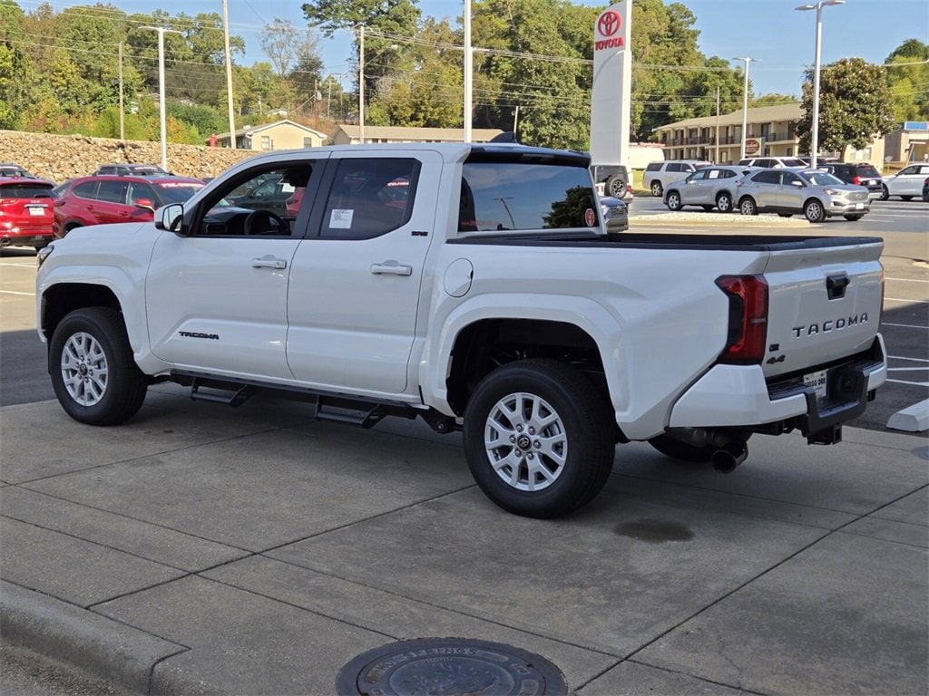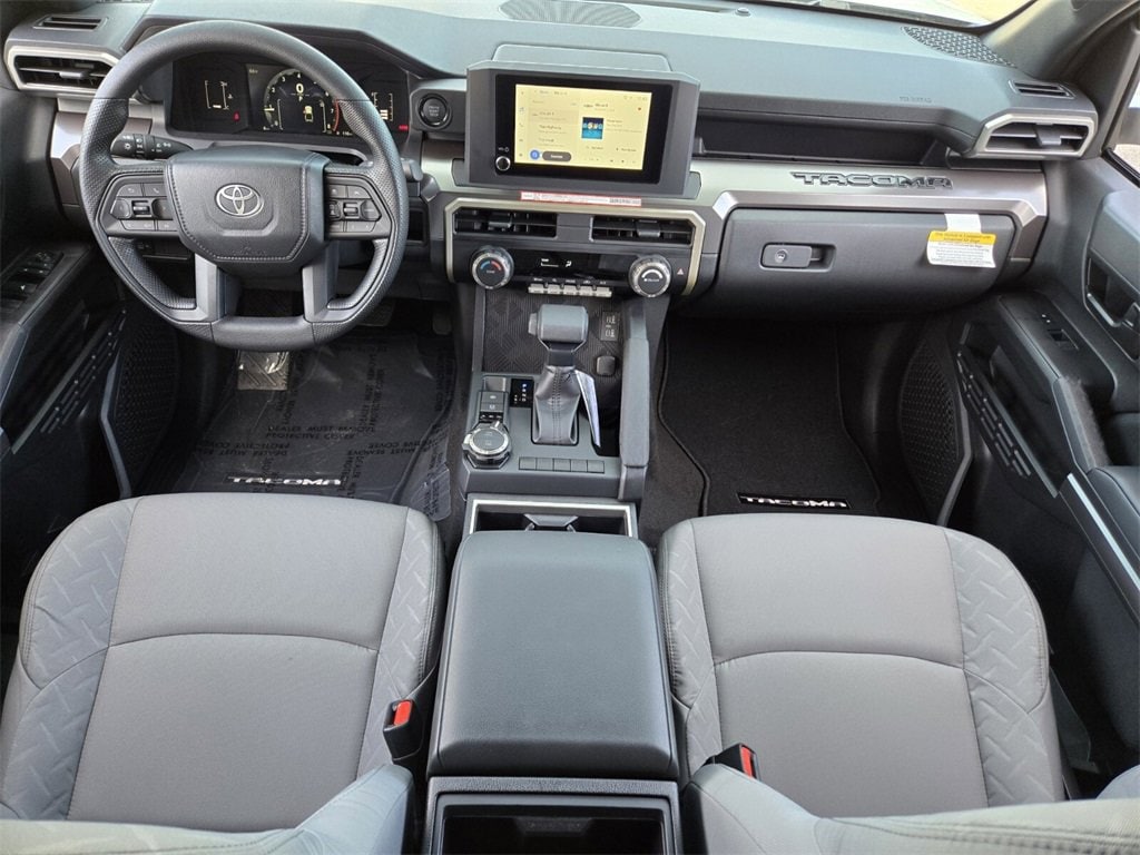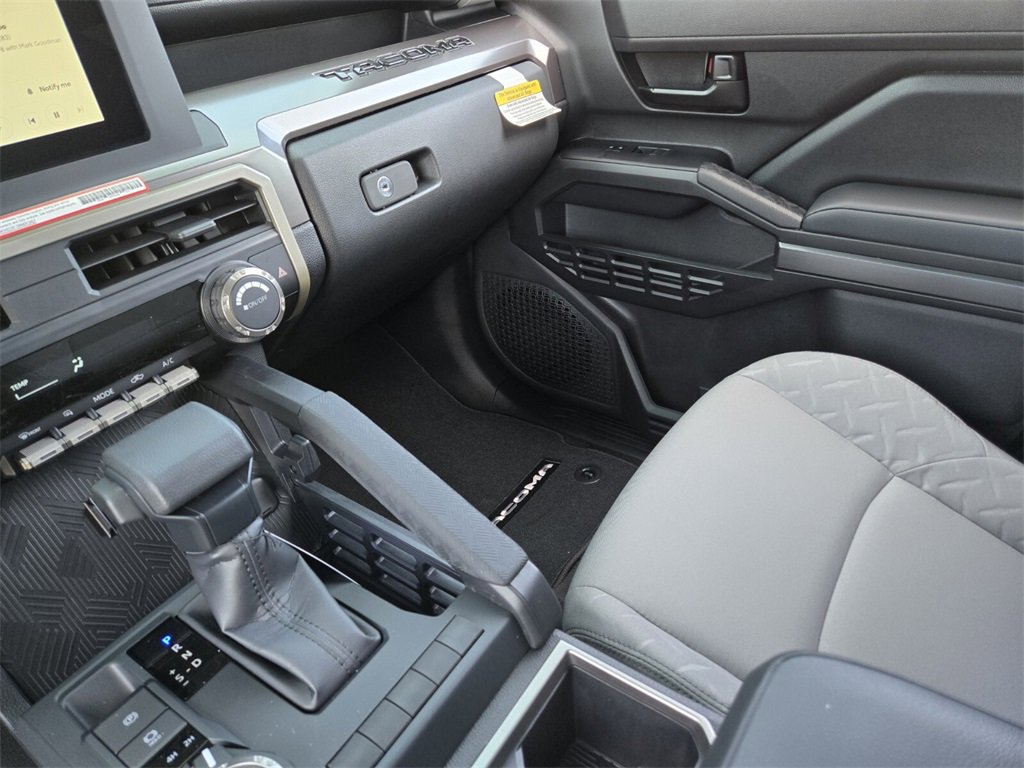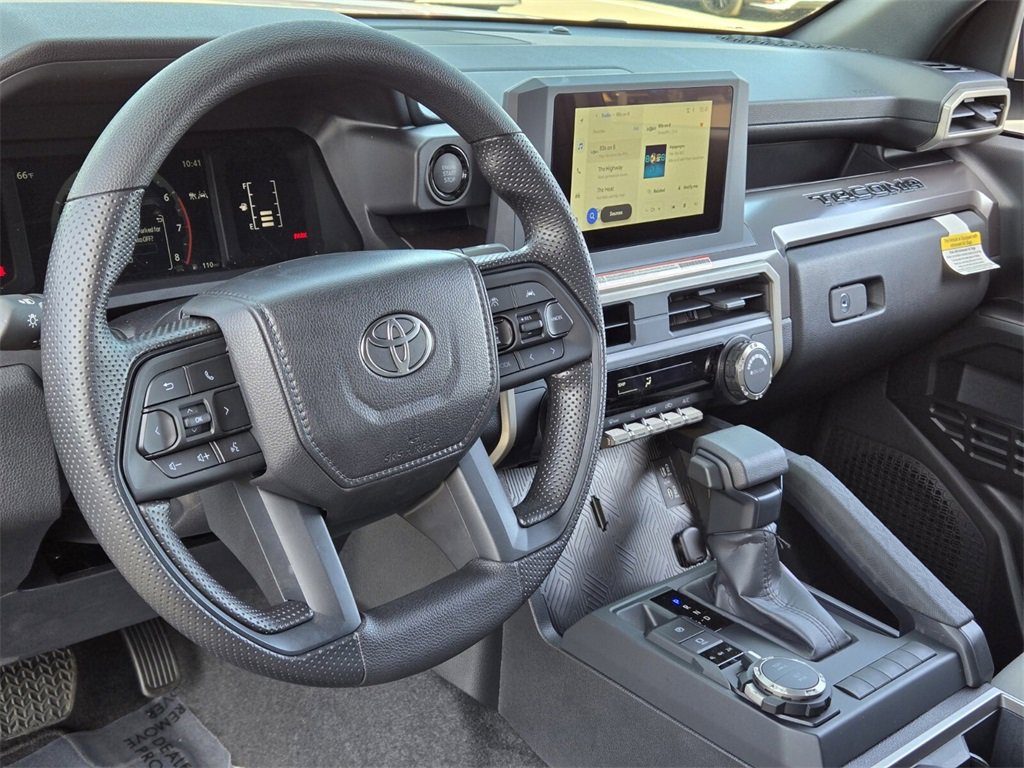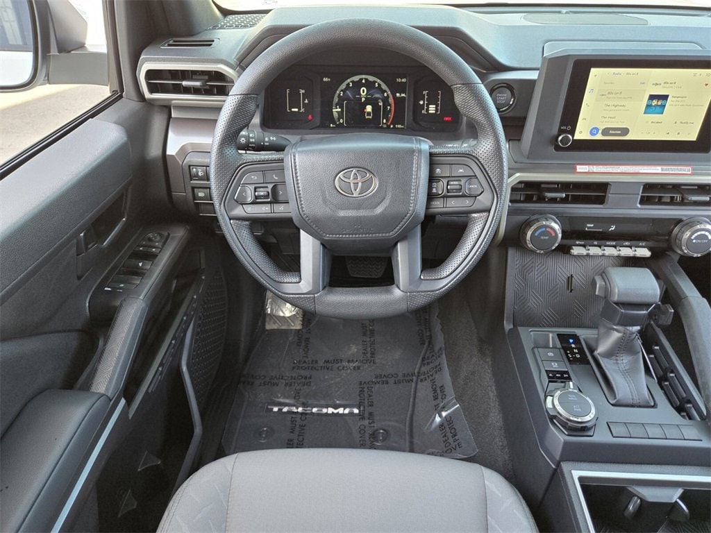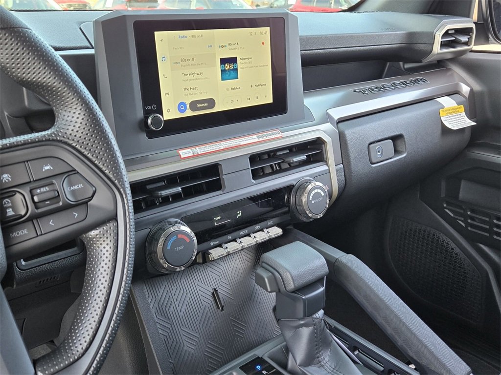 Ice This 2025 Toyota Tacoma comes equipped with, 4WD, 3.583 Axle Ratio, 4-Wheel Disc Brakes, 6 Speakers, ABS brakes, Air Conditioning, Alloy wheels, AM/FM radio: SiriusXM, Anti-whiplash front head restraints, Apple CarPlay/Android Auto, Auto High-beam Headlights, Auto-dimming Rear-View mirror, Brake assist, Bumpers: body-color, Driver door bin, Dual front impact airbags, Dual front side impact airbags, Electronic Stability Control, Emergency communication system: Safety Connect (1-year trial), Exterior Parking Camera Rear, Fabric Seat Trim, Four wheel independent suspension, Front anti-roll bar, Front Bucket Seats, Front Center Armrest, Front fog lights, Front reading lights, Fully automatic headlights, Heated door mirrors, Illuminated entry, JBL Premium Audio, Knee airbag, Low tire pressure warning, Occupant sensing airbag, Outside temperature display, Overhead airbag, Overhead console, Panic alarm, Passenger door bin, Power door mirrors, Power steering, Power windows, Radio: 8" Toyota Audio Multimedia, Rear step bumper, Rear window defroster, Remote keyless entry, Speed control, Speed-sensing steering, Split folding rear seat, Spray-On Bed Liner (TMS), Steering wheel mounted audio controls, Tachometer, Telescoping steering wheel, Tilt steering wheel, Traction control, Trip computer, Variably intermittent wipers, Wheels: 17" Styled Alloy, 4WD.