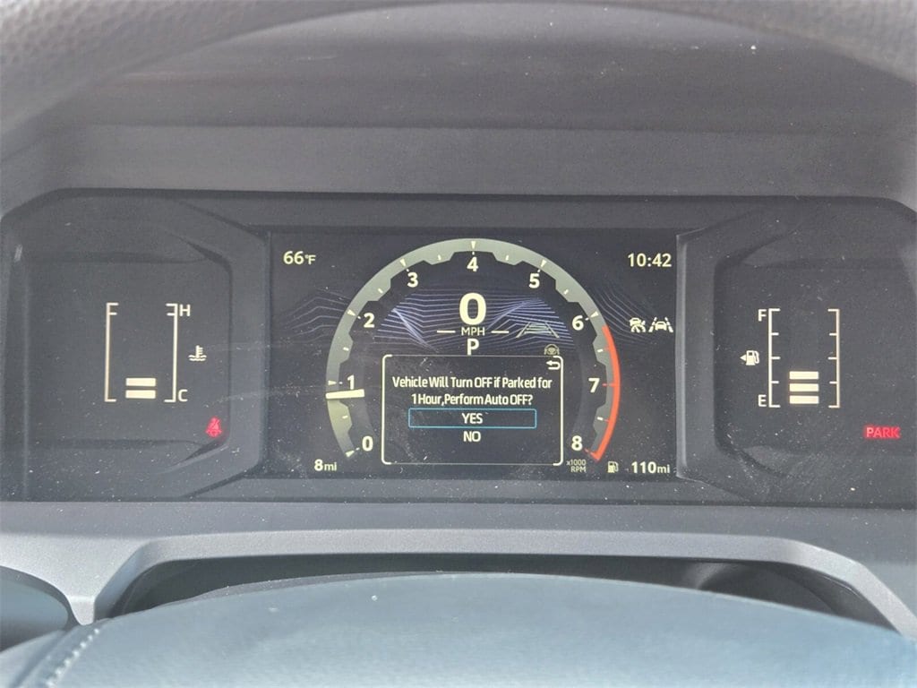 Included Features: 4WD, 3.583 Axle Ratio, 4-Wheel Disc Brakes, 6 Speakers, ABS brakes, Air Conditioning, Alloy wheels, AM/FM radio: SiriusXM, Anti-whiplash front head restraints, Apple CarPlay/Android Auto, Auto High-beam Headlights, Auto-dimming Rear-View mirror, Brake assist, Bumpers: body-color, Driver door bin, Dual front impact airbags, Dual front side impact airbags, Electronic Stability Control, Emergency communication system: Safety Connect (1-year trial), Exterior Parking Camera Rear, Fabric Seat Trim, Four wheel independent suspension, Front anti-roll bar, Front Bucket Seats, Front Center Armrest, Front fog lights, Front reading lights, Fully automatic headlights, Heated door mirrors, Illuminated entry, JBL Premium Audio, Knee airbag, Low tire pressure warning, Occupant sensing airbag, Outside temperature display, Overhead airbag, Overhead console, Panic alarm, Passenger door bin, Power door mirrors, Power steering, Power windows, Radio: 8" Toyota Audio Multimedia, Rear step bumper, Rear window defroster, Remote keyless entry, Speed control, Speed-sensing steering, Split folding rear seat, Spray-On Bed Liner (TMS), Steering wheel mounted audio controls, Tachometer, Telescoping steering wheel, Tilt steering wheel, Traction control, Trip computer, Variably intermittent wipers, and Wheels: 17" Styled Alloy.