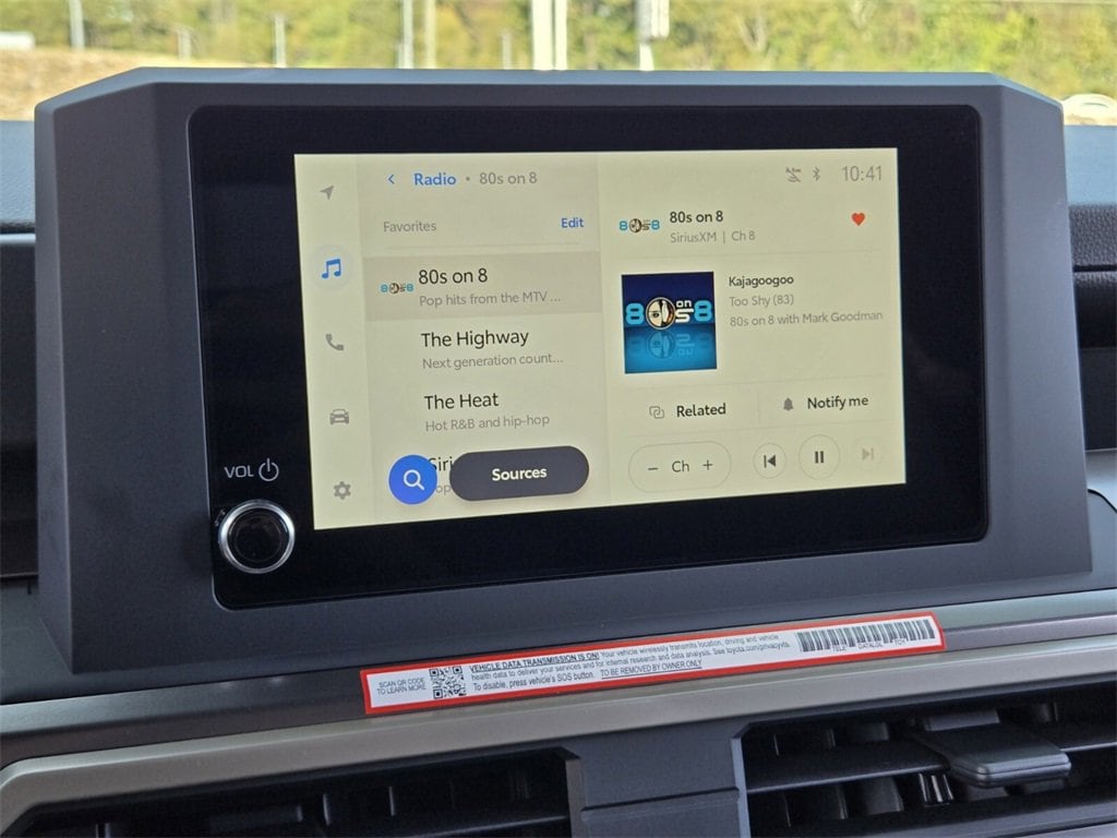 - 8-in. Toyota Audio Multimedia display with 6-speaker audio system, wireless Apple CarPlay(R) Android Auto compatibility, SiriusXM(R) 3-month trial. See toyota.com/connected-services for details.