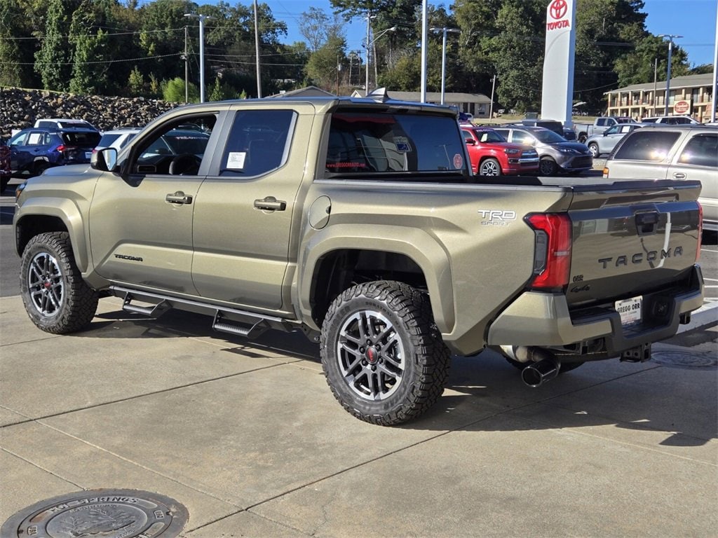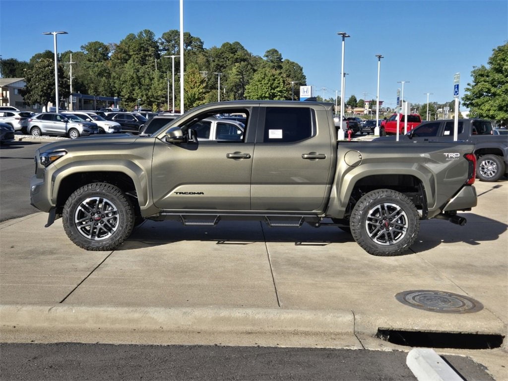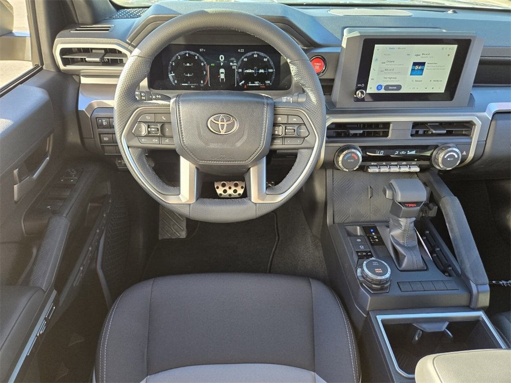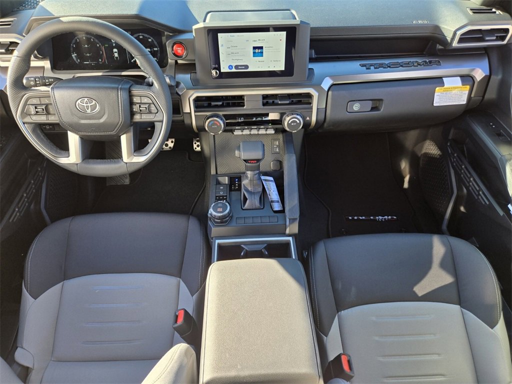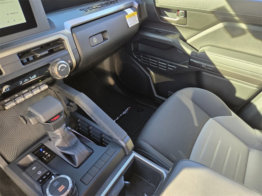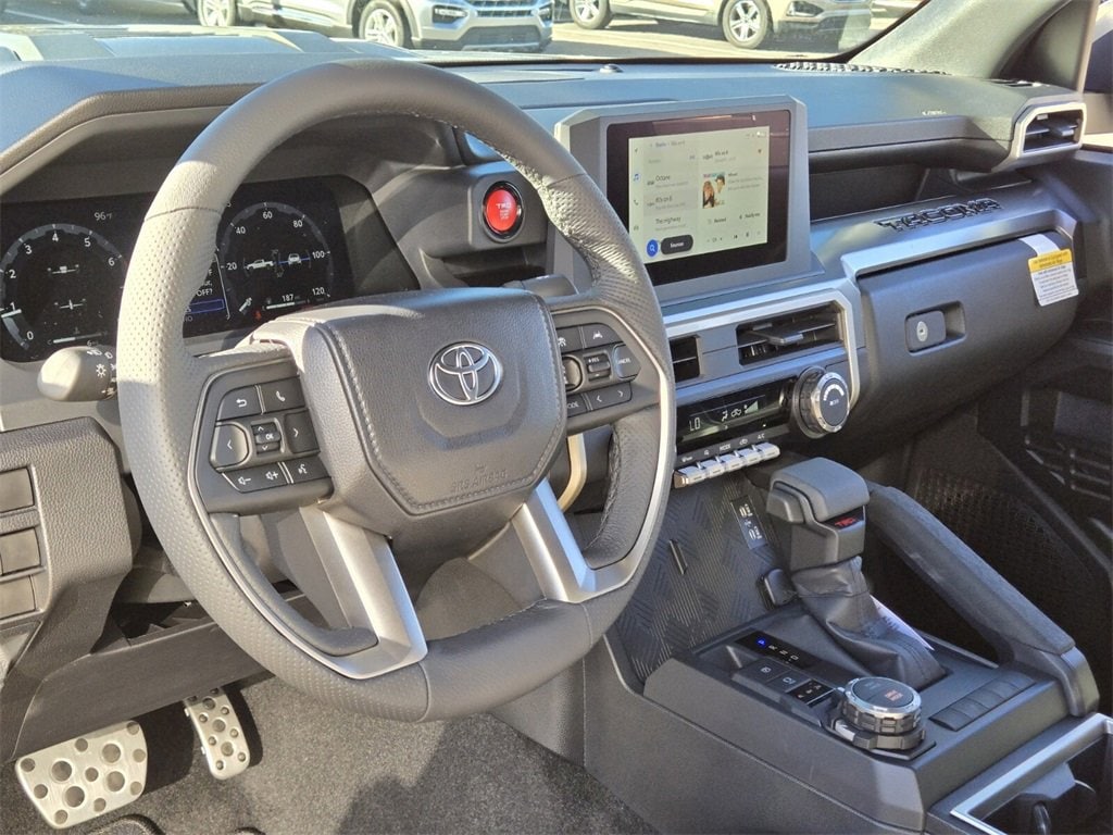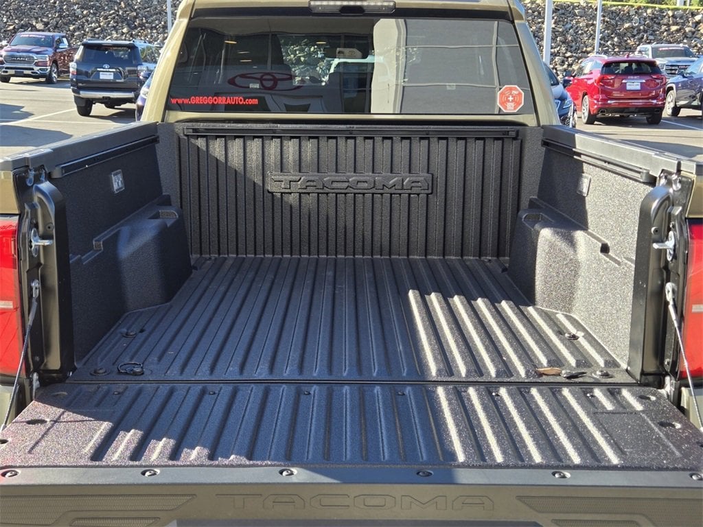 Bronze This 2025 Toyota Tacoma comes equipped with, 4WD, 3.583 Axle Ratio, 4-Wheel Disc Brakes, 6 Speakers, ABS brakes, Air Conditioning, Alloy wheels, AM/FM radio: SiriusXM, Anti-whiplash front head restraints, Apple CarPlay/Android Auto, Auto High-beam Headlights, Auto-dimming Rear-View mirror, Automatic temperature control, Brake assist, Bumpers: body-color, Driver door bin, Driver vanity mirror, Dual front impact airbags, Dual front side impact airbags, Electronic Stability Control, Emergency communication system: Safety Connect (1-year trial), Exterior Parking Camera Rear, Fabric Seat Trim, Four wheel independent suspension, Front anti-roll bar, Front Bucket Seats, Front Center Armrest, Front fog lights, Front reading lights, Fully automatic headlights, Heated door mirrors, Illuminated entry, JBL Premium Audio, Knee airbag, Leather Shift Knob, Leather steering wheel, Low tire pressure warning, Occupant sensing airbag, Outside temperature display, Overhead airbag, Overhead console, Panic alarm, Passenger door bin, Passenger vanity mirror, Power door mirrors, Power steering, Power windows, Predator Step (TMS), Radio: 8" Toyota Audio Multimedia, Rear step bumper, Rear window defroster, Remote keyless entry, Security system, SofTex Seat Trim, Speed control, Speed-sensing steering, Split folding rear seat, Spray-On Bed Liner (TMS), Steering wheel mounted audio controls, Tachometer, Telescoping steering wheel, Tilt steering wheel, Traction control, Trip computer, Turn signal indicator mirrors, Variably intermittent wipers, Wheels: 18" TRD Sport Alloy, 4WD.