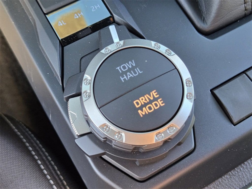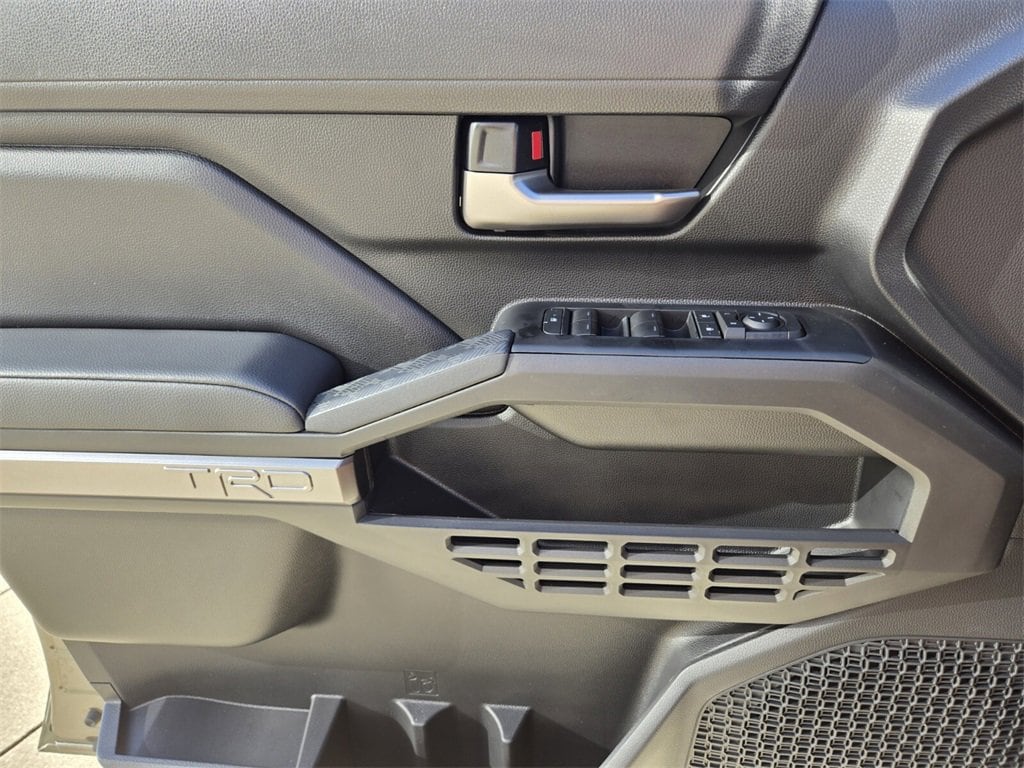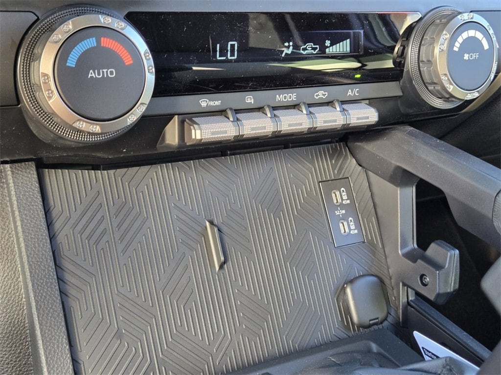 Included Features: 4WD, 3.583 Axle Ratio, 4-Wheel Disc Brakes, 6 Speakers, ABS brakes, Air Conditioning, Alloy wheels, AM/FM radio: SiriusXM, Anti-whiplash front head restraints, Apple CarPlay/Android Auto, Auto High-beam Headlights, Auto-dimming Rear-View mirror, Automatic temperature control, Brake assist, Bumpers: body-color, Driver door bin, Driver vanity mirror, Dual front impact airbags, Dual front side impact airbags, Electronic Stability Control, Emergency communication system: Safety Connect (1-year trial), Exterior Parking Camera Rear, Fabric Seat Trim, Four wheel independent suspension, Front anti-roll bar, Front Bucket Seats, Front Center Armrest, Front fog lights, Front reading lights, Fully automatic headlights, Heated door mirrors, Illuminated entry, JBL Premium Audio, Knee airbag, Leather Shift Knob, Leather steering wheel, Low tire pressure warning, Occupant sensing airbag, Outside temperature display, Overhead airbag, Overhead console, Panic alarm, Passenger door bin, Passenger vanity mirror, Power door mirrors, Power steering, Power windows, Predator Step (TMS), Radio: 8" Toyota Audio Multimedia, Rear step bumper, Rear window defroster, Remote keyless entry, Security system, SofTex Seat Trim, Speed control, Speed-sensing steering, Split folding rear seat, Spray-On Bed Liner (TMS), Steering wheel mounted audio controls, Tachometer, Telescoping steering wheel, Tilt steering wheel, Traction control, Trip computer, Turn signal indicator mirrors, Variably intermittent wipers, and Wheels: 18" TRD Sport Alloy.