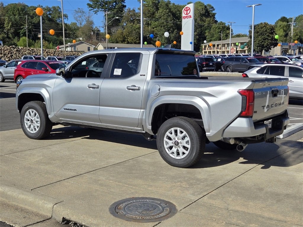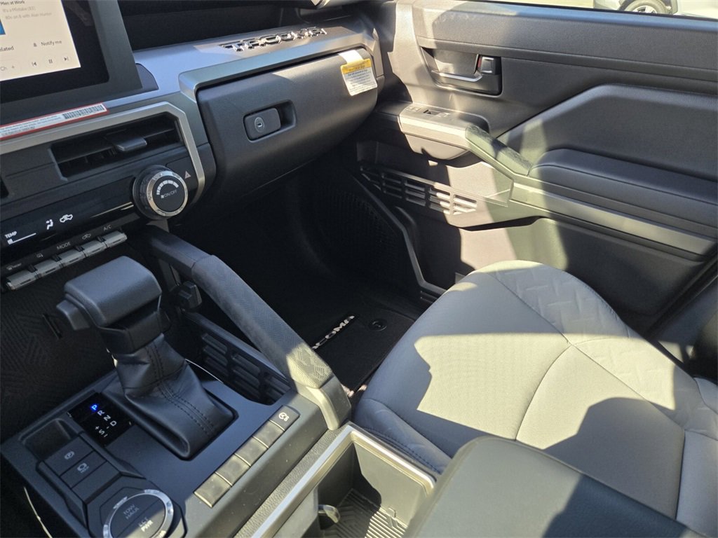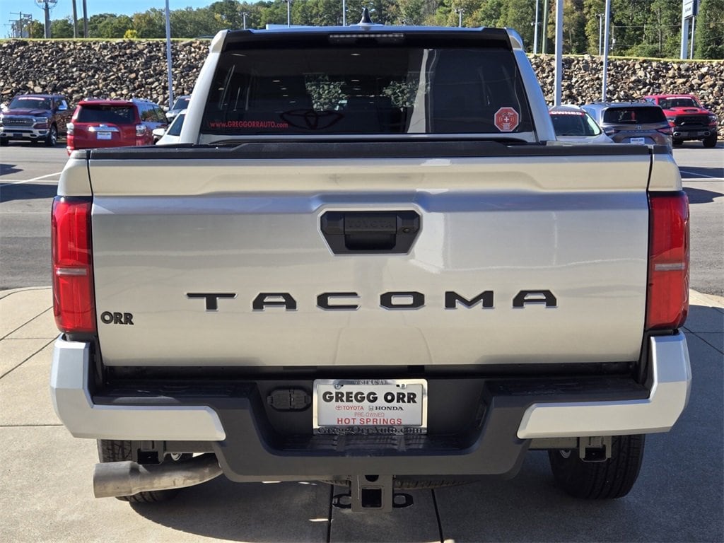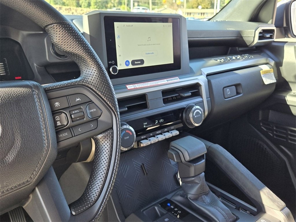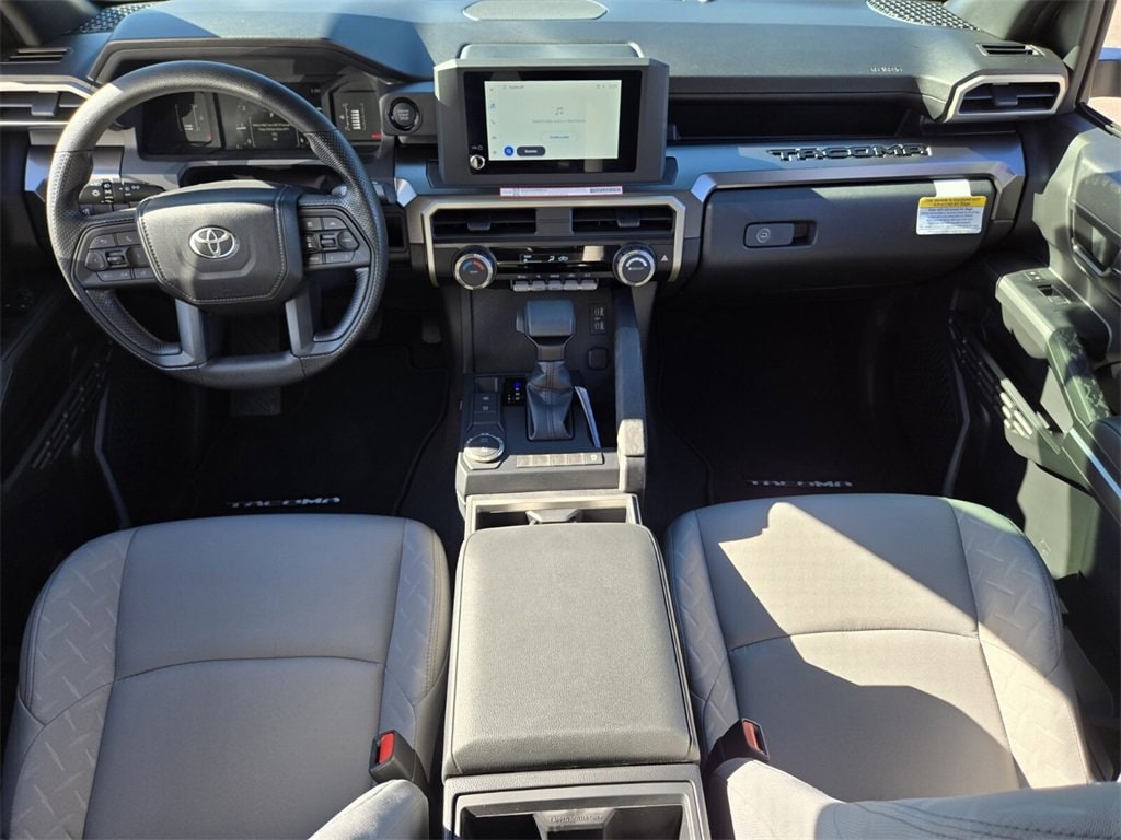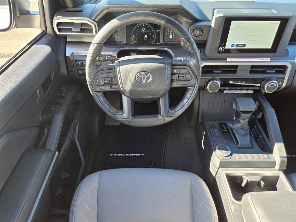 Silver This 2025 Toyota Tacoma comes equipped with, 3.583 Axle Ratio, 4-Wheel Disc Brakes, 6 Speakers, ABS brakes, Air Conditioning, Alloy wheels, AM/FM radio: SiriusXM, Anti-whiplash front head restraints, Apple CarPlay/Android Auto, Auto High-beam Headlights, Auto-dimming Rear-View mirror, Brake assist, Bumpers: body-color, Driver door bin, Dual front impact airbags, Dual front side impact airbags, Electronic Stability Control, Emergency communication system: Safety Connect (1-year trial), Exterior Parking Camera Rear, Fabric Seat Trim, Four wheel independent suspension, Front anti-roll bar, Front Bucket Seats, Front Center Armrest, Front fog lights, Front reading lights, Fully automatic headlights, Heated door mirrors, Illuminated entry, Knee airbag, Low tire pressure warning, Occupant sensing airbag, Outside temperature display, Overhead airbag, Overhead console, Panic alarm, Passenger door bin, Power door mirrors, Power steering, Power windows, Radio: 8" Toyota Audio Multimedia, Rear step bumper, Rear window defroster, Remote keyless entry, Speed control, Speed-sensing steering, Split folding rear seat, Spray-On Bed Liner (TMS), Steering wheel mounted audio controls, Tachometer, Telescoping steering wheel, Tilt steering wheel, Traction control, Trip computer, Variably intermittent wipers, Wheels: 17" Styled Alloy. 21/26 City/Highway MPG