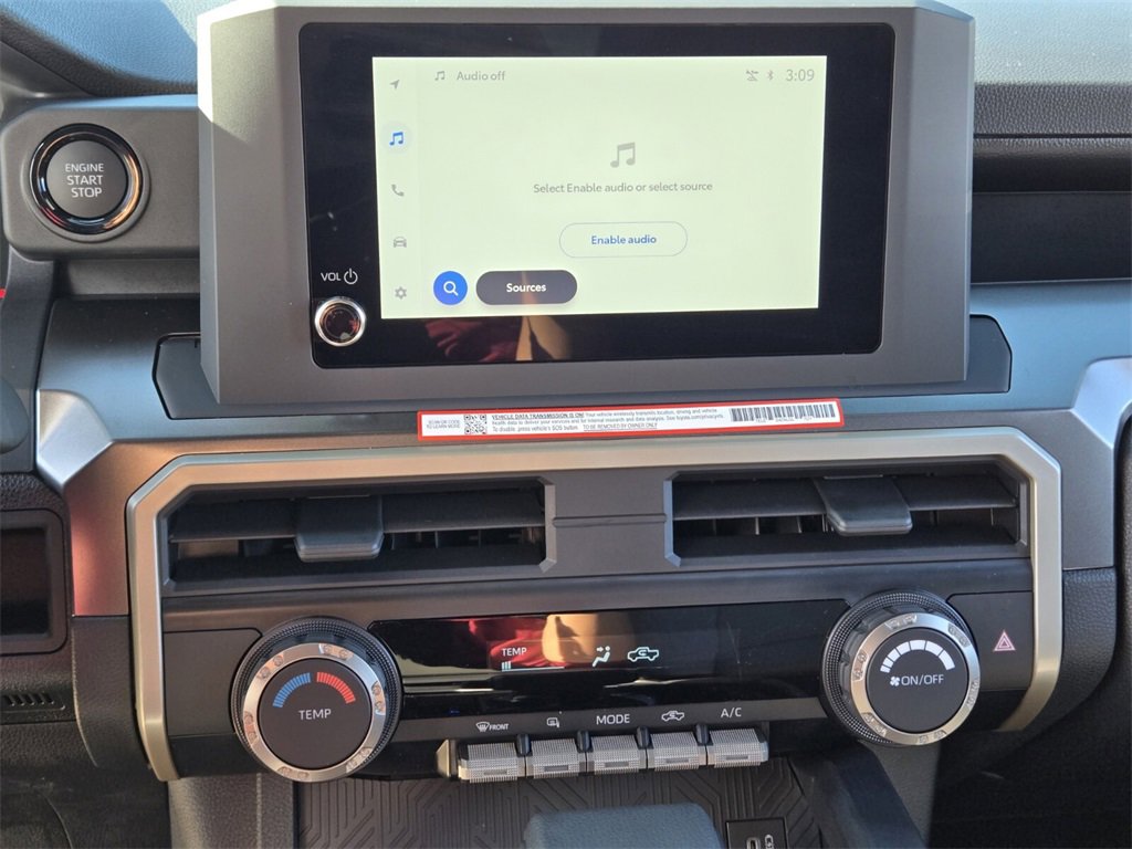 Included Features: 3.583 Axle Ratio, 4-Wheel Disc Brakes, 6 Speakers, ABS brakes, Air Conditioning, Alloy wheels, AM/FM radio: SiriusXM, Anti-whiplash front head restraints, Apple CarPlay/Android Auto, Auto High-beam Headlights, Auto-dimming Rear-View mirror, Brake assist, Bumpers: body-color, Driver door bin, Dual front impact airbags, Dual front side impact airbags, Electronic Stability Control, Emergency communication system: Safety Connect (1-year trial), Exterior Parking Camera Rear, Fabric Seat Trim, Four wheel independent suspension, Front anti-roll bar, Front Bucket Seats, Front Center Armrest, Front fog lights, Front reading lights, Fully automatic headlights, Heated door mirrors, Illuminated entry, Knee airbag, Low tire pressure warning, Occupant sensing airbag, Outside temperature display, Overhead airbag, Overhead console, Panic alarm, Passenger door bin, Power door mirrors, Power steering, Power windows, Radio: 8" Toyota Audio Multimedia, Rear step bumper, Rear window defroster, Remote keyless entry, Speed control, Speed-sensing steering, Split folding rear seat, Spray-On Bed Liner (TMS), Steering wheel mounted audio controls, Tachometer, Telescoping steering wheel, Tilt steering wheel, Traction control, Trip computer, Variably intermittent wipers, and Wheels: 17" Styled Alloy.