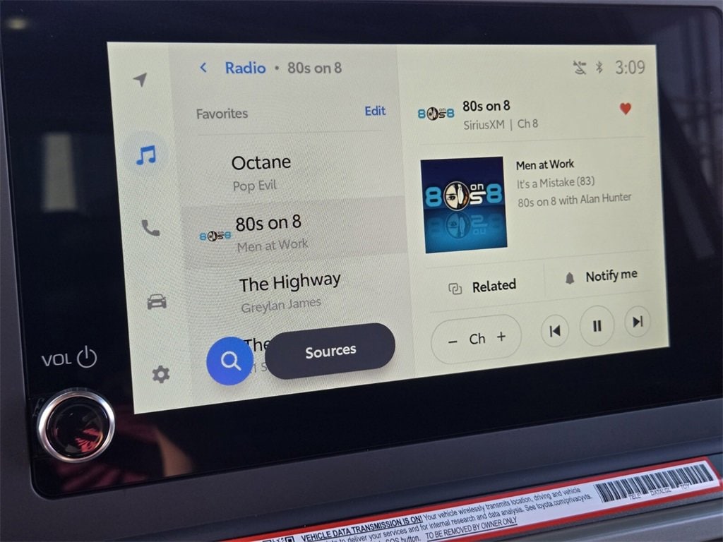 - 8-in. Toyota Audio Multimedia display with 6-speaker audio system, wireless Apple CarPlay(R) Android Auto compatibility, SiriusXM(R) 3-month trial. See toyota.com/connected-services for details.