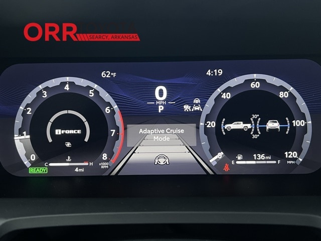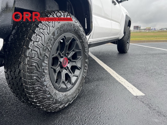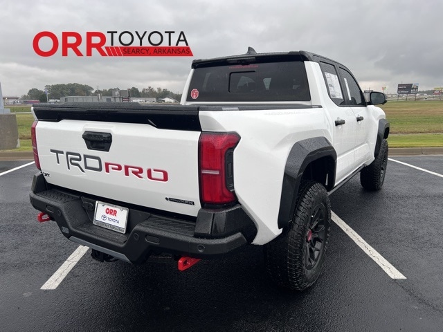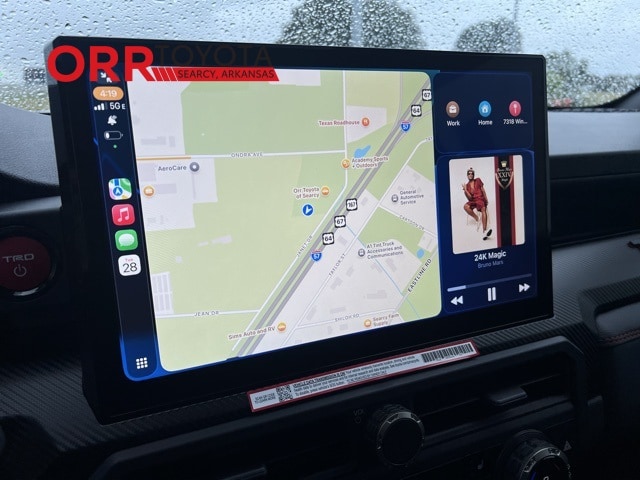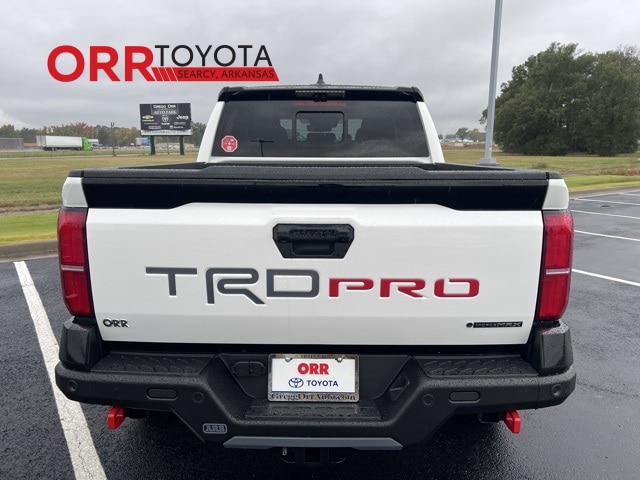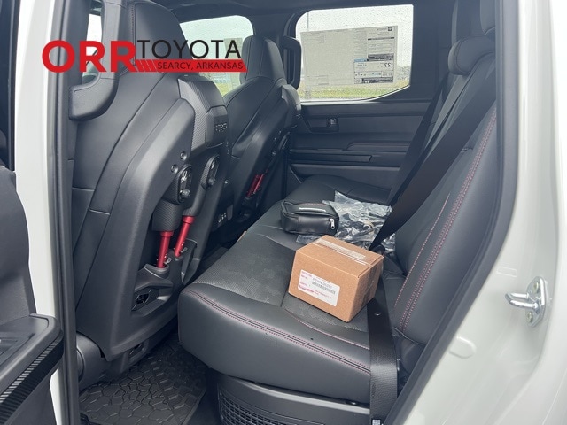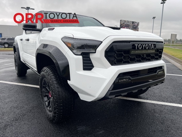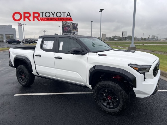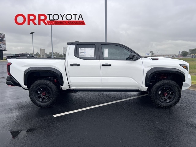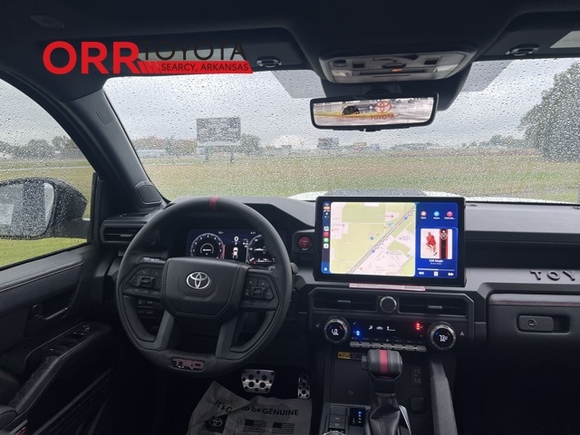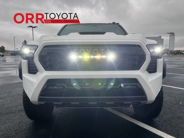 Ice 2025 Toyota Tacoma Hybrid TRD Pro 4WD 8-Speed Automatic 2.4L I4 PDI Hybrid Turbocharged DOHC 16V This Tacoma Hybrid TRD Pro is nicely equipped with TRD Pro Package, 2.4L I4 PDI Hybrid Turbocharged DOHC 16V, 3.583 Axle Ratio, 4-Wheel Disc Brakes, 9 Speakers, ABS brakes, Air Conditioning, Alloy wheels, AM/FM radio: SiriusXM, Anti-whiplash front head restraints, Apple CarPlay/Android Auto, Auto High-beam Headlights, Auto-dimming Rear-View mirror, Automatic temperature control, Bed Scene Lighting (TMS), Brake assist, Bumpers: body-color, Driver door bin, Driver vanity mirror, Dual front impact airbags, Dual front side impact airbags, Electronic Stability Control, Emergency communication system: Safety Connect (1-year trial), Exterior Parking Camera Rear, Four wheel independent suspension, Front anti-roll bar, Front Bucket Seats, Front Center Armrest, Front dual zone A/C, Front fog lights, Front reading lights, Fully automatic headlights, Garage door transmitter: HomeLink, Heads-Up Display, Heated door mirrors, Heated front seats, Heated steering wheel, Htd & Vent TRD Pro IsoDynamic Performance Seats, Illuminated entry, JBL Premium Audio, Knee airbag, Leather Shift Knob, Leather steering wheel, Low tire pressure warning, Navigation system: Drive Connect (1 year trial) includes Cloud Navigation with real time traffic and Google POI, Occupant sensing airbag, Outside temperature display, Overhead airbag, Overhead console, Panic alarm, Passenger door bin, Passenger vanity mirror, Power door mirrors, Power driver seat, Power moonroof, Power passenger seat, Power steering, Power windows, Radio: 14" Toyota Audio Multimedia, Rear anti-roll bar, Rear step bumper, Rear window defroster, Remote keyless entry, Security system, SofTex Seat Trim, Speed control, Speed-sensing steering, Split folding rear seat, Spray-On Bed Liner (TMS), Steering wheel mounted audio controls, Tachometer, Telescoping steering wheel, Tilt steering wheel, Traction control, Trip computer, Turn signal indicator mirrors, Variably intermittent wipers, Ventilated front seats, and Wheels: 18" Black TRD Pro Alloy. 2.4L I4 PDI Hybrid Turbocharged DOHC 16V.