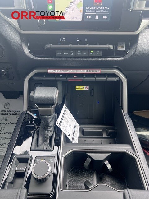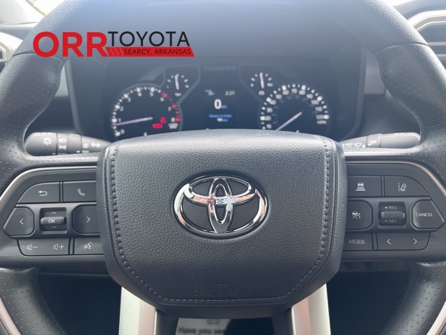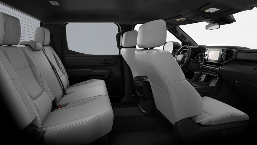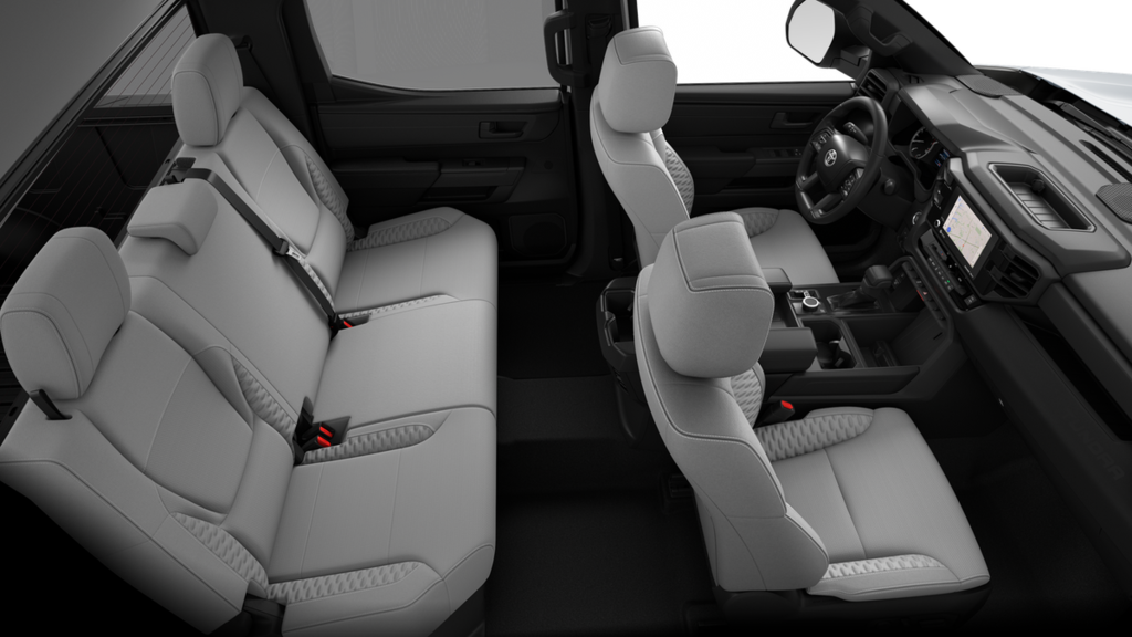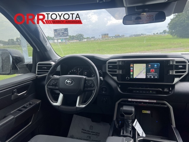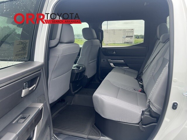 Ice 2025 Toyota Tundra SR5 4WD 10-Speed Automatic 3.4L V6 This Tundra SR5 is nicely equipped with SR5 Convenience Package (122L Fuel Tank, Blind Spot Monitor w/Lane Change Assist, and Parking Support Alert/Brake), 4WD, 13 Cloth, 18" Alloy Wheels, 3.31 Axle Ratio, 4-Wheel Disc Brakes, 9 Speakers, ABS brakes, Air Conditioning, Alloy wheels, AM/FM radio: SiriusXM, Apple CarPlay/Android Auto, Auto High-beam Headlights, Automatic temperature control, Bed Step (TMS), Blind Spot Monitor, Brake assist, Bumpers: body-color, Delay-off headlights, Driver door bin, Driver vanity mirror, Dual front impact airbags, Dual front side impact airbags, Electronic Stability Control, Emergency communication system: Safety Connect (10-year trial), Exterior Parking Camera Rear, Fabric Seat Trim (FB), Front anti-roll bar, Front Bucket Seats, Front Center Armrest, Front fog lights, Front reading lights, Front wheel independent suspension, Fully automatic headlights, Heated door mirrors, Heated Power Black Outside Mirrors, Illuminated entry, Knee airbag, Low tire pressure warning, Occupant sensing airbag, Outside temperature display, Overhead airbag, Overhead console, Panic alarm, Passenger door bin, Passenger vanity mirror, Power door mirrors, Power driver seat, Power steering, Power windows, Radio data system, Radio: Audio Multimedia System, Rear reading lights, Rear step bumper, Rear window defroster, Remote keyless entry, Safety Connect, Security system, Speed control, Speed-sensing steering, Split folding rear seat, Steering wheel mounted audio controls, Tachometer, Telescoping steering wheel, Tilt steering wheel, Traction control, Trip computer, Variably intermittent wipers, and Voltmeter. 4WD, 13 Cloth.