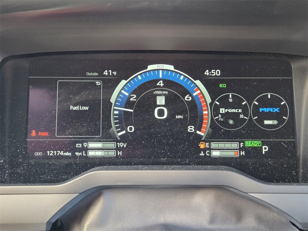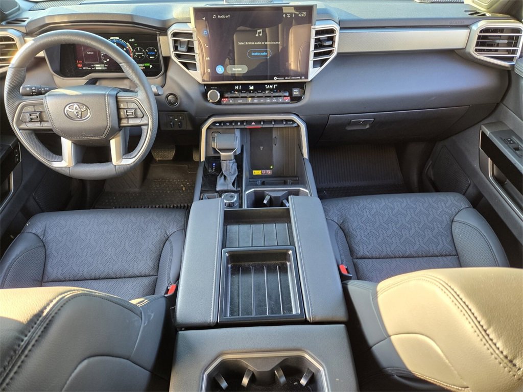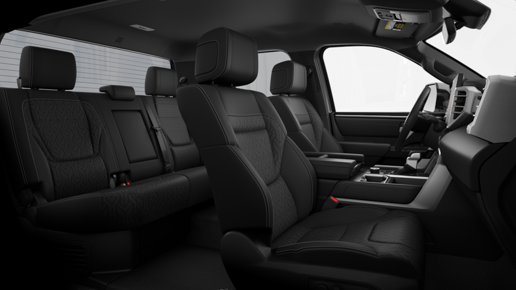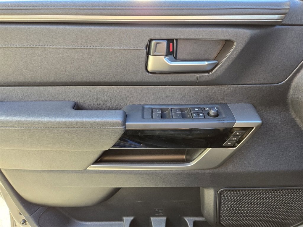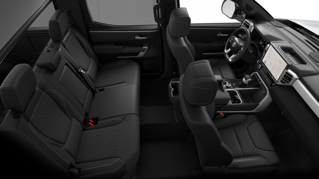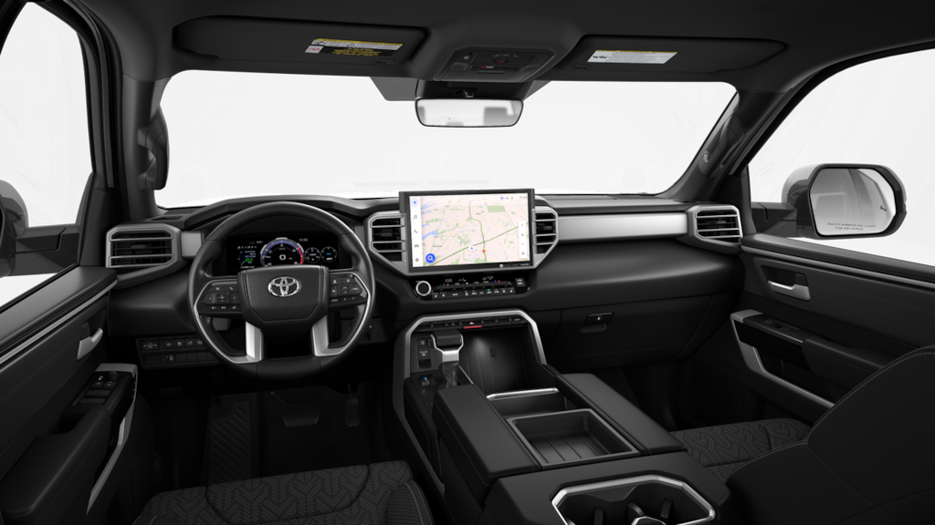Bluprint This 2025 Toyota Tundra Hybrid comes equipped with, 3.4L V6, 20" x 8" Alloy Wheels, 3.31 Axle Ratio, 4-Wheel Disc Brakes, 400W/120V AC Rear Seat & Bed Power Supply, 9 Speakers, ABS brakes, Air Conditioning, Alloy wheels, AM/FM radio: SiriusXM, Apple CarPlay/Android Auto, Auto High-beam Headlights, Auto-dimming door mirrors, Auto-dimming Rear-View mirror, Automatic temperature control, Bed Step (TMS), Black Overfenders & Rear Bumper, Blind Spot Monitor, Brake assist, Bumpers: body-color, Delay-off headlights, Driver door bin, Driver vanity mirror, Dual front impact airbags, Dual front side impact airbags, Dual-Step Running Board - Black (TMS), Electronic Stability Control, Emergency communication system: Safety Connect (10-year trial), Exterior Parking Camera Rear, Front anti-roll bar, Front Bucket Seats, Front Center Armrest, Front dual zone A/C, Front fog lights, Front reading lights, Front wheel independent suspension, Fully automatic headlights, Garage door transmitter: HomeLink, Heated & Ventilated Front Bucket Seats, Heated door mirrors, Heated front seats, Heated Leather Steering Wheel, Heated Power Folding Color-Keyed Outside Mirrors, Heated steering wheel, High Grade Full LED Headlamp, Illuminated entry, Knee airbag, Leather Shift Knob, Leather steering wheel, Limited Premium Package, Low tire pressure warning, Memory seat, Multi-Terrain Back Monitor, Navigation System, Nightshade Package, Occupant sensing airbag, Outside temperature display, Overhead airbag, Overhead console, Panic alarm, Panoramic View Back Monitor, Panoramic View Monitor Package, Passenger door bin, Passenger vanity mirror, Power door mirrors, Power driver seat, Power Package, Power Panoramic Roof, Power passenger seat, Power steering, Power windows, Qi-Compatible Wireless Smartphone Charger, Radio data system, Radio: Audio Plus, Radio: Premium Audio w/JBL, Rear reading lights, Rear seat center armrest, Rear step bumper, Rear window defroster, Remote keyless entry, Security system, SofTex Seat Trim, Speed control, Speed-sensing steering, Split folding rear seat, Steering wheel mounted audio controls, Tachometer, Telescoping steering wheel, Tilt steering wheel, Towing Technology Package, Traction control, Trip computer, Turn signal indicator mirrors, Variably intermittent wipers, Ventilated front seats, Voltmeter, Wheels: 20" x 8J Matte-Black Alloy, 3.4L V6.