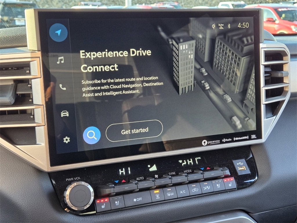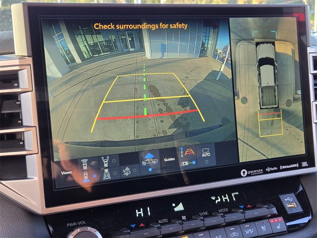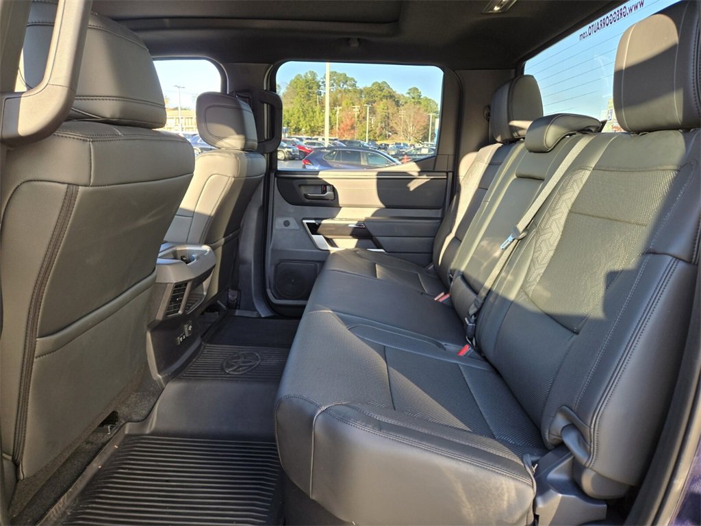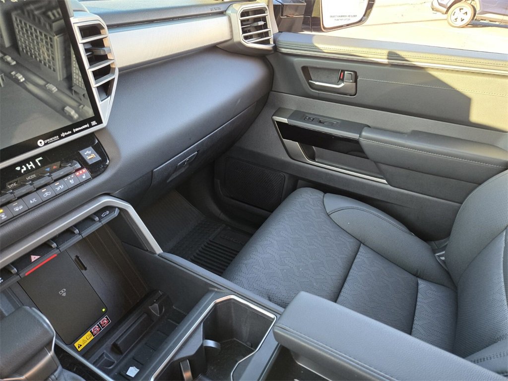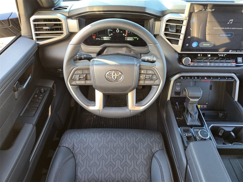 Bluprint This 2025 Toyota Tundra Hybrid comes equipped with, 3.4L V6, 20" x 8" Alloy Wheels, 3.31 Axle Ratio, 4-Wheel Disc Brakes, 400W/120V AC Rear Seat & Bed Power Supply, 9 Speakers, ABS brakes, Air Conditioning, Alloy wheels, AM/FM radio: SiriusXM, Apple CarPlay/Android Auto, Auto High-beam Headlights, Auto-dimming door mirrors, Auto-dimming Rear-View mirror, Automatic temperature control, Bed Step (TMS), Black Overfenders & Rear Bumper, Blind Spot Monitor, Brake assist, Bumpers: body-color, Delay-off headlights, Driver door bin, Driver vanity mirror, Dual front impact airbags, Dual front side impact airbags, Dual-Step Running Board - Black (TMS), Electronic Stability Control, Emergency communication system: Safety Connect (10-year trial), Exterior Parking Camera Rear, Front anti-roll bar, Front Bucket Seats, Front Center Armrest, Front dual zone A/C, Front fog lights, Front reading lights, Front wheel independent suspension, Fully automatic headlights, Garage door transmitter: HomeLink, Heated & Ventilated Front Bucket Seats, Heated door mirrors, Heated front seats, Heated Leather Steering Wheel, Heated Power Folding Color-Keyed Outside Mirrors, Heated steering wheel, High Grade Full LED Headlamp, Illuminated entry, Knee airbag, Leather Shift Knob, Leather steering wheel, Limited Premium Package, Low tire pressure warning, Memory seat, Multi-Terrain Back Monitor, Navigation System, Nightshade Package, Occupant sensing airbag, Outside temperature display, Overhead airbag, Overhead console, Panic alarm, Panoramic View Back Monitor, Panoramic View Monitor Package, Passenger door bin, Passenger vanity mirror, Power door mirrors, Power driver seat, Power Package, Power Panoramic Roof, Power passenger seat, Power steering, Power windows, Qi-Compatible Wireless Smartphone Charger, Radio data system, Radio: Audio Plus, Radio: Premium Audio w/JBL, Rear reading lights, Rear seat center armrest, Rear step bumper, Rear window defroster, Remote keyless entry, Security system, SofTex Seat Trim, Speed control, Speed-sensing steering, Split folding rear seat, Steering wheel mounted audio controls, Tachometer, Telescoping steering wheel, Tilt steering wheel, Towing Technology Package, Traction control, Trip computer, Turn signal indicator mirrors, Variably intermittent wipers, Ventilated front seats, Voltmeter, Wheels: 20" x 8J Matte-Black Alloy, 3.4L V6.